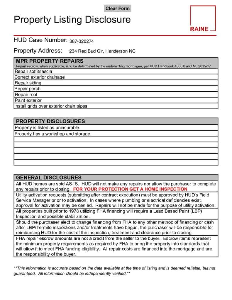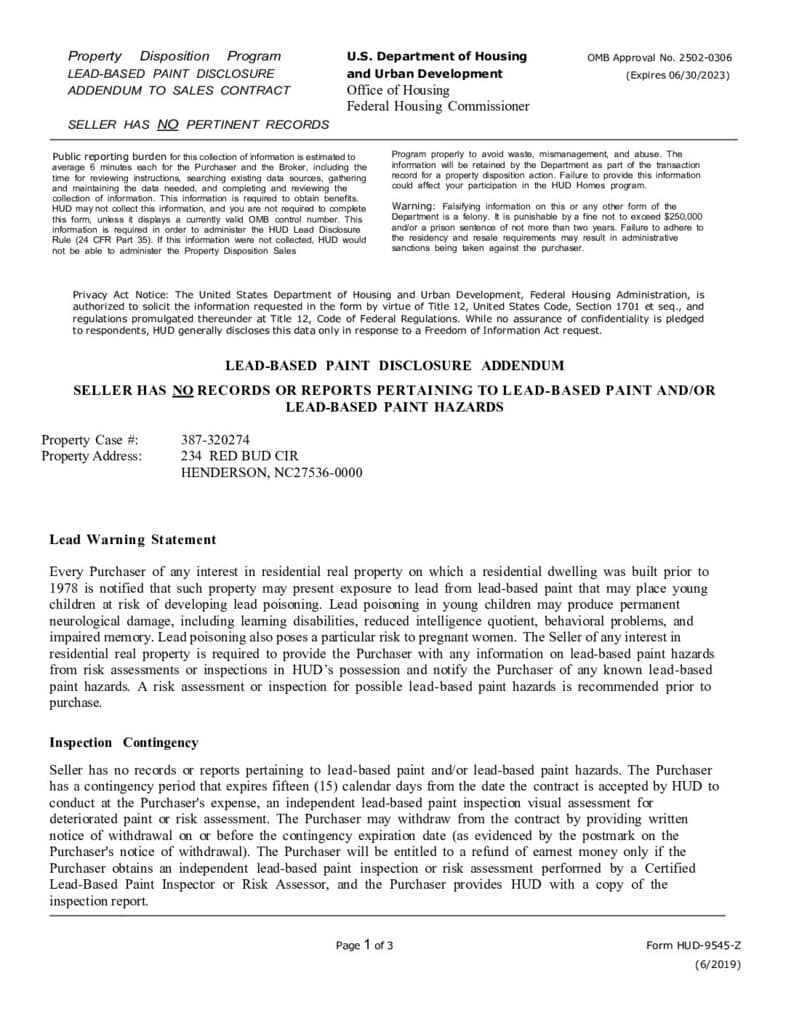 Property owned by US Dept of HUD Case#387-320274. UI Sold “AS-IS”. EHO. Subject to appraisal. Seller makes no representation or warranties as to property condition. Seller may contribute up to 3% for buyer closing costs, upon buyer request.