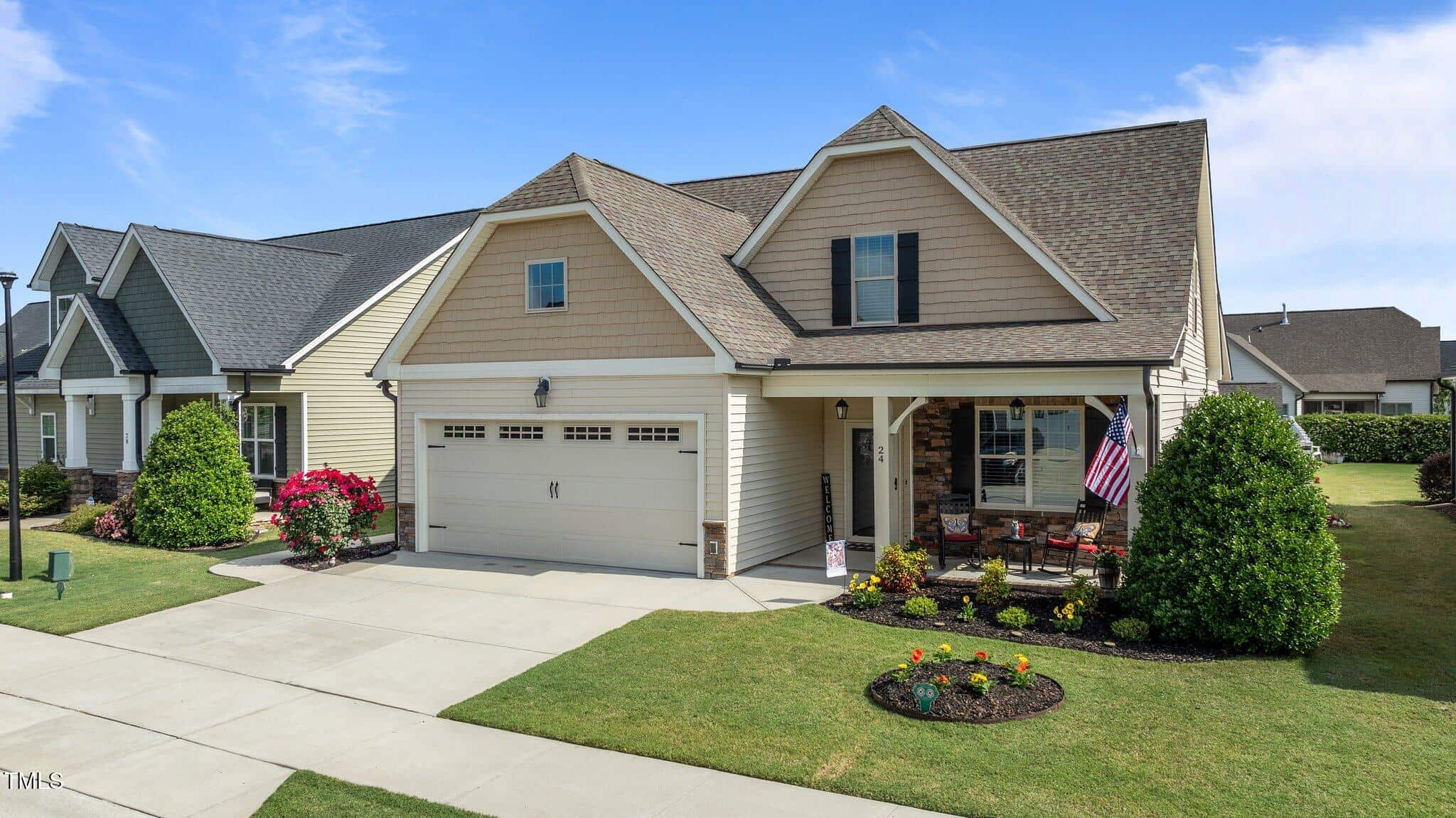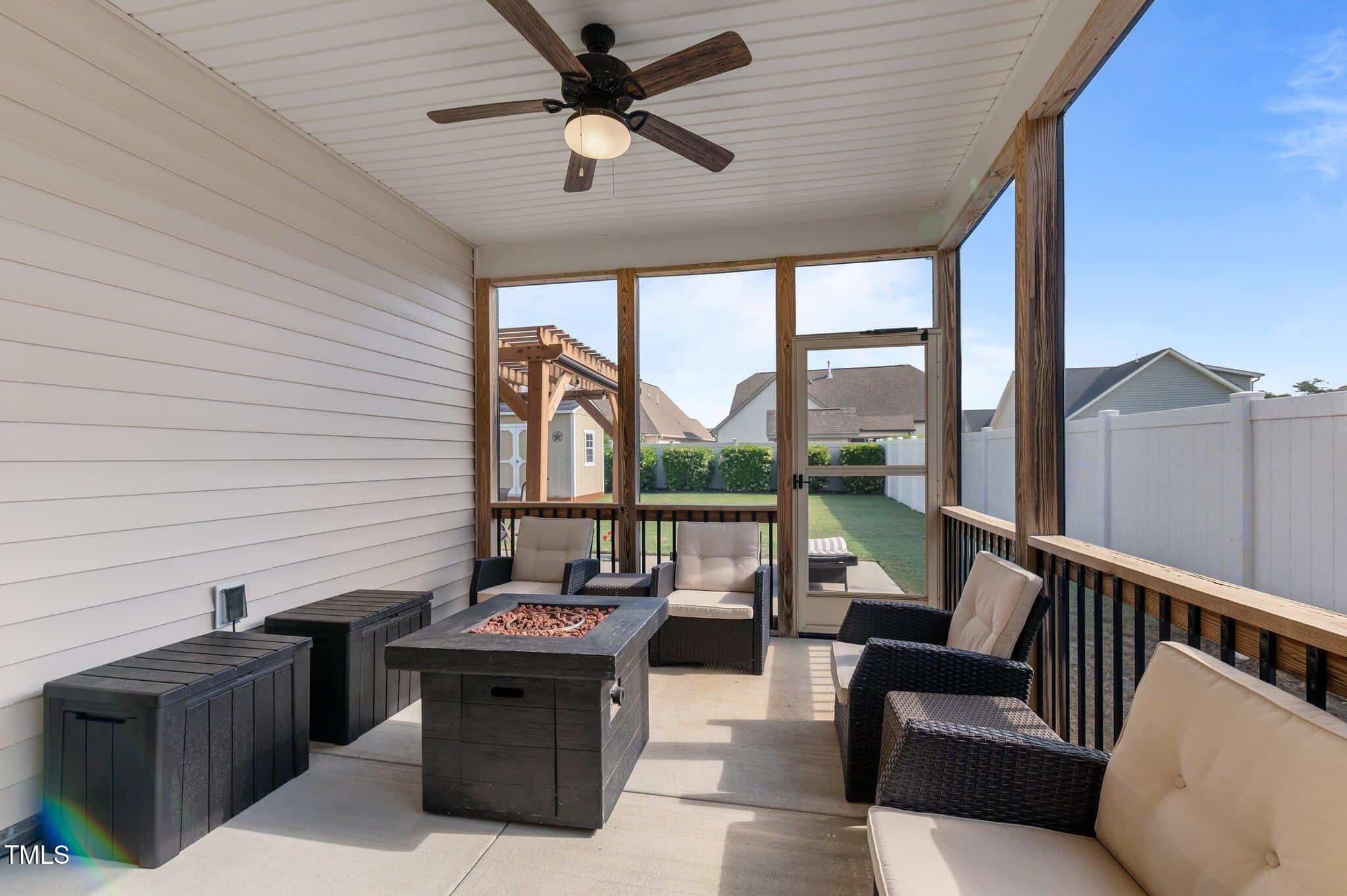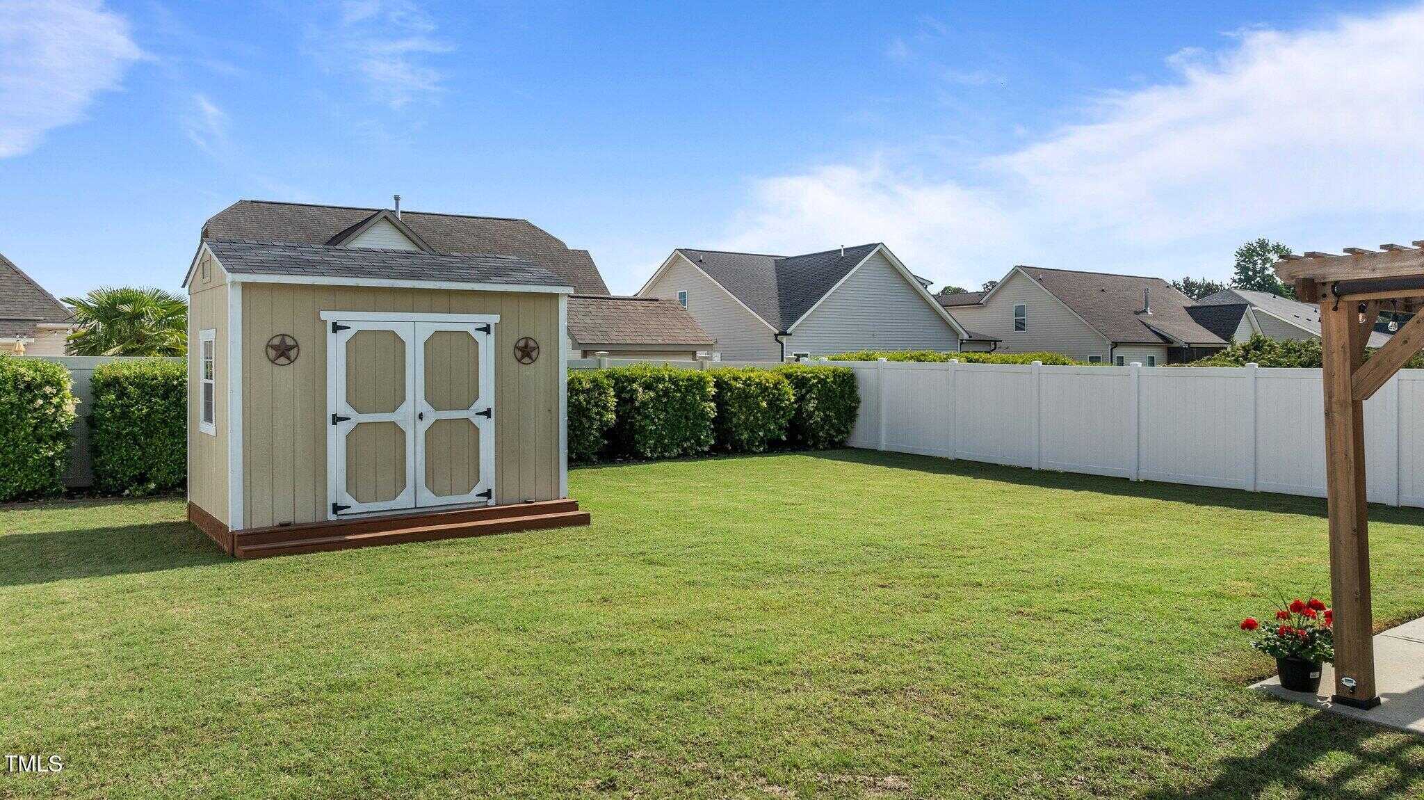 What is not to love? Enjoy this beautiful, move in ready 3 bedroom ranch home in popular Winston Ridge in Youngsville. Open floor plan that includes a gas fireplace in the family area, formal dining area complete with wainscotting. The gourmet kitchen includes natural gas stove, SS appliances, granite counterspace, an island, pantry and refrigerator. Enjoy the outdoors in your screened in porch, extended patio large enough for a full size table. Unwind under the pergola looking out on the flat fenced in yard complete with a storage shed and outdoor lighting. The primary suite is nestled in the rear of the home and has a large walk in shower. There are two additional bedrooms with a shared bath on the main floor. Upstairs you will find a loft area perfect for added living space, or an office area. This property gives room for expansion with 700 SQFT of walk in unfinished attic space. Perfect for added storage or to expand the living area. This community has 2 neighborhood pools to splash your summer away. Reach out for a private showing today.