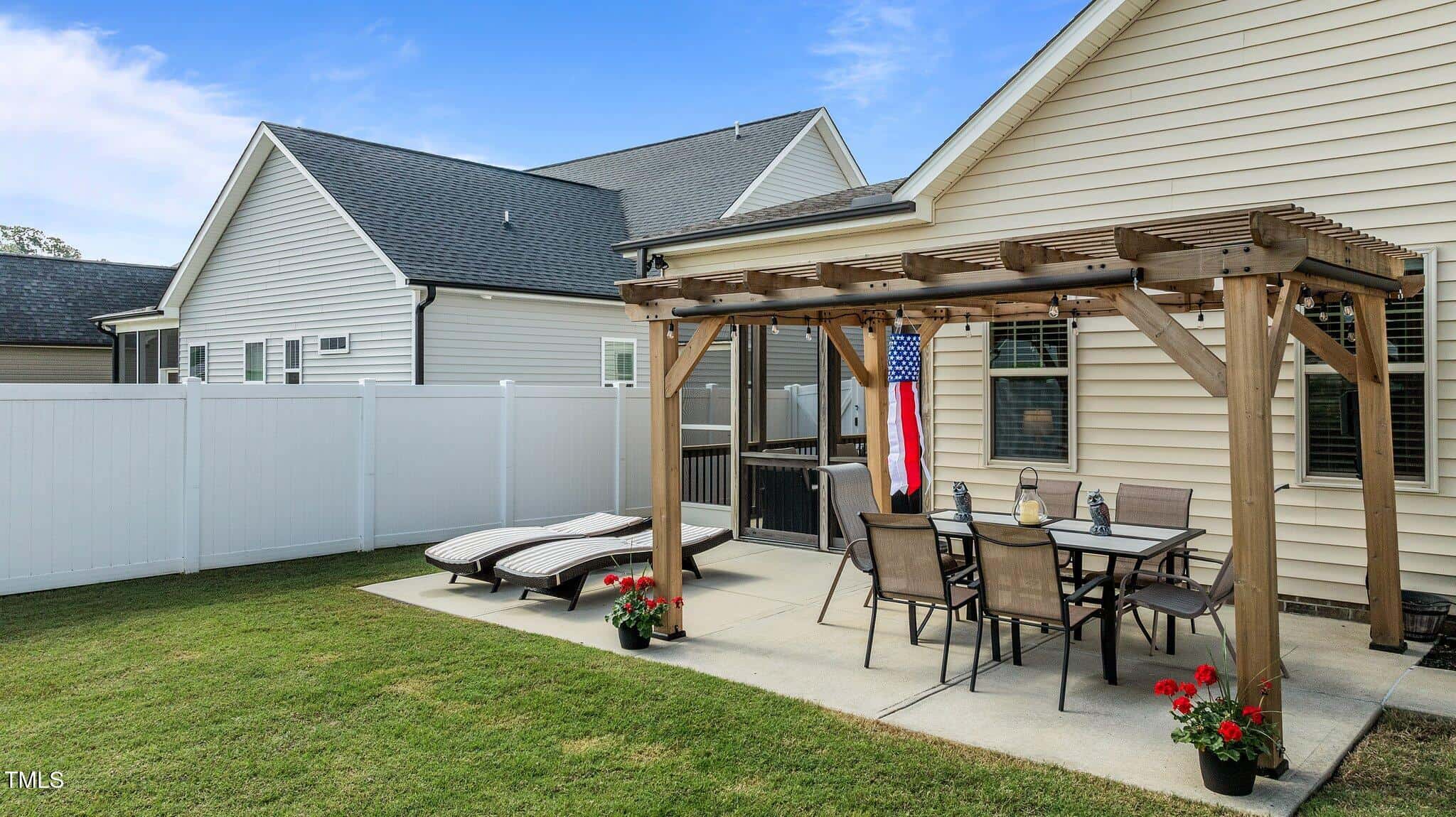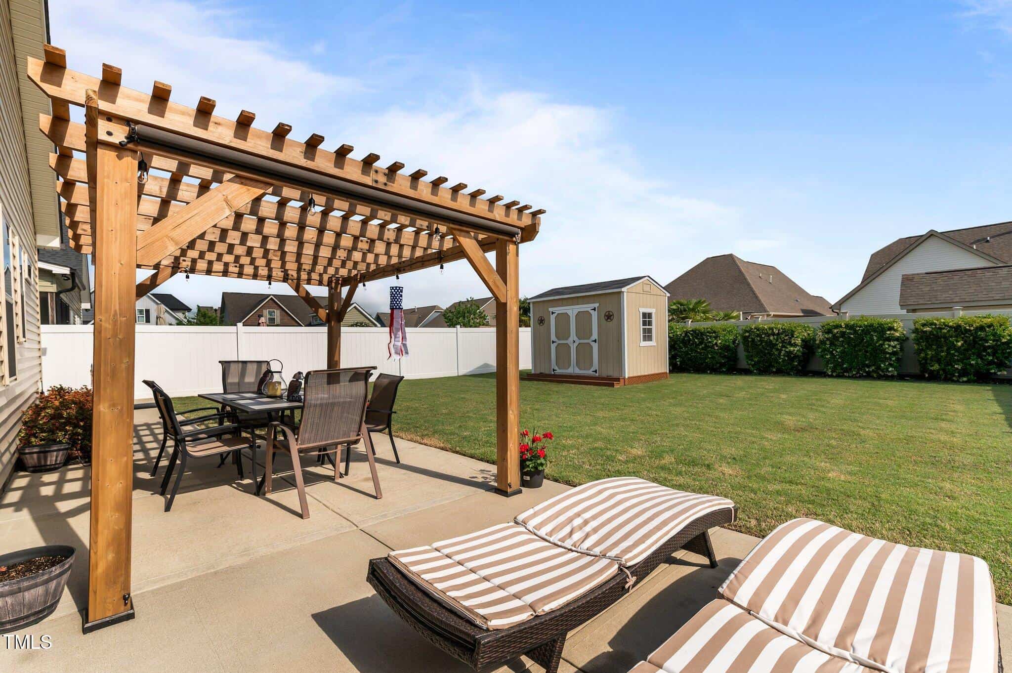 Enjoy the outdoors in your screened in porch, extended patio large enough for a full size table. Unwind under the pergola looking out on the flat fenced in yard complete with a storage shed and outdoor lighting. The primary suite is nestled in the rear of the home and has a large walk in shower. There are two additional bedrooms with a shared bath on the main floor.