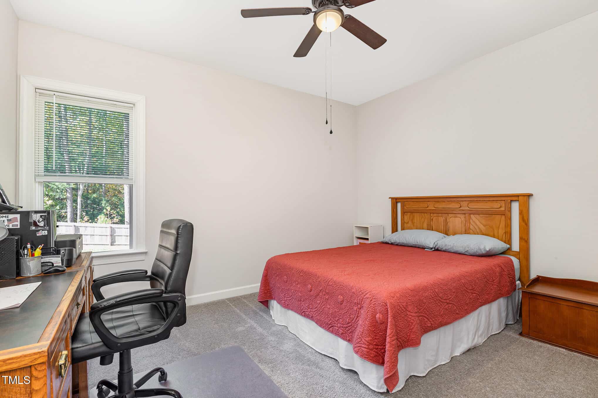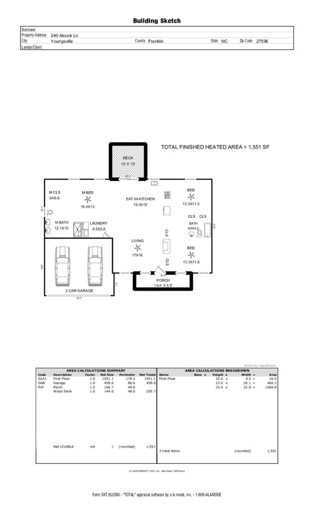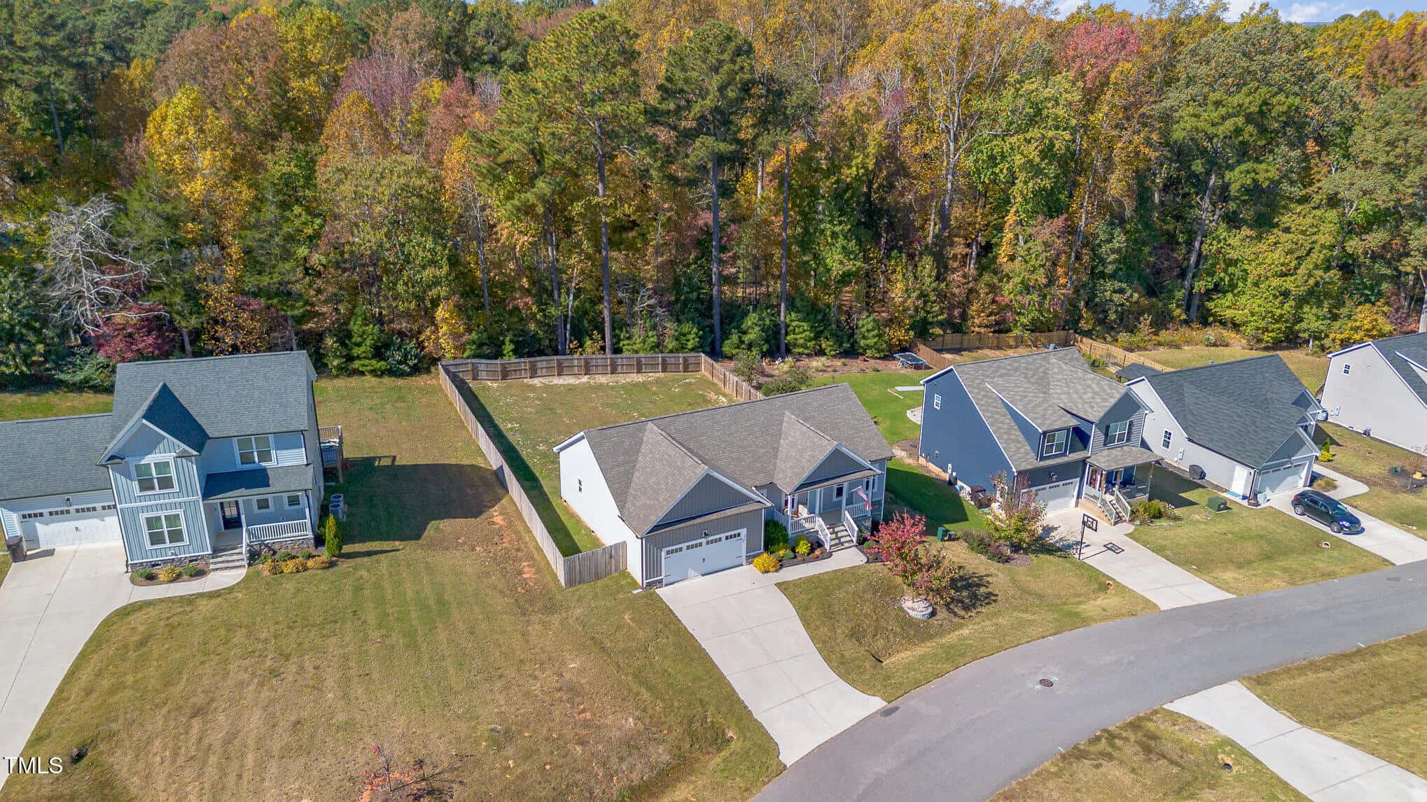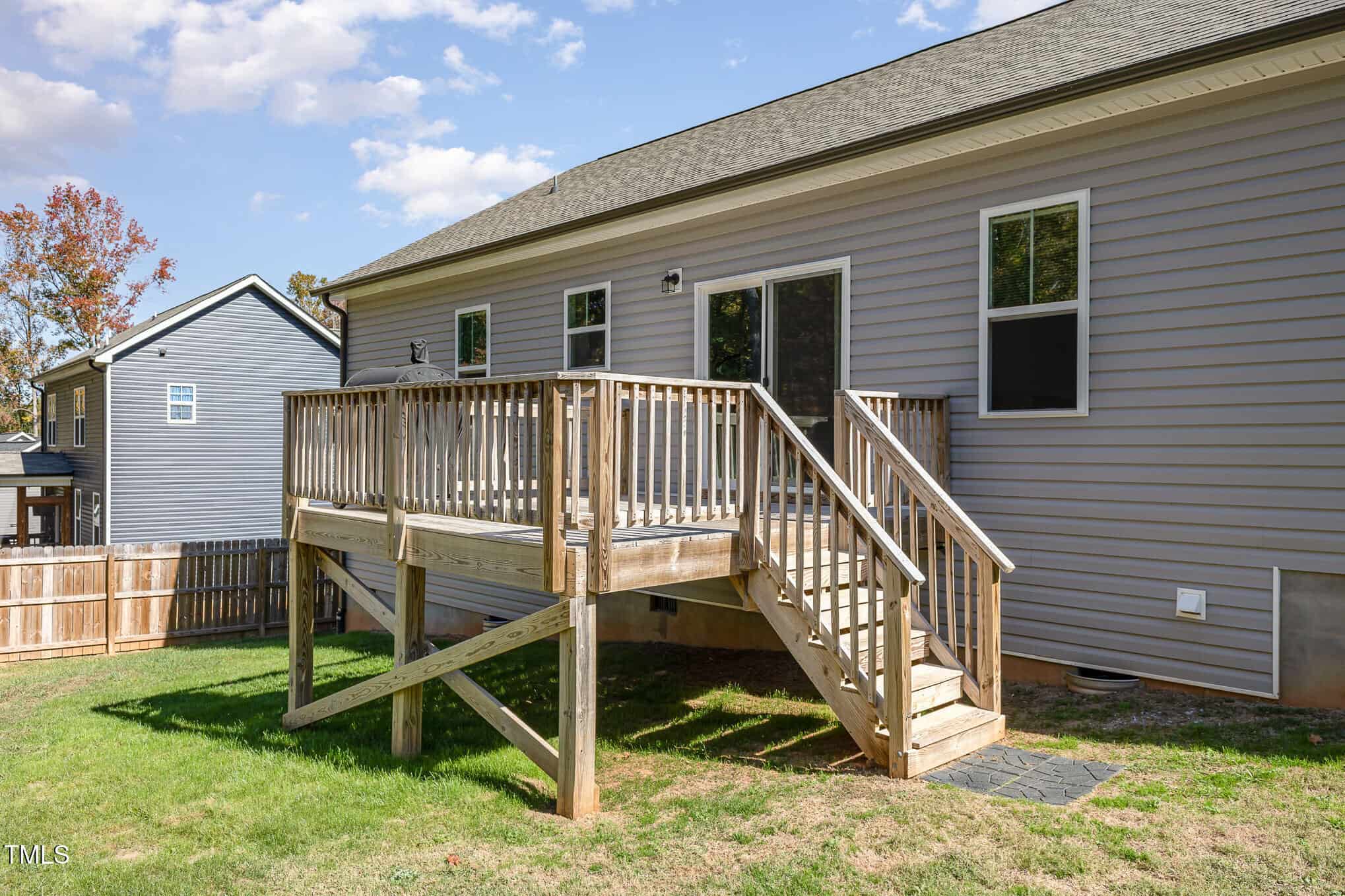 Large bedrooms (all with ceiling fans), large closets, tiled baths. Slider to deck overlooking private, fully fenced back yard. Washer, dryer, refrigerator & security system convey! Great Youngsville location – move-in ready!