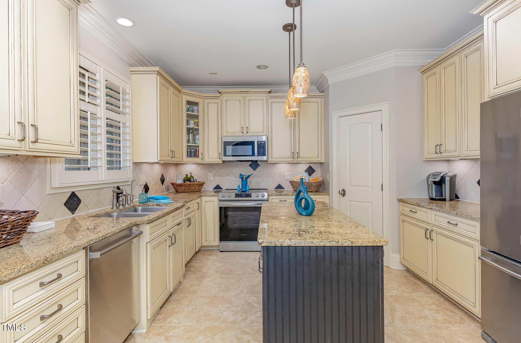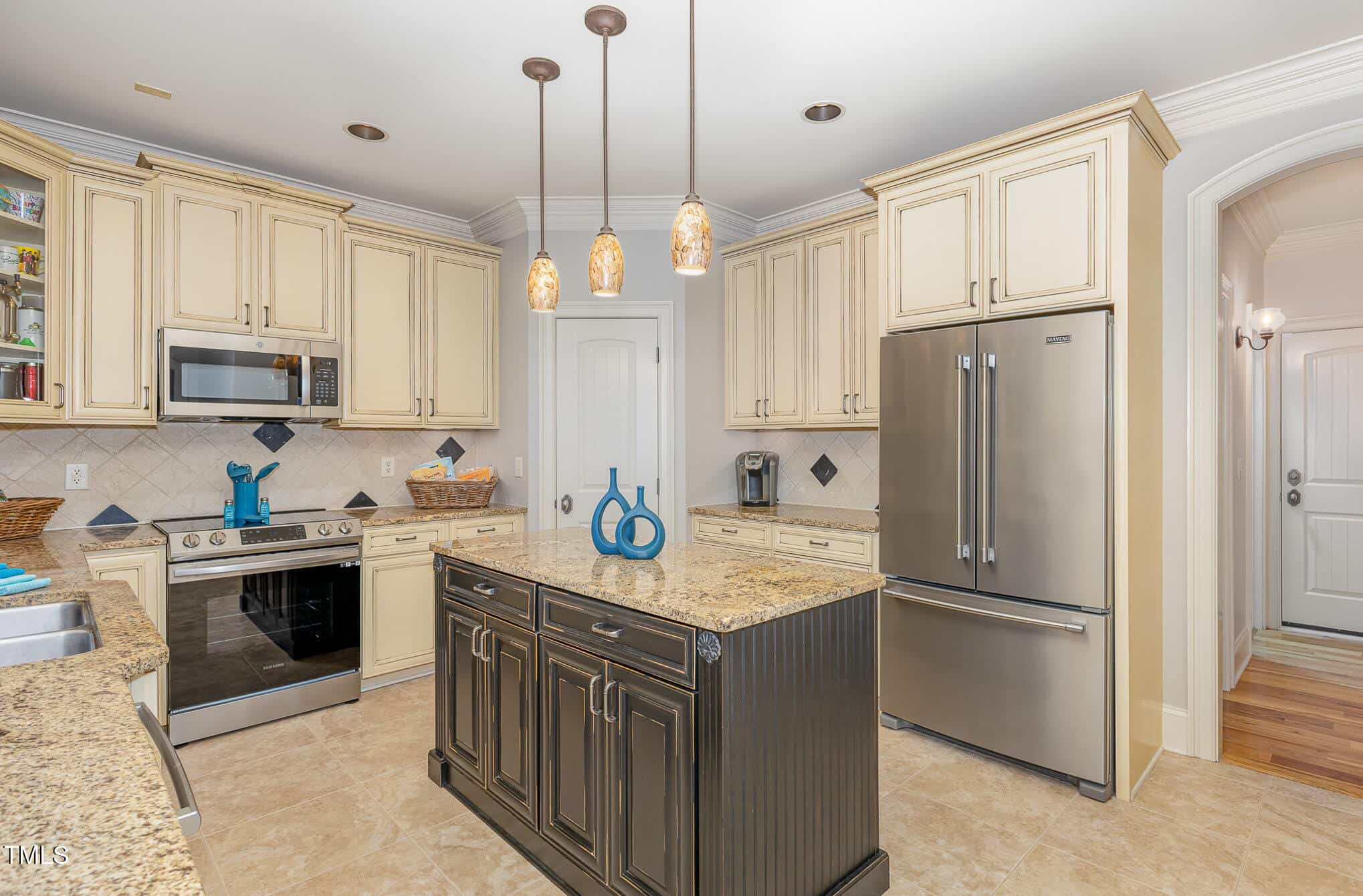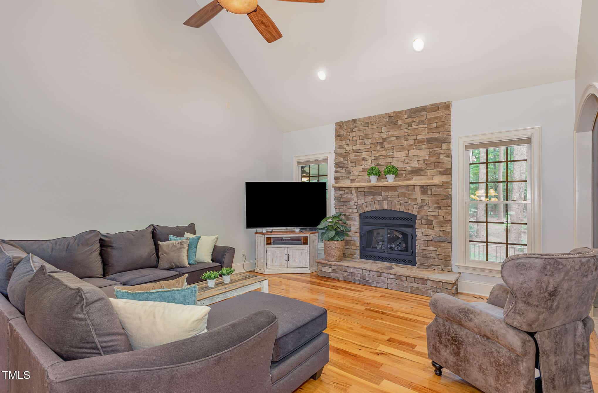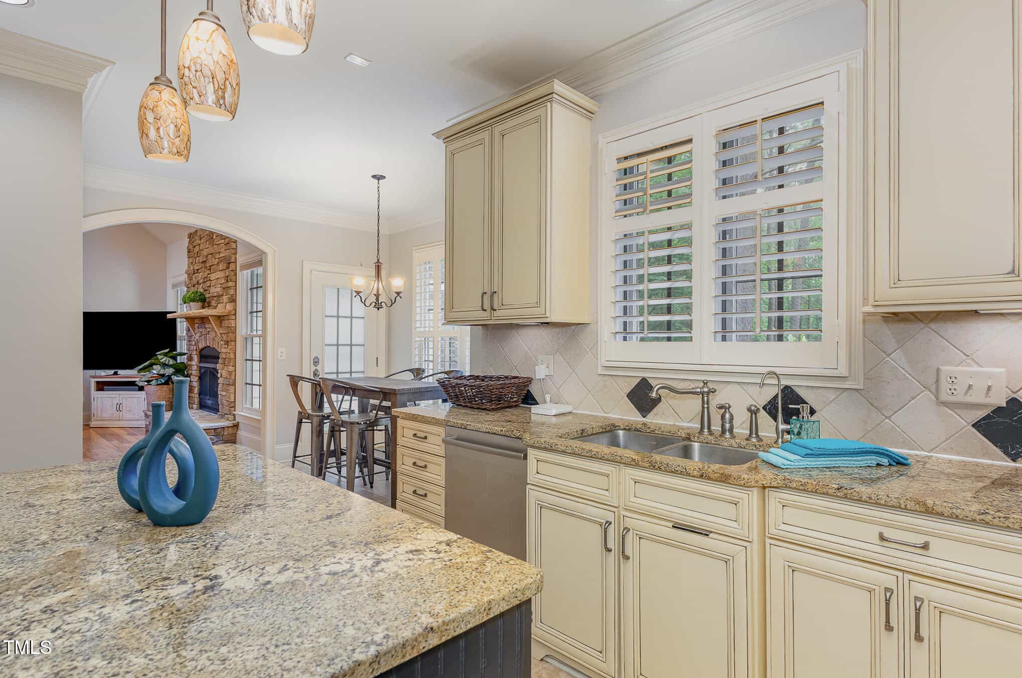 Separate Formal Dining Room, Center Granite Island Kitchen with New SS Appliances and Custom Cabinetry, Great Room with Soaring Ceilings and Stone Fireplace with new Gas Logs.