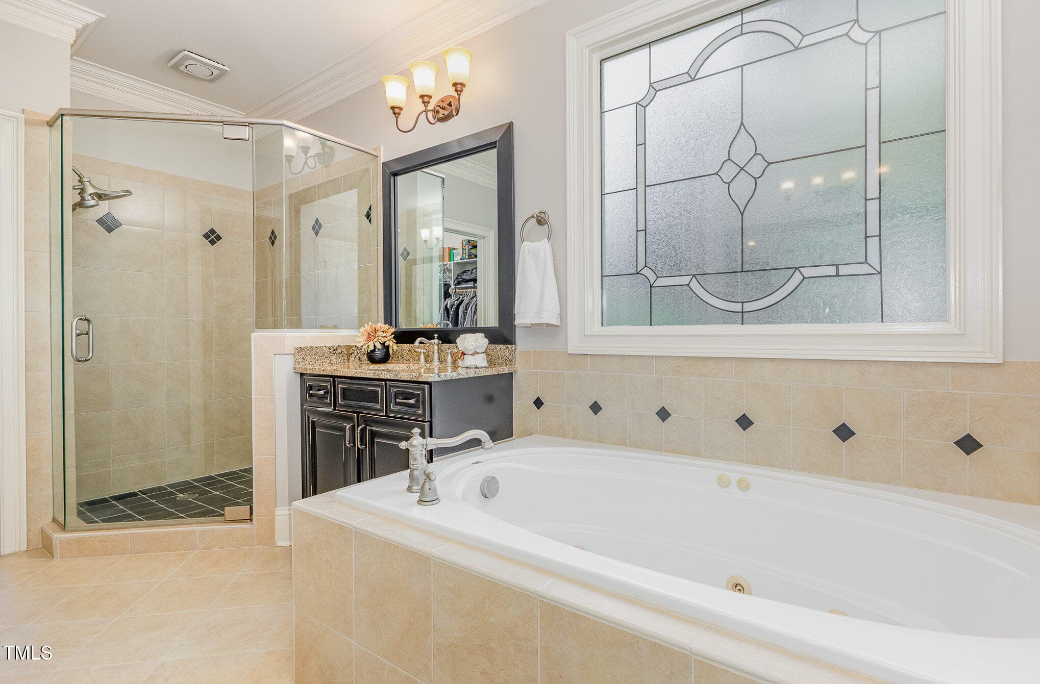 Custom Built Home with High End Touches. First Floor Primary Retreat with a Large 3 Season Room. Primary Bath has a Jacuzzi Tub / Walk in Shower, Dual Vanities & Walk in Closet, Gorgeous Hardwood & Tile Floors on the Main Level.