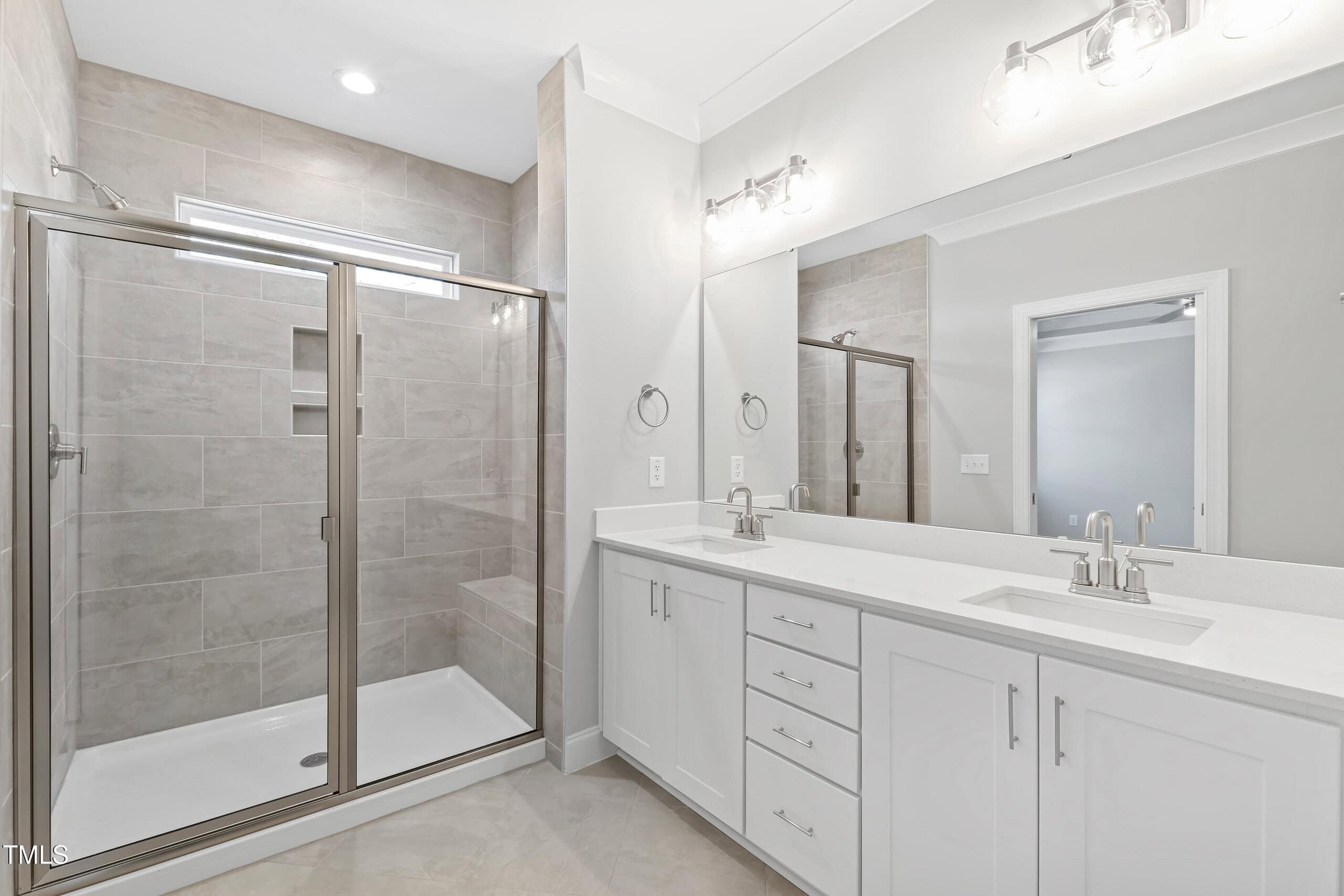 Mstr: Ceiling fan, crown molding & WlkInCloset! MstrBth: 17×17 ivory matte Cavanite tile floor, dual vanity w/”White Satin” painted cabinets topped with ”Simply White” quartz & luxurious 12×24 ivory matte Cavanite tile walk-in shower w/niche & bench.