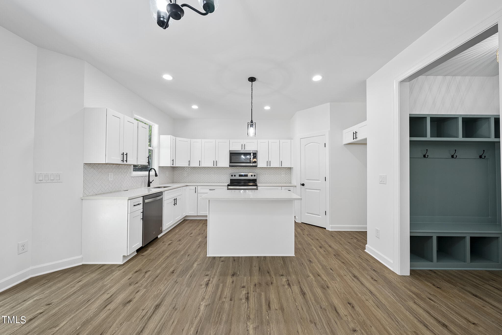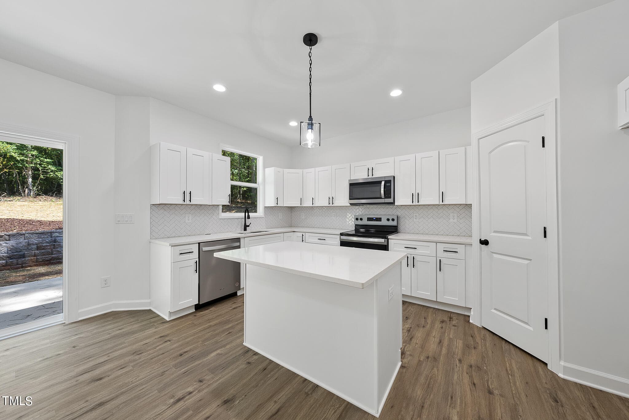 Welcome to 242 Sequoia Drive, a stunning new construction home located in the sought-after gated community of Lake Royale. This beautifully crafted residence offers modern luxury and impeccable attention to detail throughout. Step into an open-concept living space featuring luxury vinyl, plush carpet, and tile flooring, with large windows that fill the home with natural light. The gourmet kitchen is the heart of the home, equipped with quartz countertops, stainless steel appliances, a large center island, and custom cabinetry—perfect for cooking and entertaining.