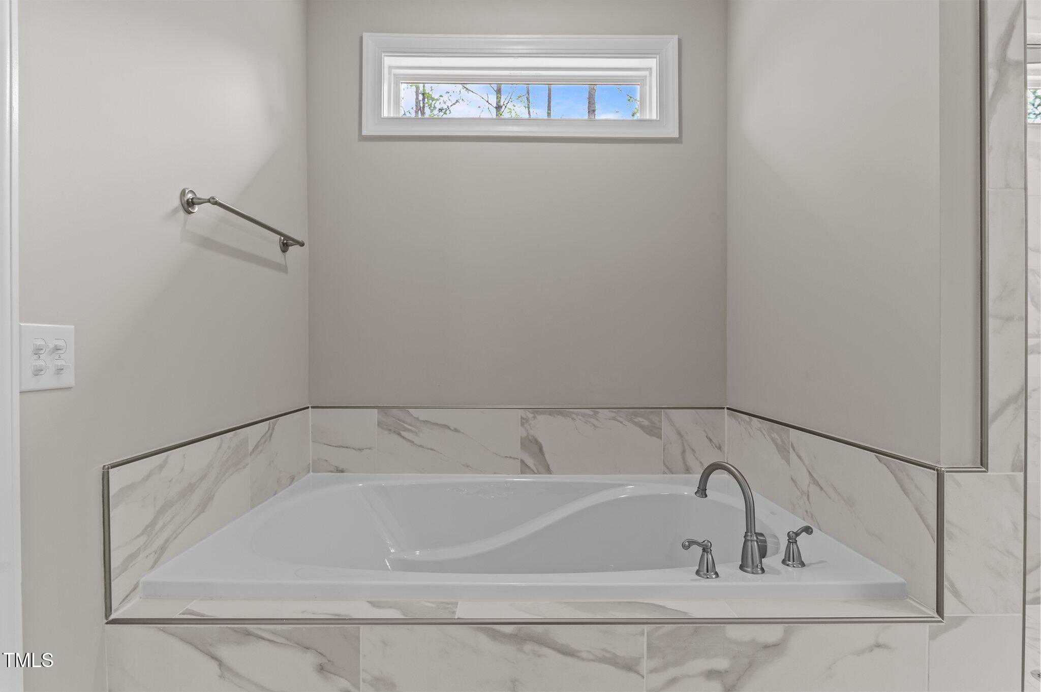 The spacious & bright owner’s suite adjoins a spa style bath with soaking tub & separate shower with tile to ceiling surround & stained dual vanity with custom cabinetry and huge walk-in closet!