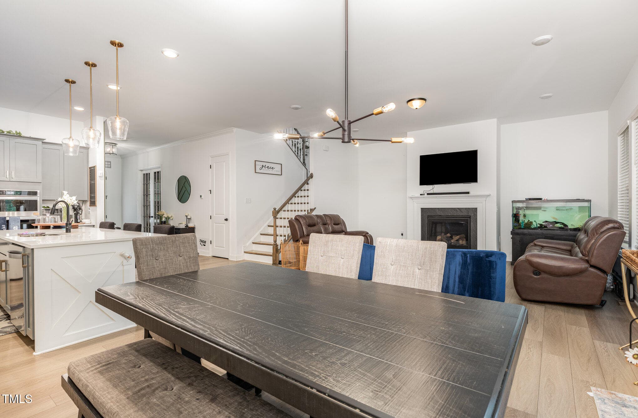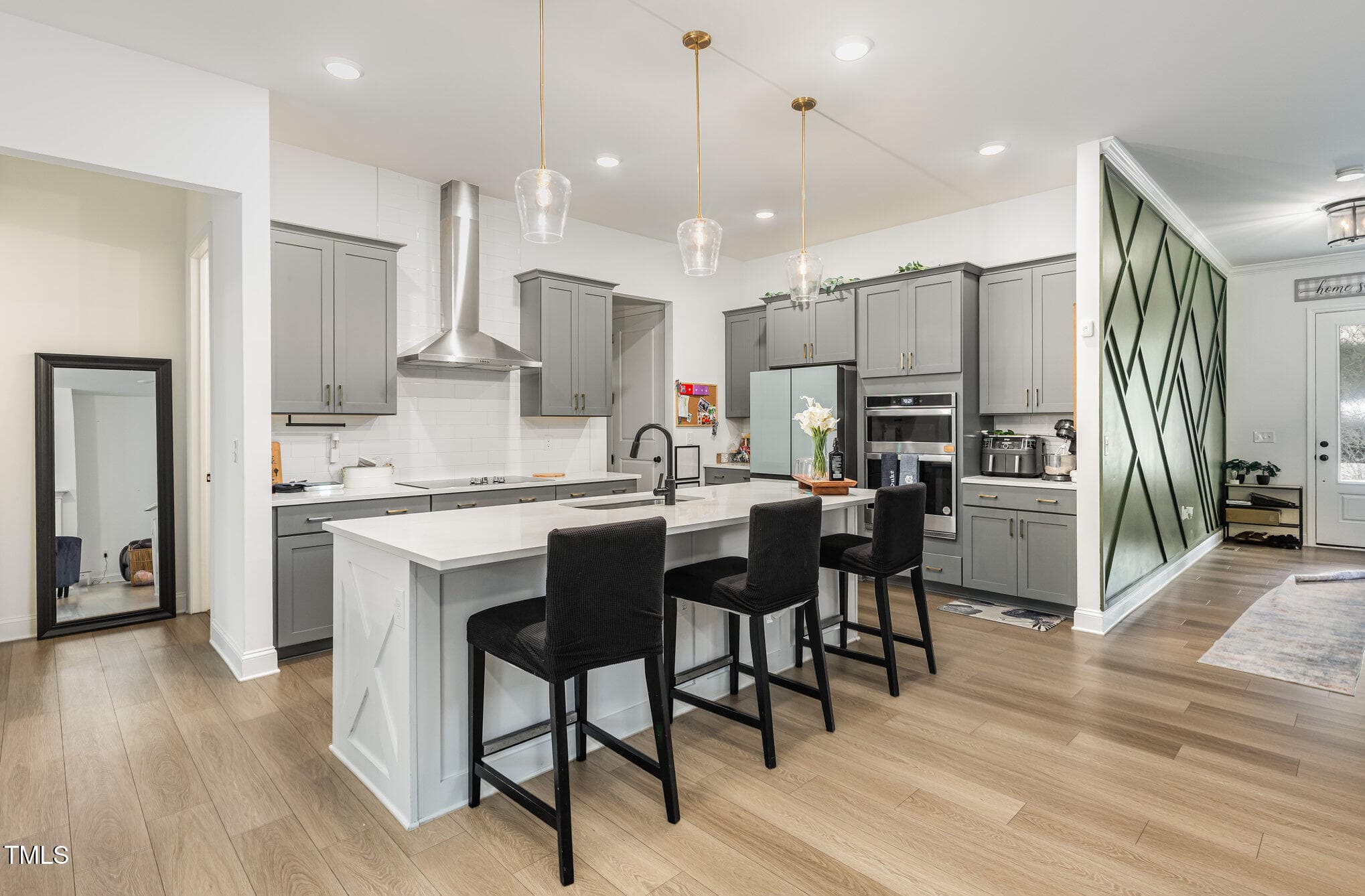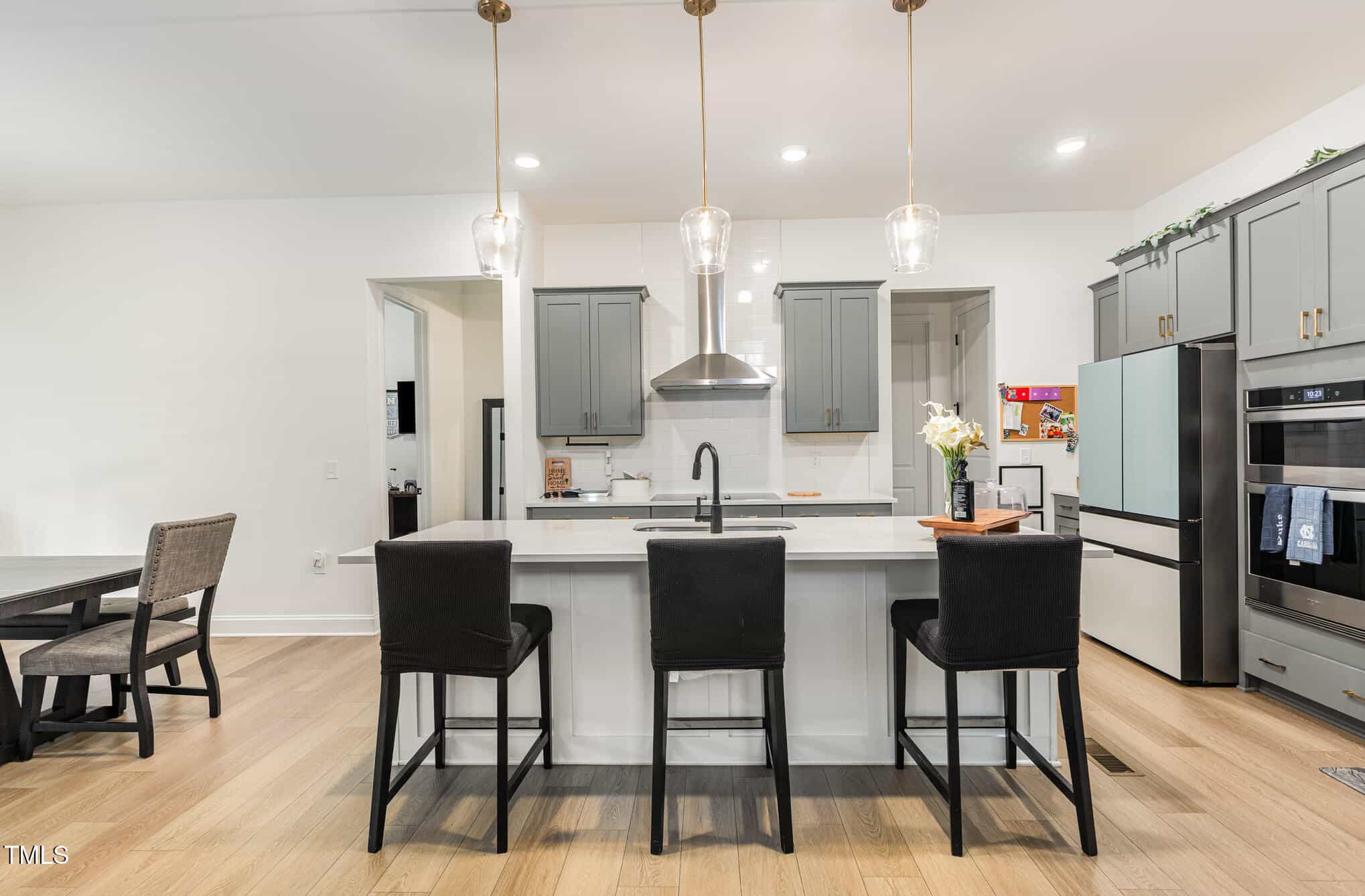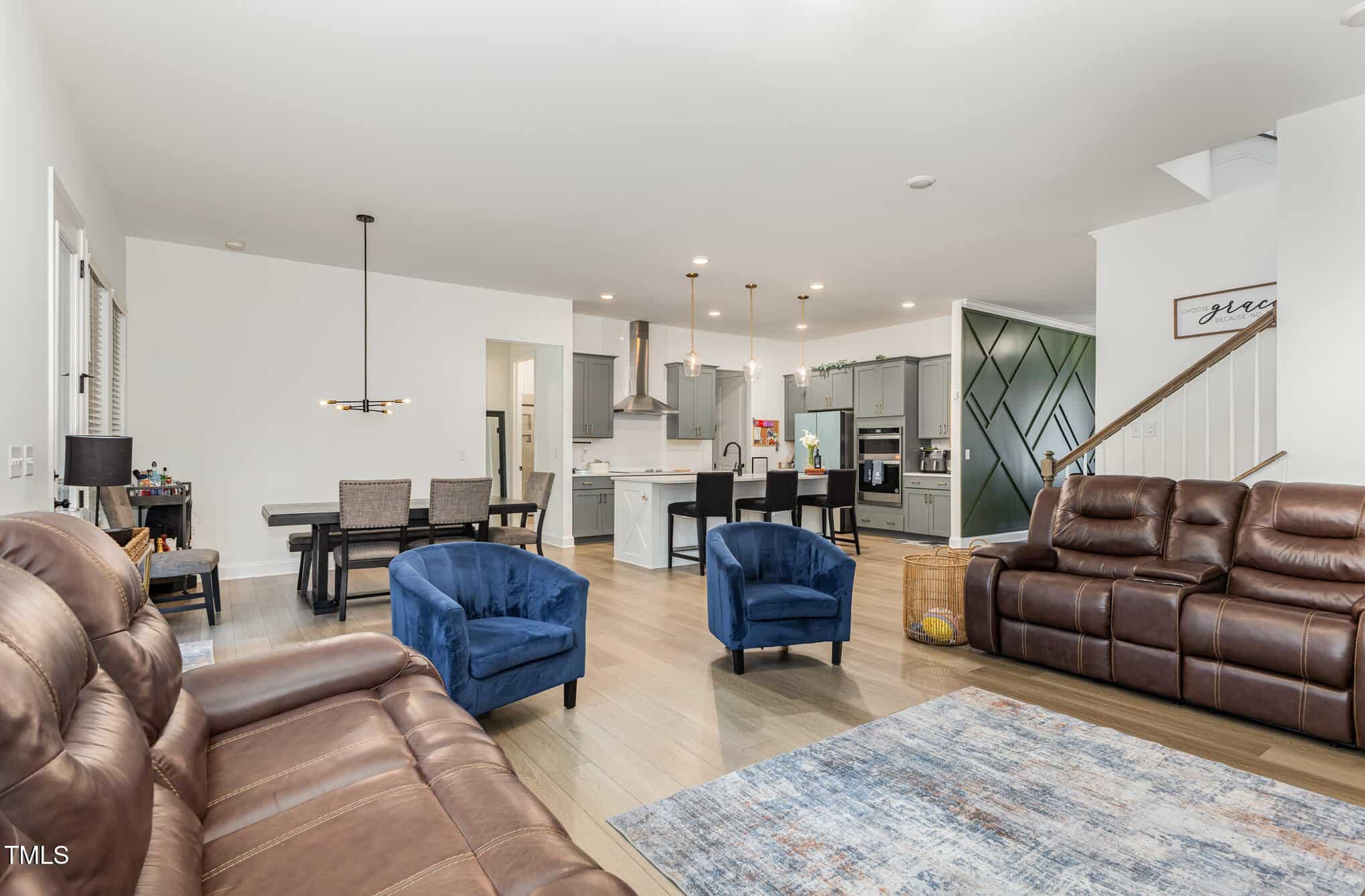 The front of the home features a flex room with glass doors that can be an office/study, or formal dining. There is a main floor bedroom and full bath for when parents or guests come that enjoy the convenience of those amenties with no stairs.