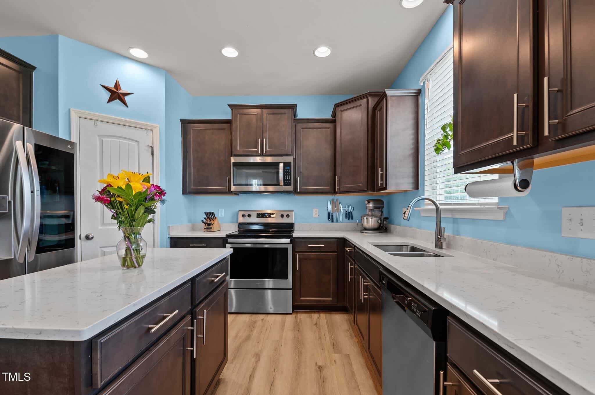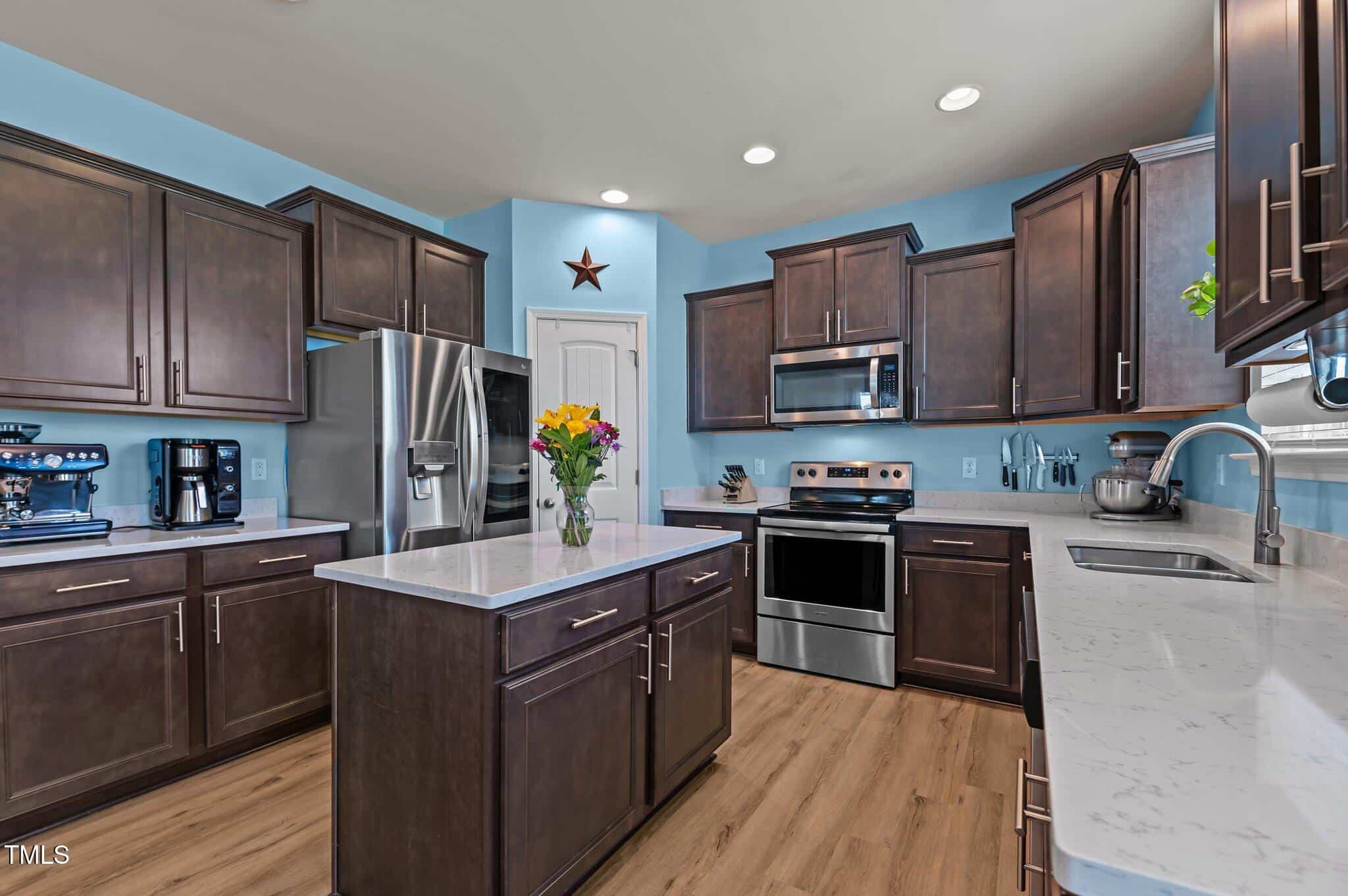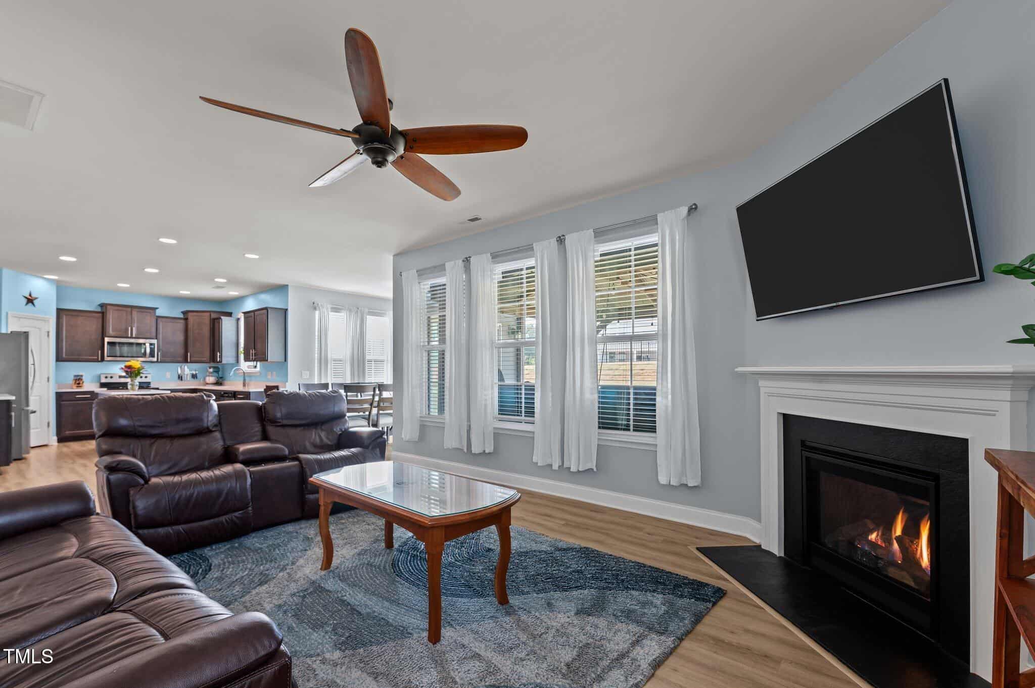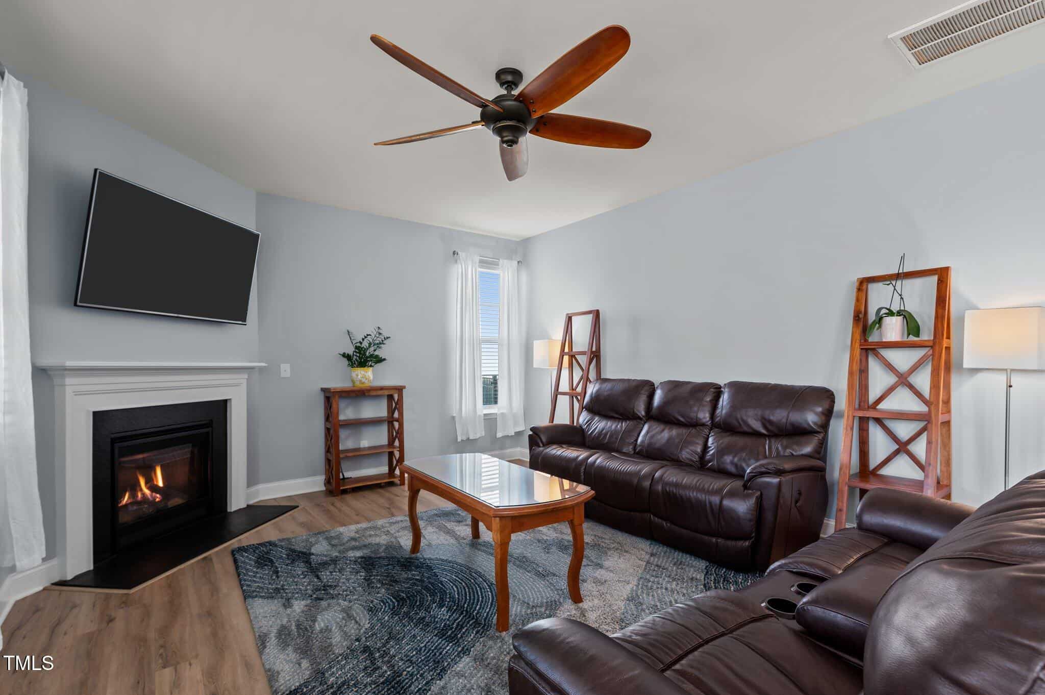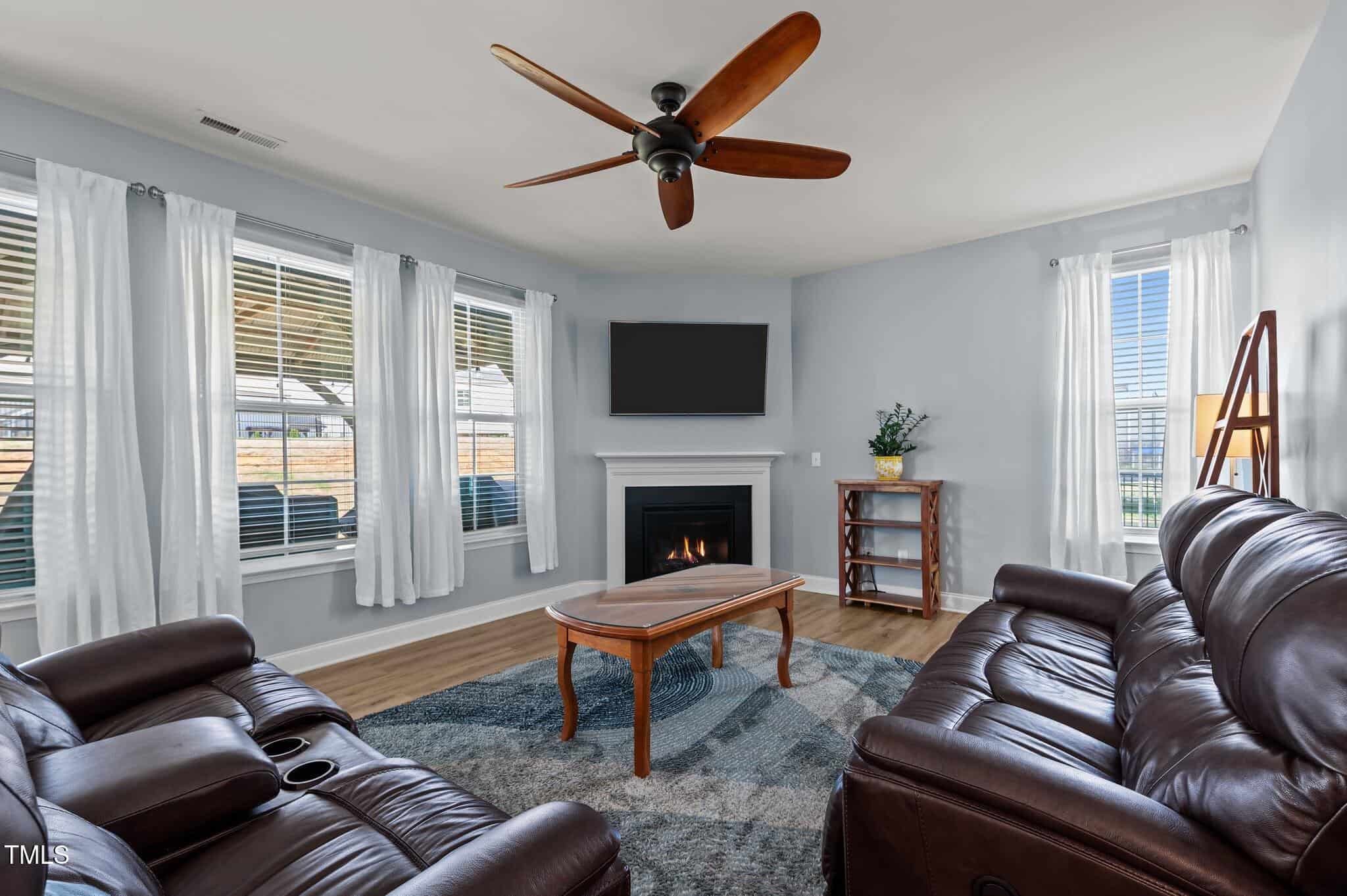 A Rocking Chair Front Porch greets your guests to this well kept home w/ Front Stone Accents. 1st Floor Guest Suite / Office with Full Bathroom off the Foyer that leads you to the Large Family Room w/ Ceiling Fan and Gas Log Fireplace. Kitchen features Quartz Countertops, Island, Stainless Appliances, Walk-in Pantry, and Refrigerator Conveys. This plan features a bump out Dining Area that will accommodate a larger dining table.