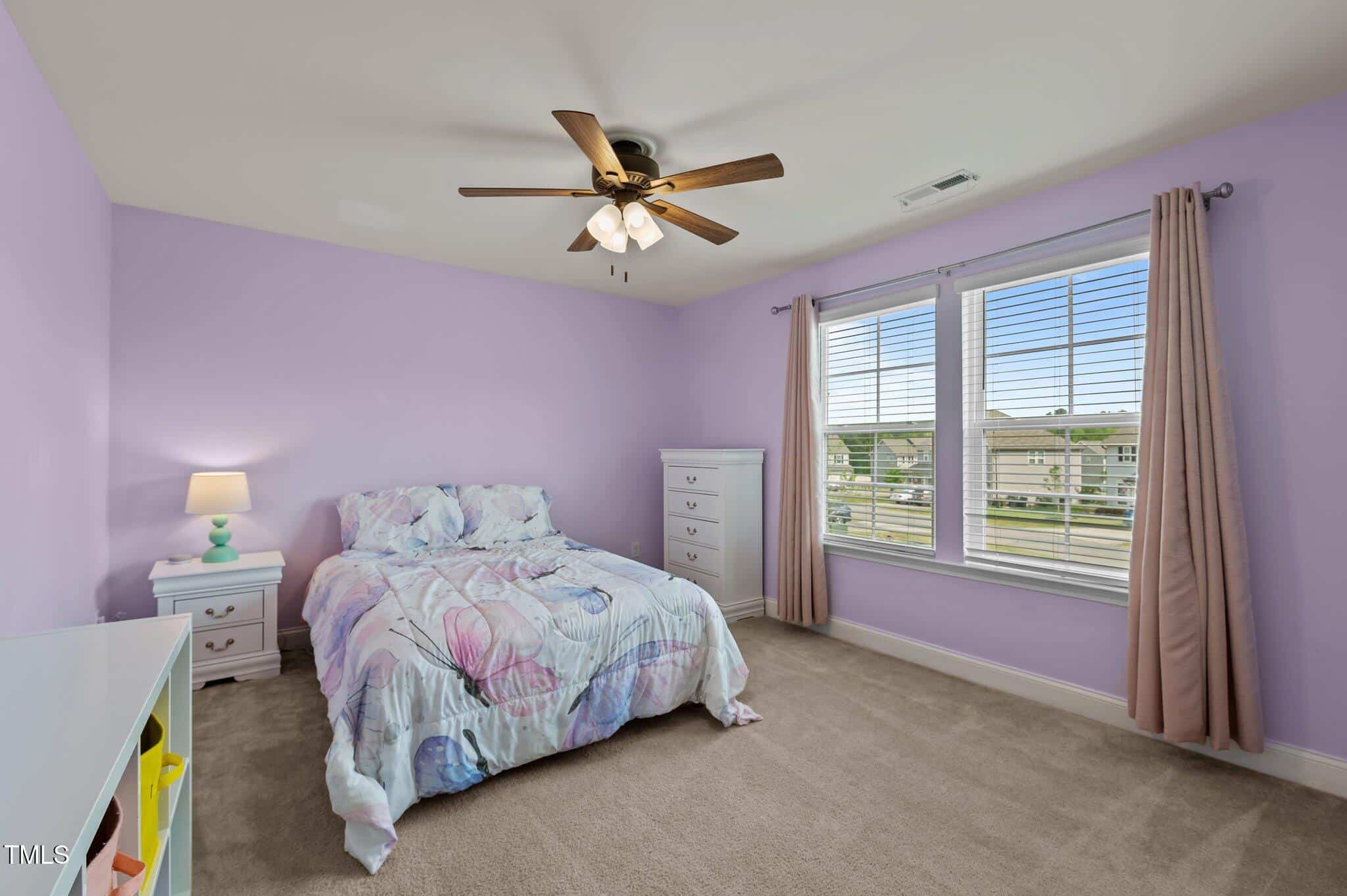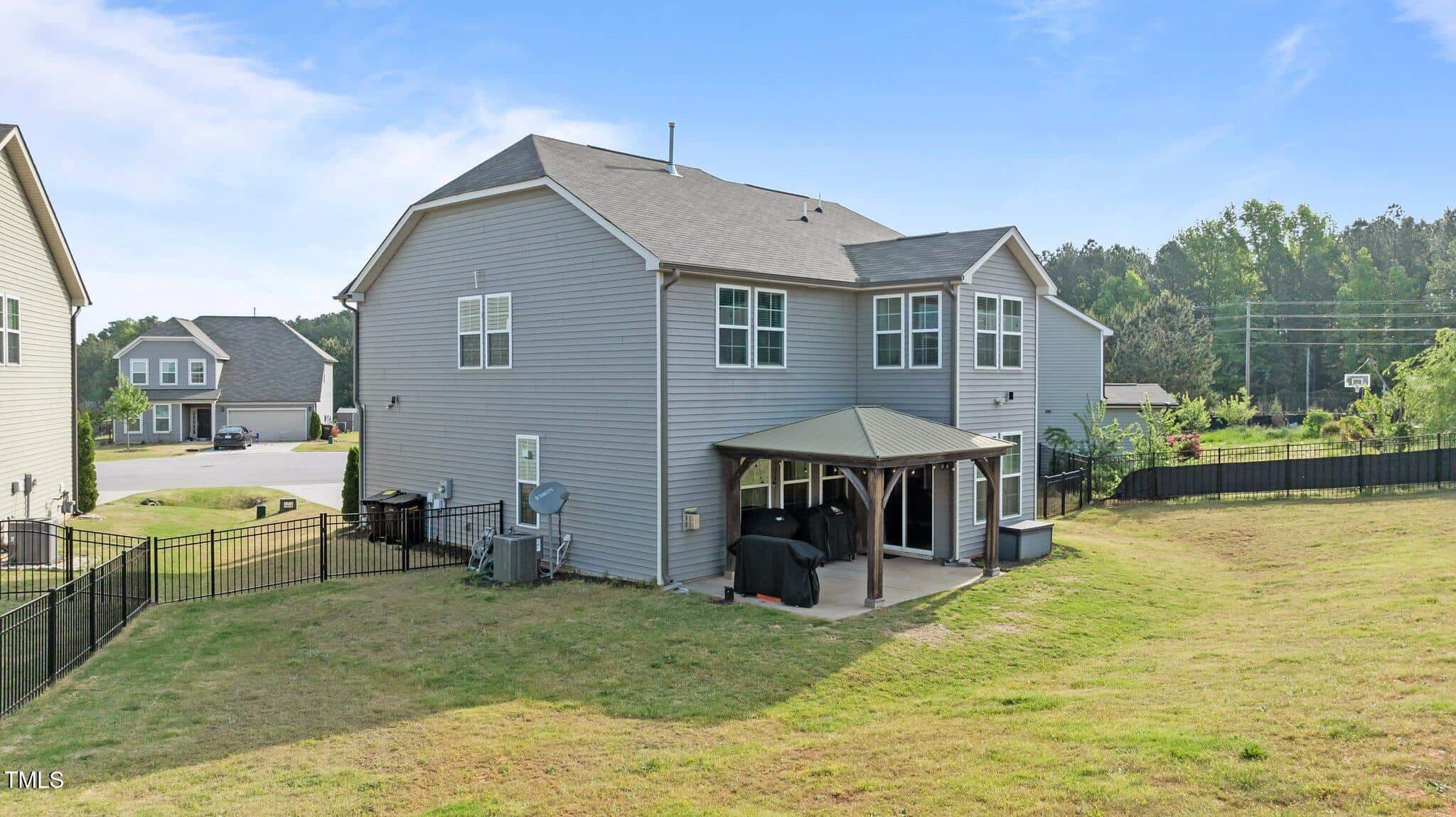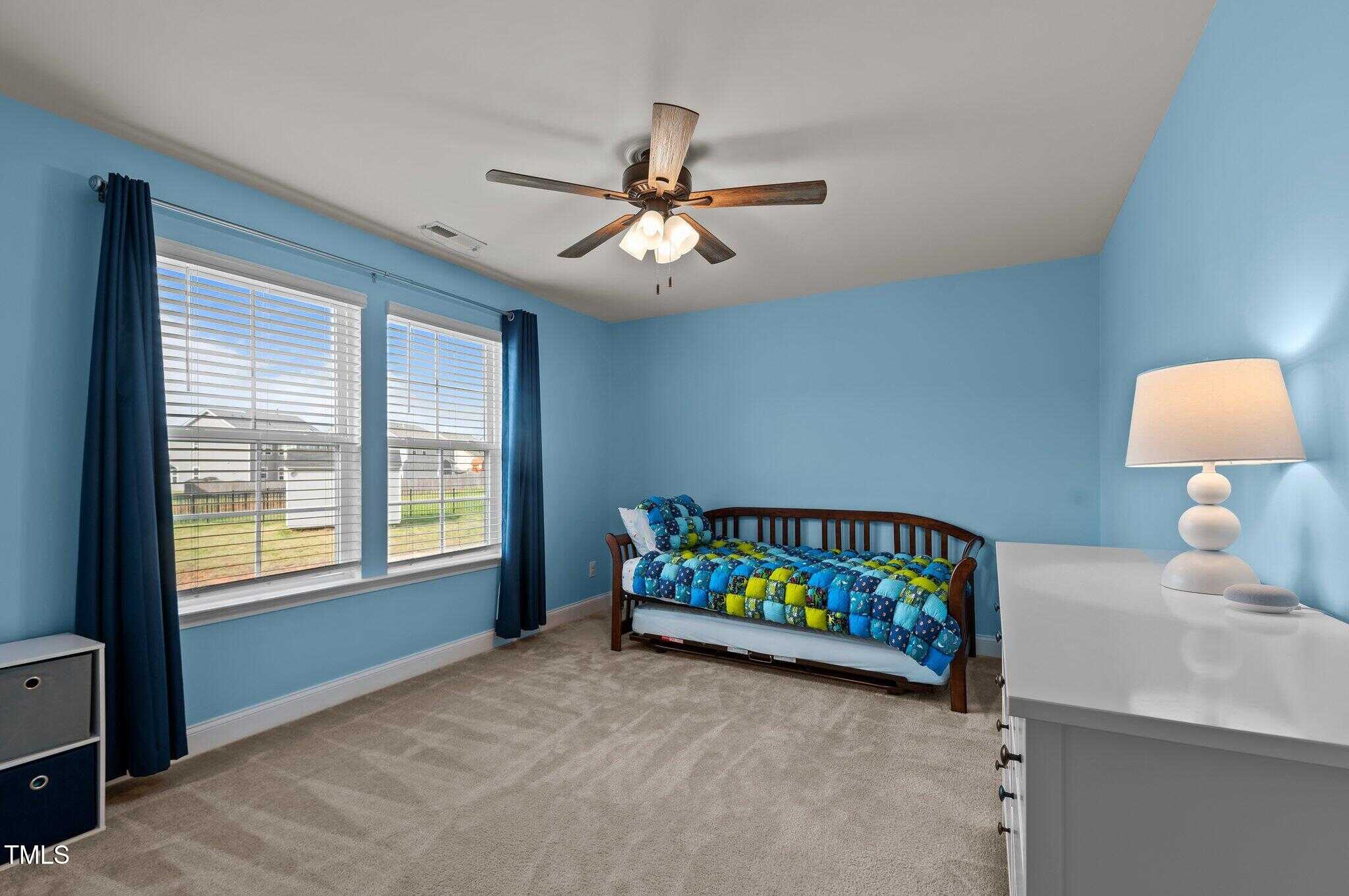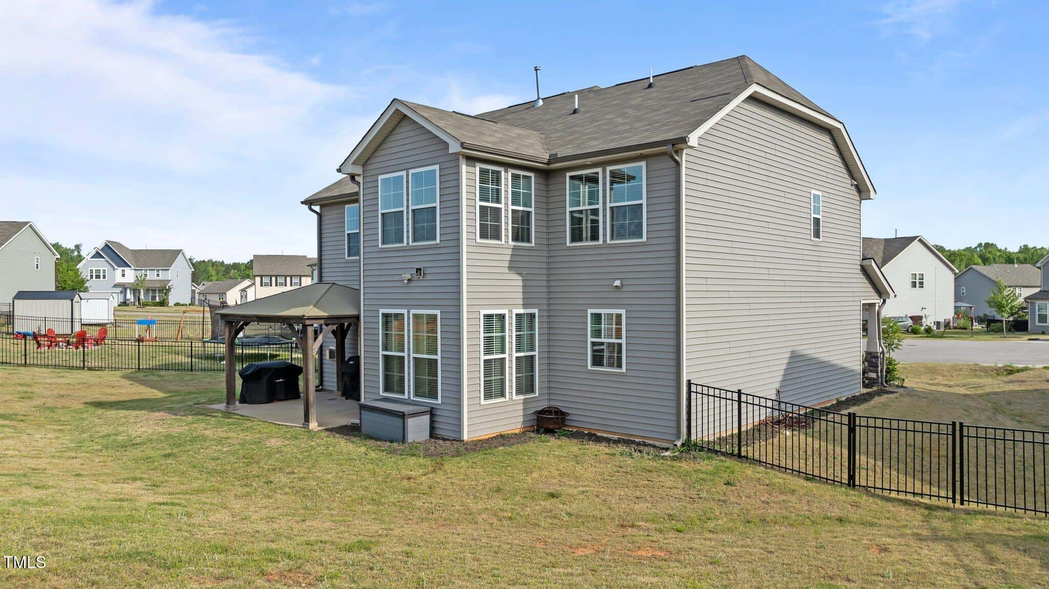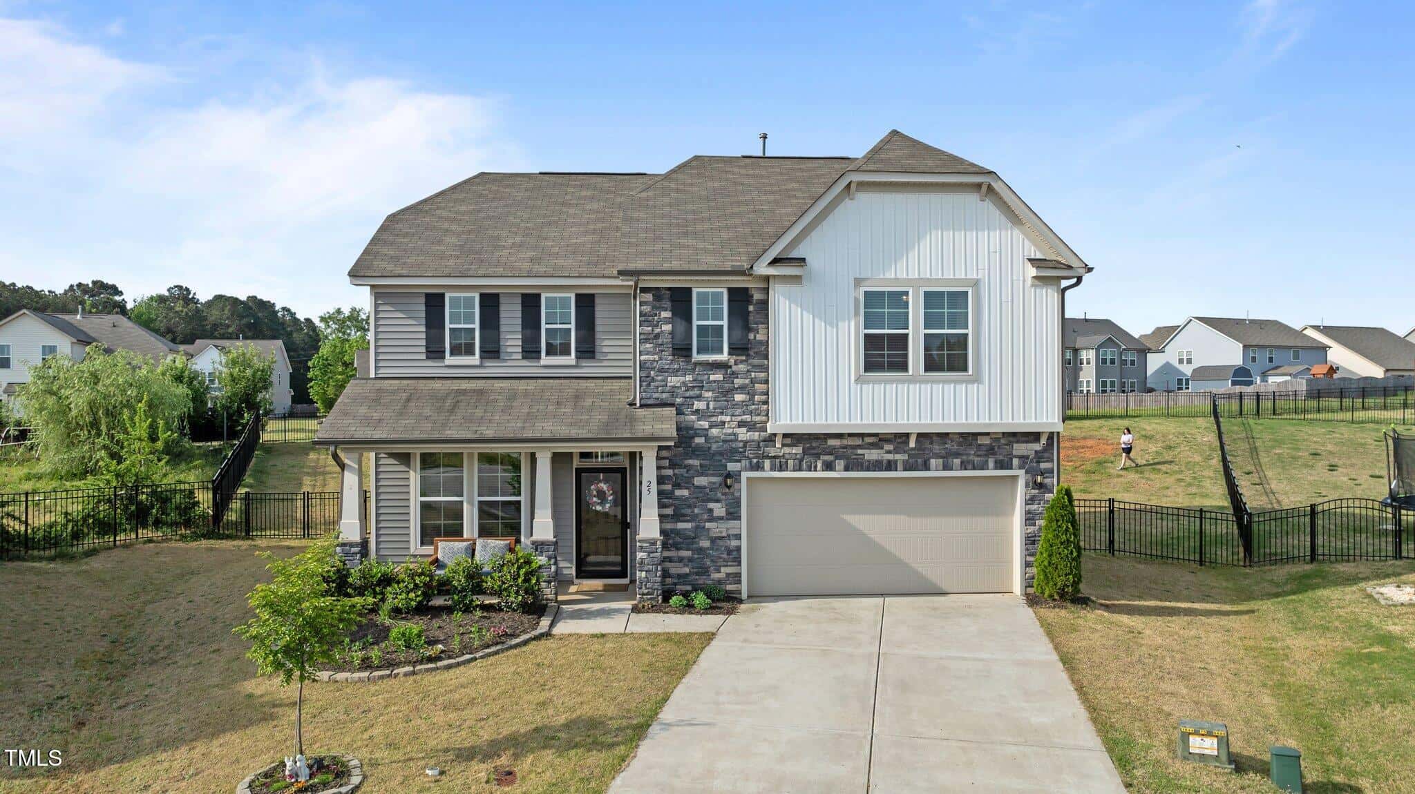 A Rocking Chair Front Porch greets your guests to this well kept home w/ Front Stone Accents. 1st Floor Guest Suite / Office with Full Bathroom off the Foyer that leads you to the Large Family Room w/ Ceiling Fan and Gas Log Fireplace. Kitchen features Quartz Countertops, Island, Stainless Appliances, Walk-in Pantry, and Refrigerator Conveys. This plan features a bump out Dining Area that will accommodate a larger dining table. Large Loft/Bonus Room area at the top of the steps and Three Additional Bedrooms including a Grand Primary Suite w/ Tray Ceiling & Sitting Room. Primary Bath features Dual Vanity w/ updated fixtures, Large Tile Surround Shower w/ Body Jets, Rainfall Shower Head, and Handheld Wand, Private Water Closet, and Huge Walk-in Closet. Epoxy Flooring and Raised Storage in the Garage. Patio with Covered Pergola overlooks the Large Fenced Backyard.