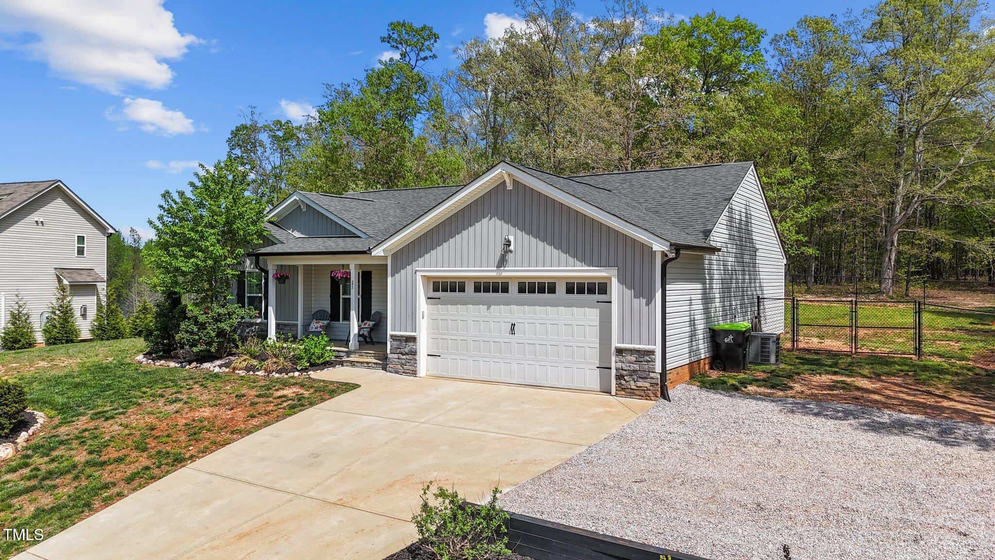 Welcome to this delightful 3BR/2BA ranch home nestled on a .71 acre lot with a fenced in back yard. This home features an open floorplan with cathedral ceilings, creating a bright and inviting atmosphere. The kitchen boasts granite countertops, beautiful subway tile, stainless steel appliances including refrigerator, a large island for additional seating, and flows seamlessly into the living and dining areas. The primary bedroom offers a HUGE walk-in closet that opens into the laundry room for added convenience, as well as a large bathroom with a standup shower and dual vanities . With a rocking chair front porch, a back patio for entertaining, a two car garage and extended parking area, this home perfectly combines functionality and charm! Make it yours today!