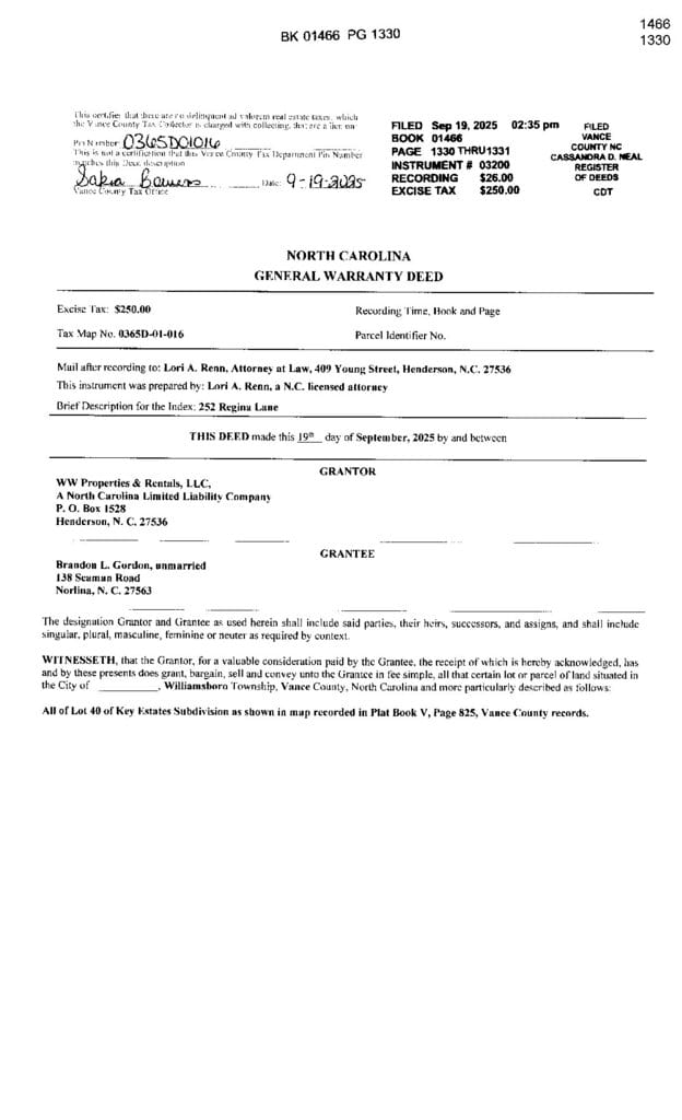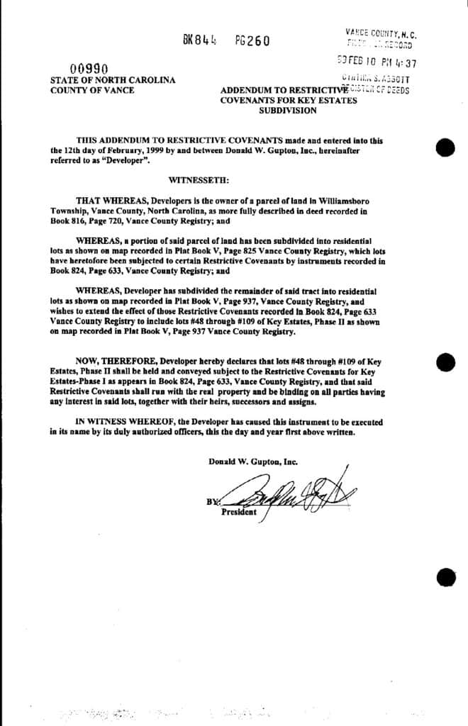 Key Estates – Williamsboro Township – Vance County