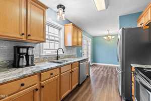 The home features stunning new luxury vinyl flooring throughout, creating a sleek and durable foundation for every room. New fixture and floor tiles in the bathrooms. The kitchen is upgraded with gleaming granite countertops, brand-new appliances, and ample cabinet space for all your culinary needs.