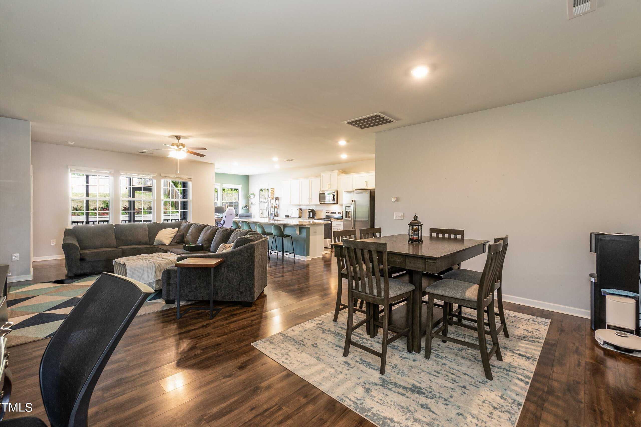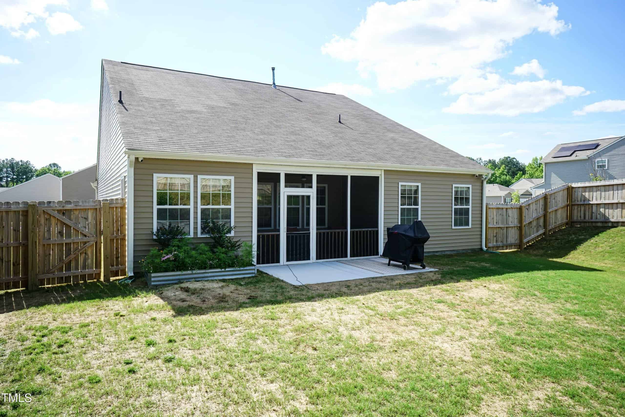 Located in the beautiful and desirable community of Amberleaf, this exquisite home, built in 2020 boasts 3 ample sized bedrooms, including a large owner’s suite with loads of closet space and a beautifully appointed bath. The open floor plan is an entertainers dream with plenty of space for family and friends. The kitchen boasts an oversized granite island that would make any chef jealous. High quality engineered flooring throughout, tasteful finishes, and plenty of natural light create the most inviting atmosphere. Off the kitchen is a newly screened in back porch that opens to a large, newly fenced in yard. A new retaining wall opens up even more of the yard for a plethora of uses. Ample storage throughout including a large 2 car garage and an attic space that covers almost the entire floor plan. Plenty of parking in the expanded driveway. Conveniently located just across from the school bus stop. A short commute to shopping, parks, restaurants, and the triangle area. Come see this amazing move in ready property before it’s gone!