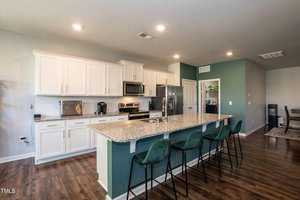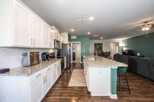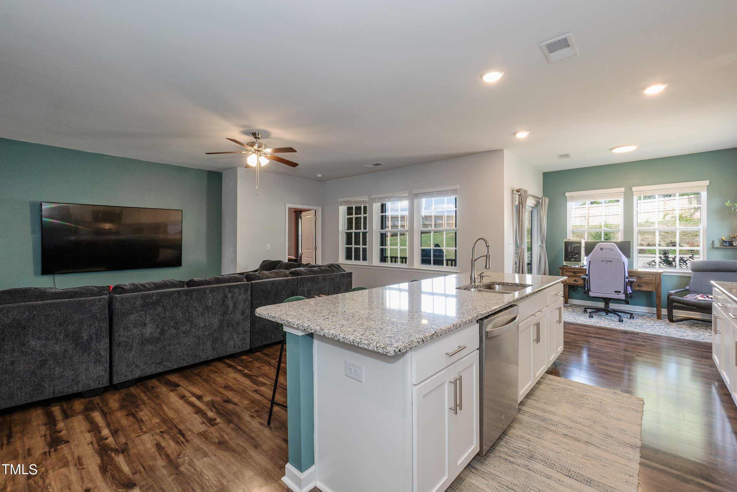 The open floor plan is an entertainers dream with plenty of space for family and friends. The kitchen boasts an oversized granite island that would make any chef jealous. High quality engineered flooring throughout, tasteful finishes, and plenty of natural light create the most inviting atmosphere.