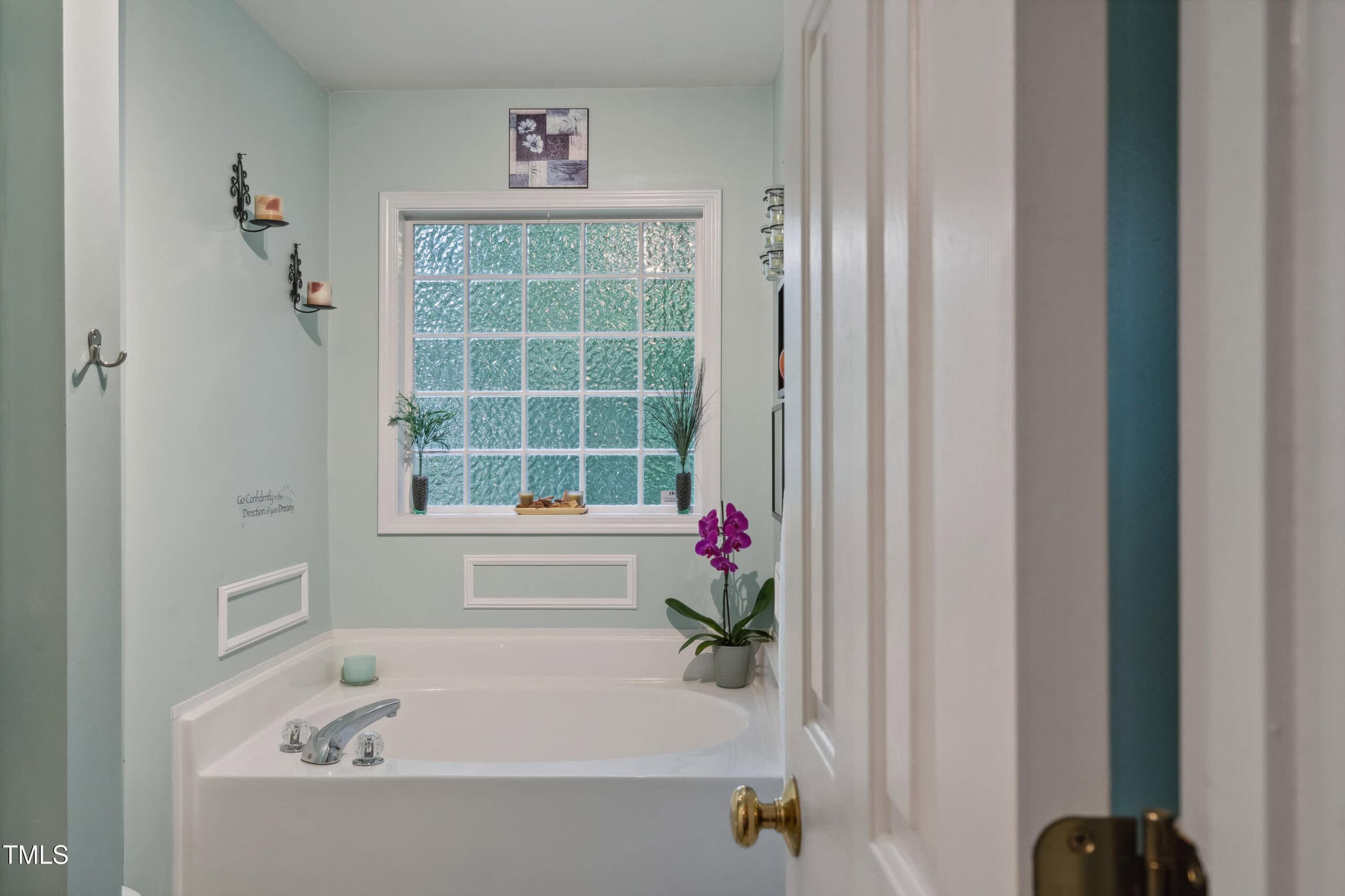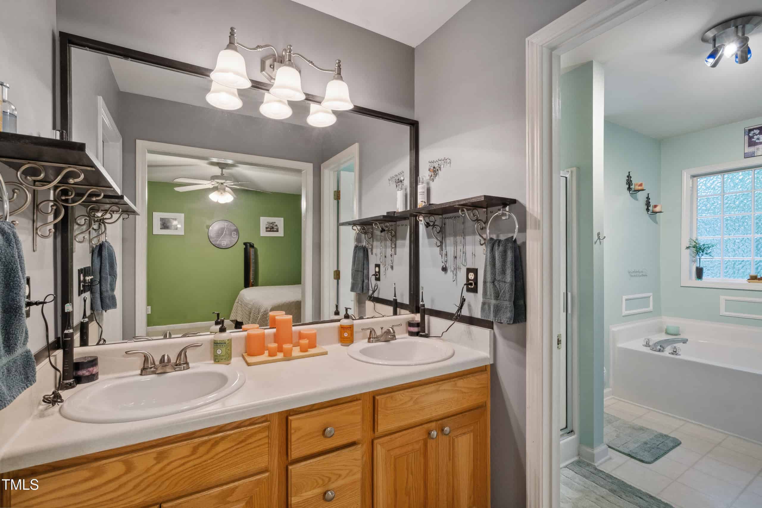 The primary suite includes a walk-in closet and the bathroom has dual vanities and a deep soaking tub. Two additional bedrooms are perfect for guests or a growing family.