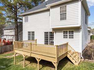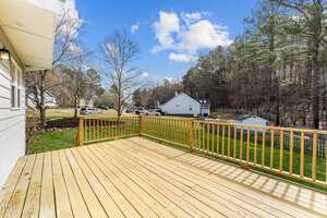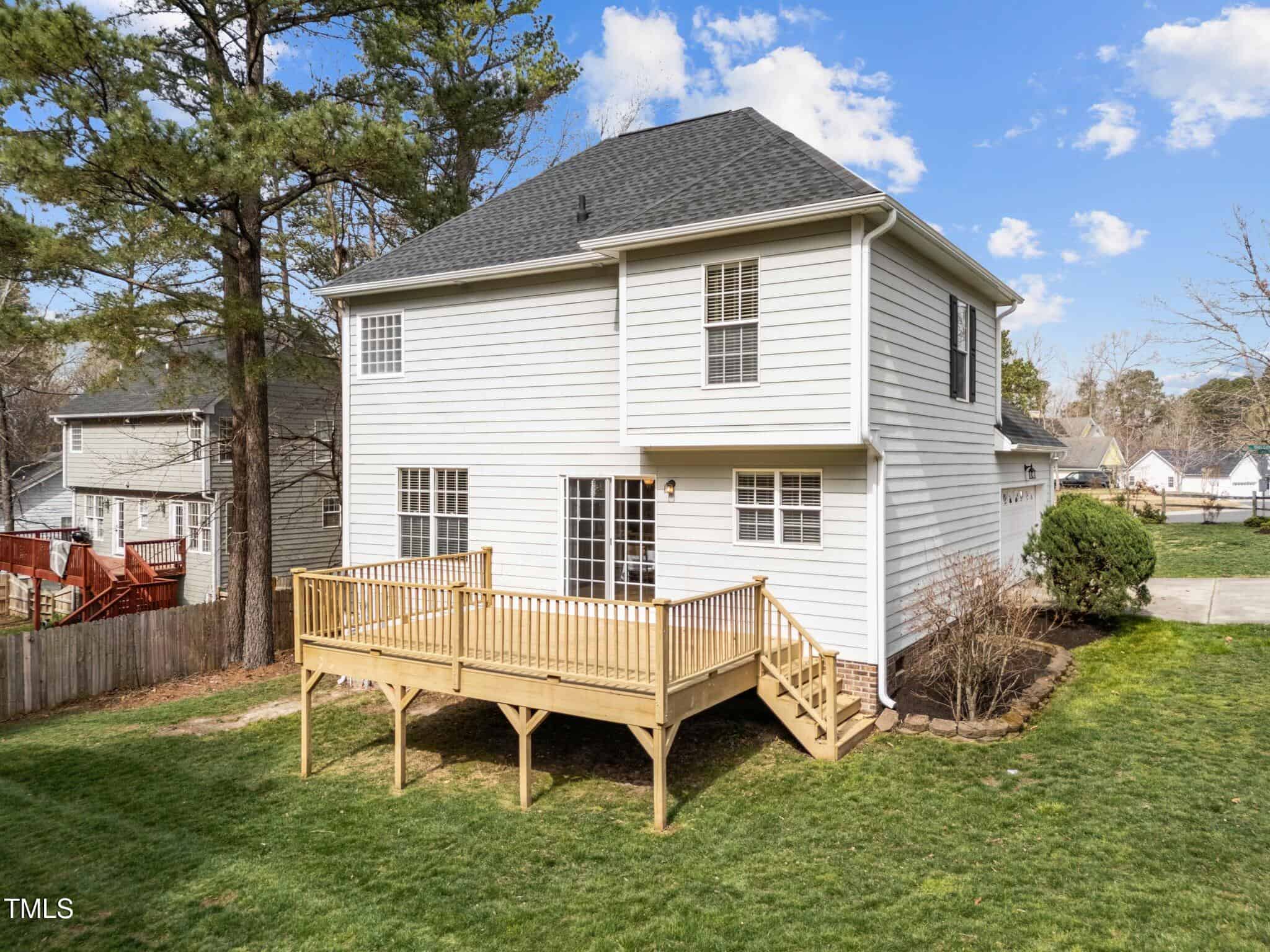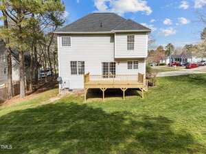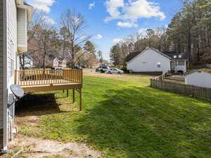 Charming 3-Bedroom Home on a spacious corner lot with a side yard garage. Easy Commute to Raleigh, Durham and Wake Forest. This inviting 3-bedroom, 2.5-bath, single-family home, offers 1,447 sq. ft. of thoughtfully designed living space. This home features a beautiful yard with a large deck, perfect for relaxing or entertaining. Recent Upgrades: Roof (2020), water heater (2020), HVAC (2021) for your peace of mind. Open living areas with ample natural light. Enjoy the well-maintained yard and Hardy Plank Siding. Master bath has a large soaker tub with a separate shower and large closet. Close to a pond, park, and baseball field. Low HOA Fee – Affordable living in a desirable neighborhood. This home is a fantastic opportunity for those seeking comfort, convenience, and charm. Great neighborhood for walking. Schedule a showing today!