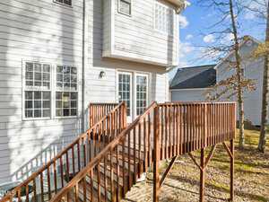 Boasting lovely views of a private pond from the backyard, this property offers a serene escape. The well-maintained interior features a spacious living room, complete with a marble fireplace and elegant French doors leading to the deck. The kitchen boasts a cozy breakfast area and large pantry while the dining room is enhanced by hardwood flooring, chair rail and crown moldings.