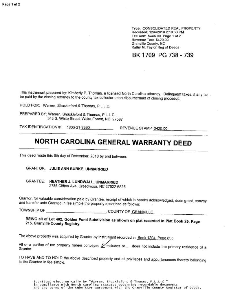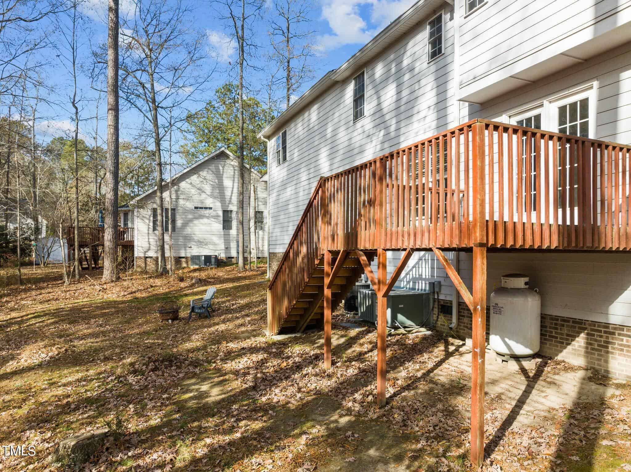 Nestled in the coveted Golden Pond subdivision of Creedmoor, just 30 minutes from Raleigh, this exquisite 3-bedroom home is a rare gem that will NOT LAST LONG! Boasting lovely views of a private pond from the backyard, this property offers a serene escape. The well-maintained interior features a spacious living room, complete with a marble fireplace and elegant French doors leading to the deck. The kitchen boasts a cozy breakfast area and large pantry while the dining room is enhanced by hardwood flooring, chair rail and crown moldings. Upstairs, the expansive primary suite features a vaulted ceiling and walk-in closet. The en-suite bathroom boasts separate vanities, corner garden tub and separate shower. The spacious bonus room offers endless possibilities. Beautiful array of surrounding flora includes rhododendrons, lilacs, azaleas, hydrangeas, lavendar, irises, gardenias, crape myrtles and mimosas.