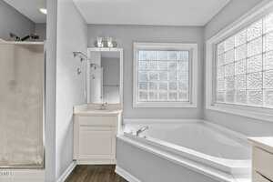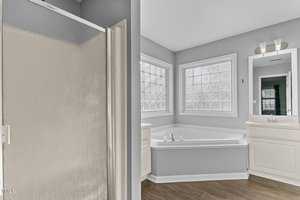 Upstairs, the expansive primary suite features a vaulted ceiling and walk-in closet. The en-suite bathroom boasts separate vanities, corner garden tub and separate shower. The spacious bonus room offers endless possibilities. Beautiful array of surrounding flora includes rhododendrons, lilacs, azaleas, hydrangeas, lavendar, irises, gardenias, crape myrtles and mimosas.