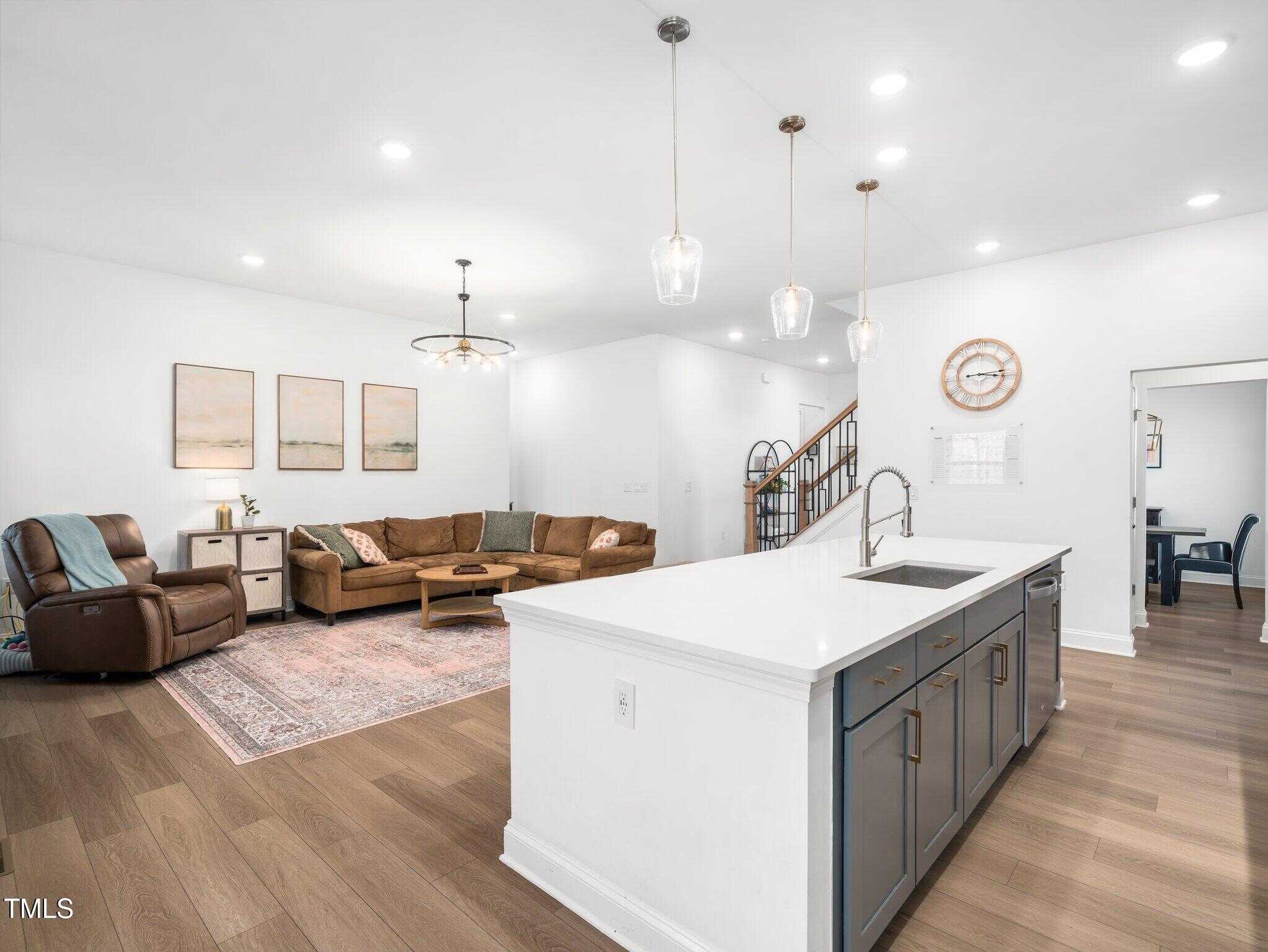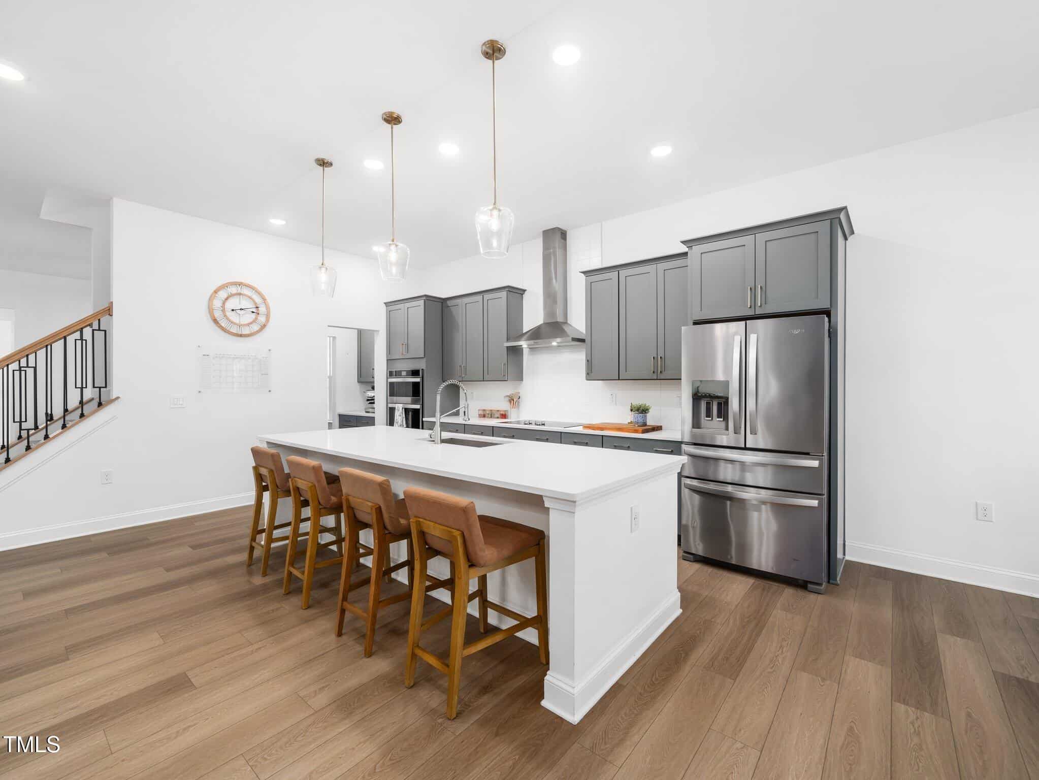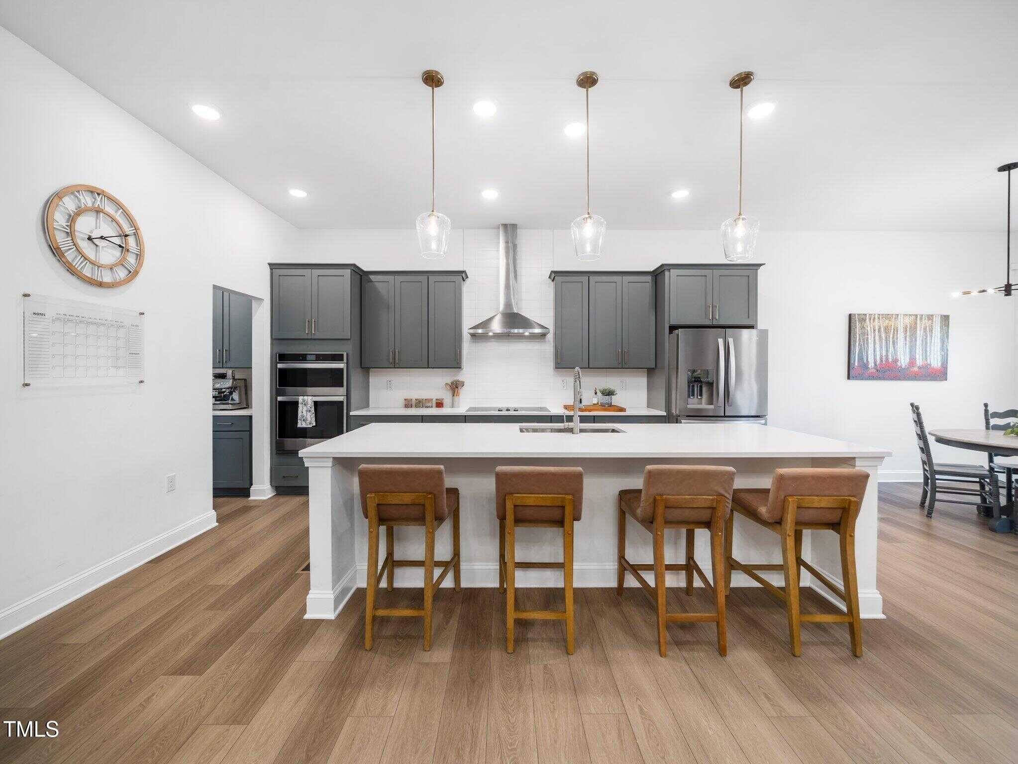 The open floor plan you’ve been looking for includes an inviting family room with a cozy gas fireplace and a spacious kitchen with miles of quartz countertops, making meal preparation and serving a breeze. A butler’s pantry passes through to the formal dining room, perfect for dinner parties or small gatherings.