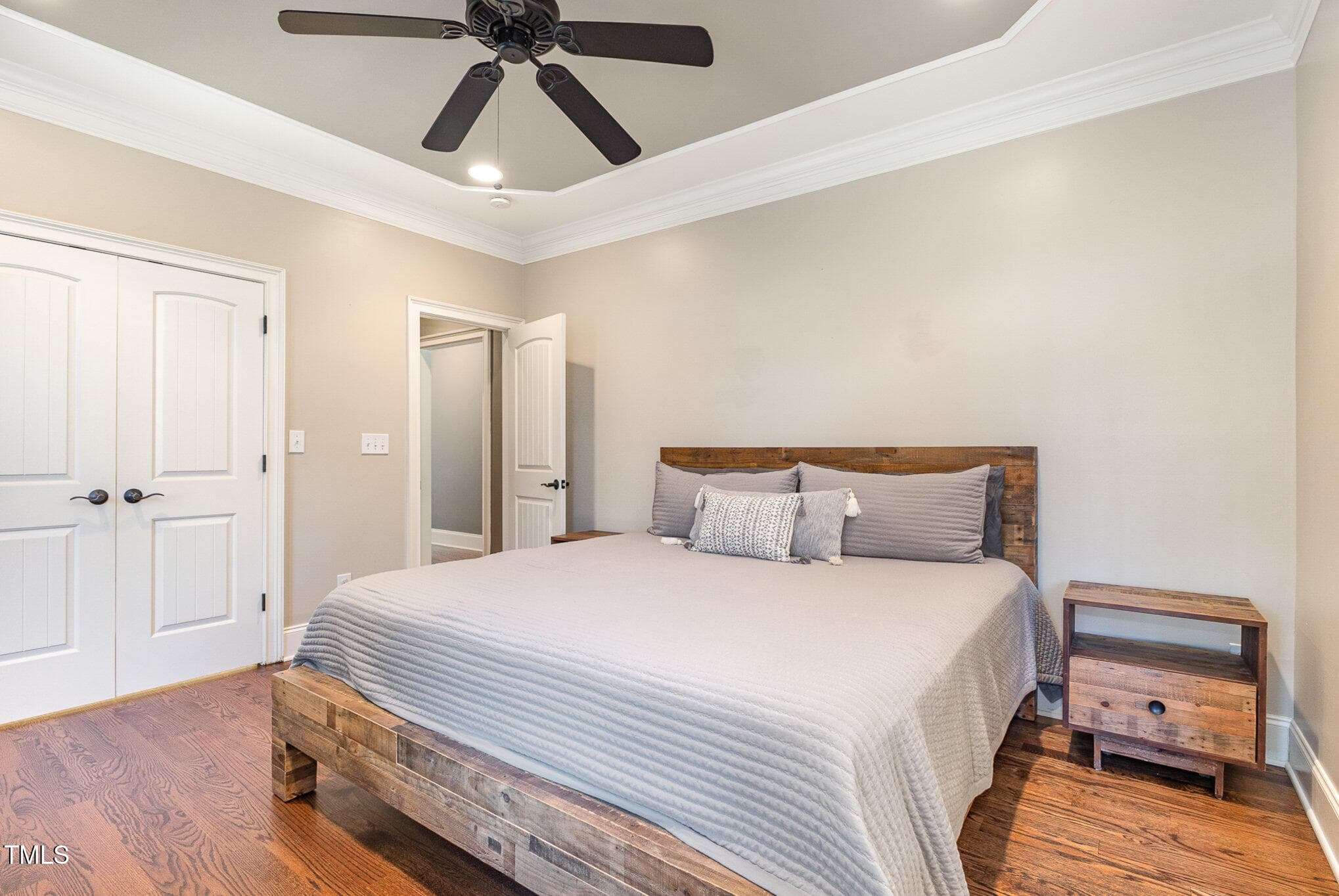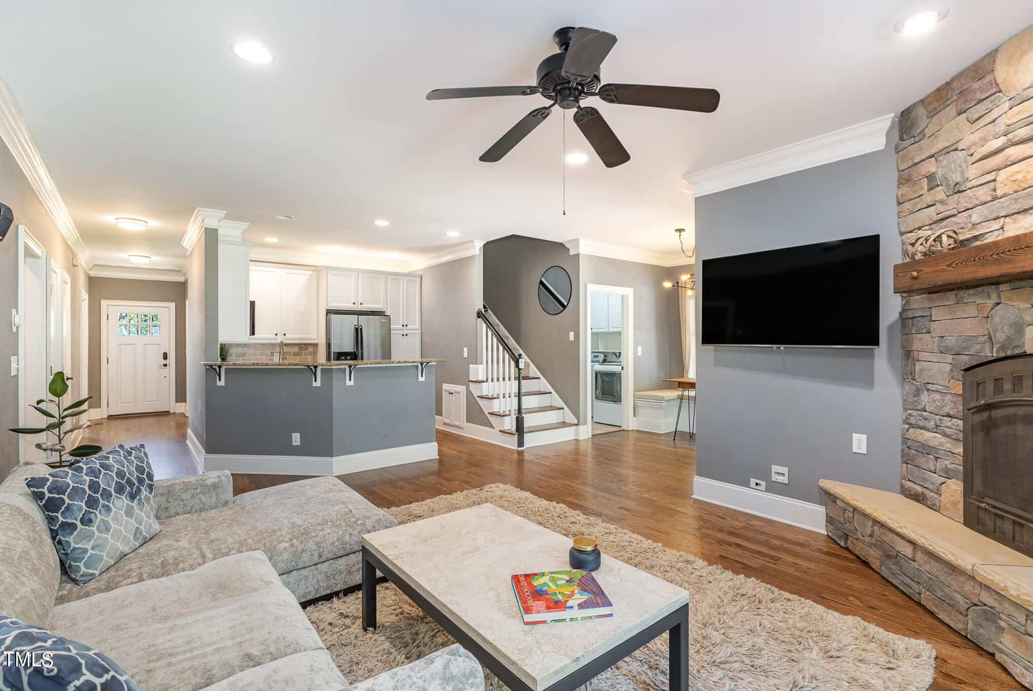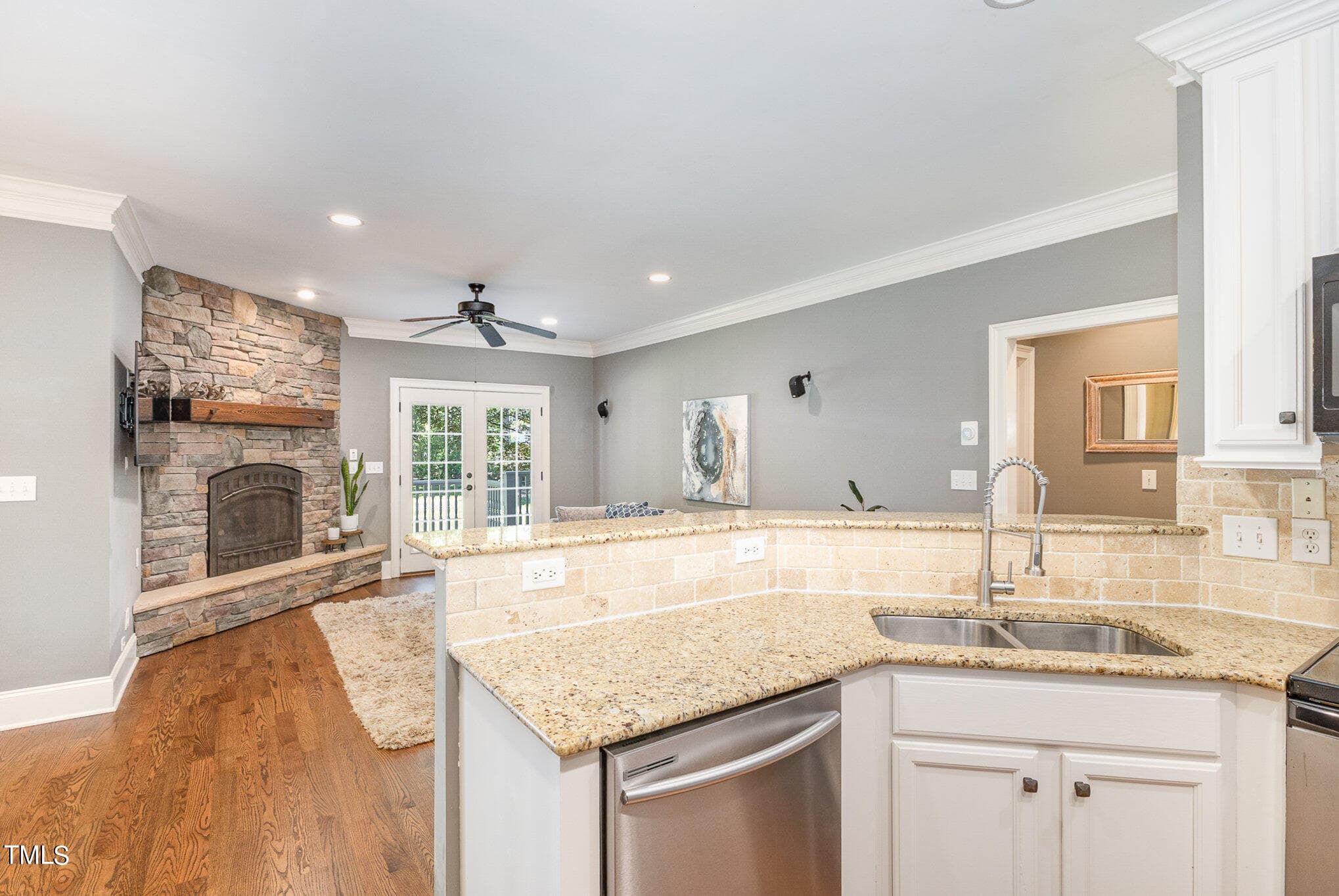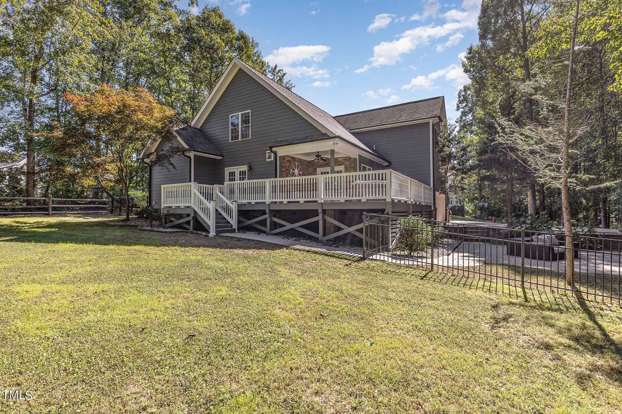 Stunning, move in ready RANCH style home on dead end street. Located in Youngsville, yet just east of Wake Forest. FRESHLY PAINTED Inside AND out! NEWLY REFINISHED HDWDS. Open Floor plan. Formal Dining Room w/French Doors. FIRST FLOOR PRIMARY SUITE w/Dual vanity, soaking tub, and separate shower. Stone Fireplace in Family Room. Kitchen with GRANITE counters and SS appls, except NEW black microwave. 1/2 story upstairs has possible 4th BR/Office/Man cave and HUGE BONUS room, PLUS loads of Storage! Outside, you’ll find: A landscaped, Flat lot; FENCED back yard; STONE FIREPLACE and PATIO; Nice sized DECK; Side load, 2 car GARAGE. Sellers are willing to do a 60 day close to allow time for the predicted Fed interest rate cut(s) to occur, so Buyers can take advantage!