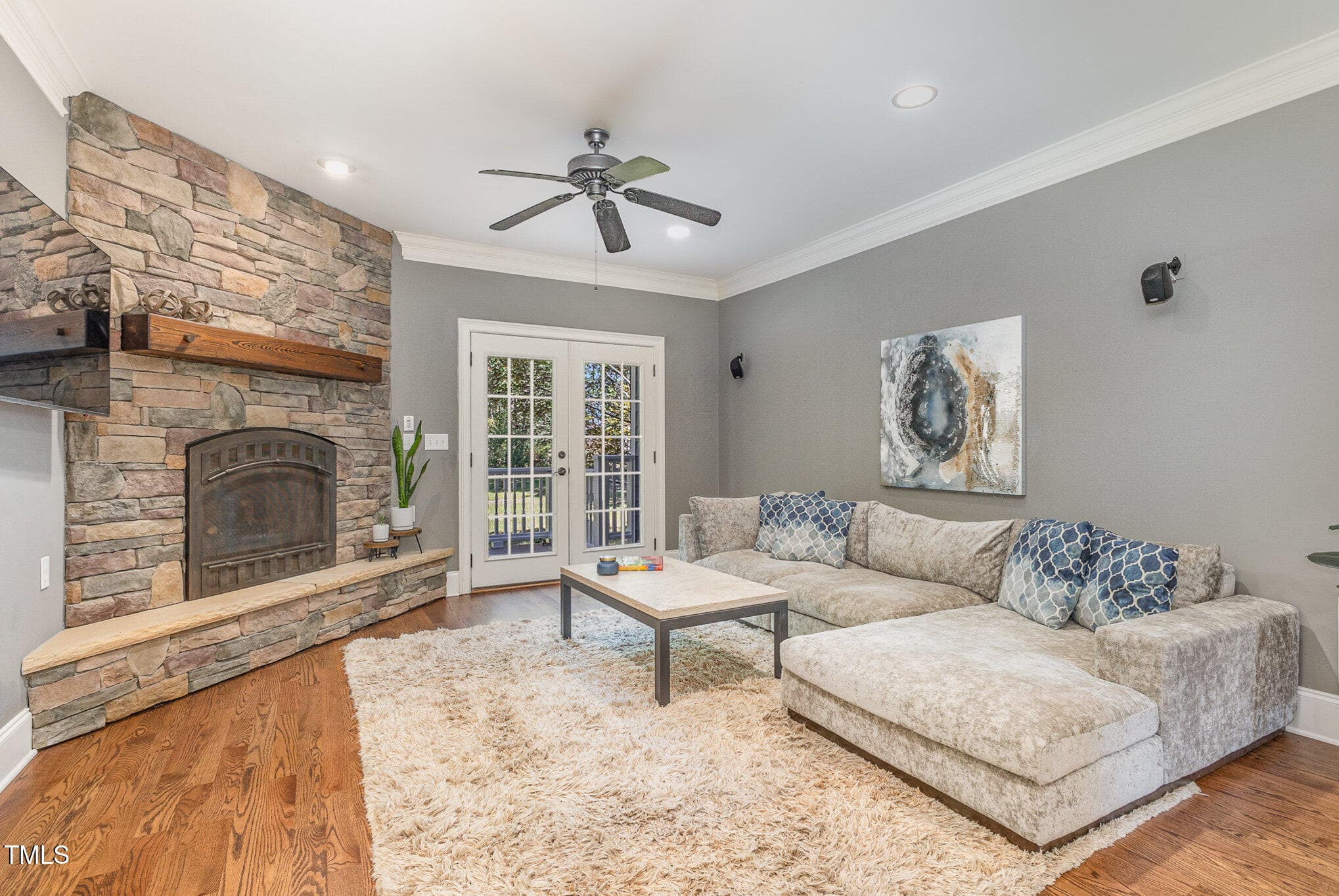 Stunning, move in ready RANCH style home on dead end street. Located in Youngsville, yet just east of Wake Forest. FRESHLY PAINTED Inside AND out! NEWLY REFINISHED HDWDS. Open Floor plan. Formal Dining Room w/French Doors. FIRST FLOOR PRIMARY SUITE w/Dual vanity, soaking tub, and separate shower. Stone Fireplace in Family Room. Kitchen with GRANITE counters and SS appls, except NEW black microwave. 1/2 story upstairs has possible 4th BR/Office/Man cave and HUGE BONUS room, PLUS loads of Storage!