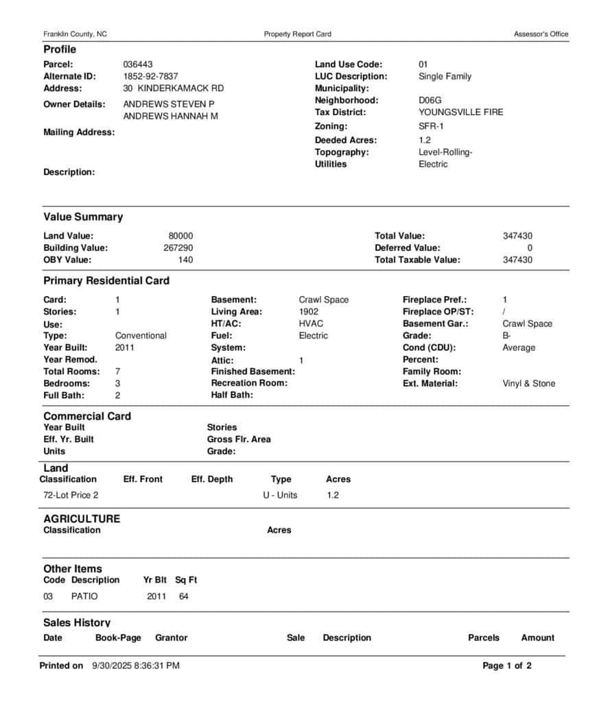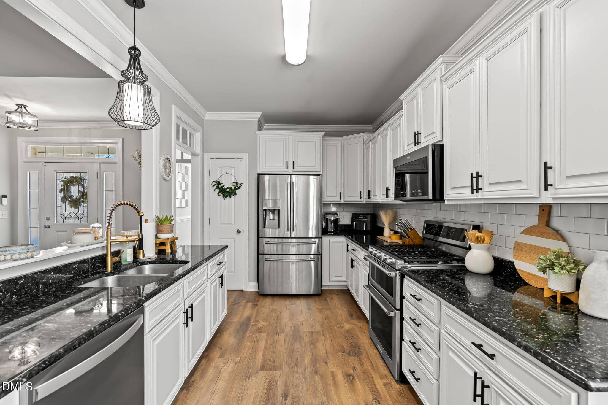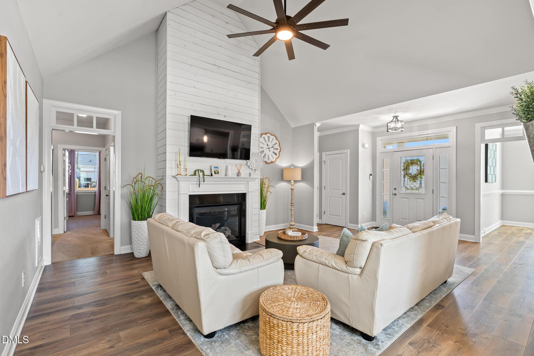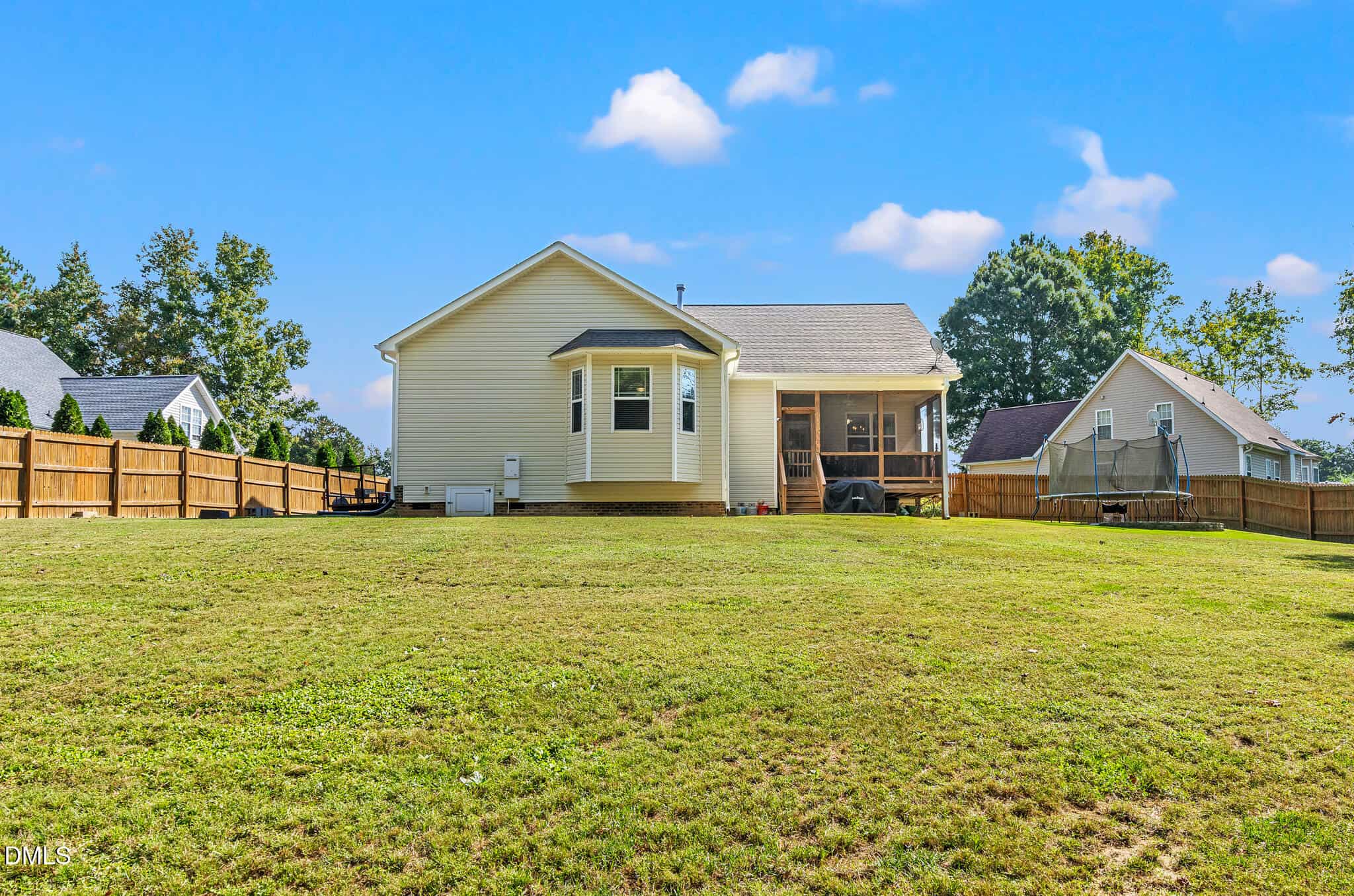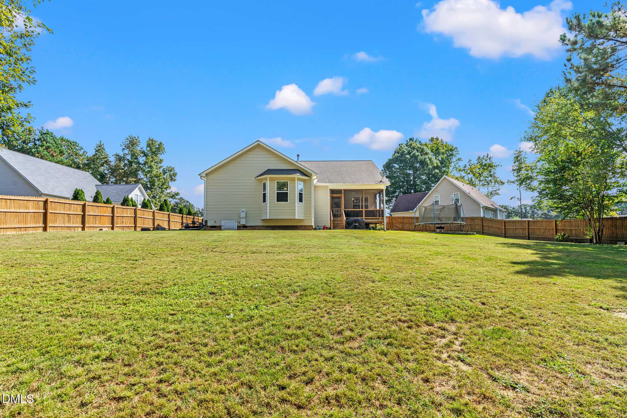 Immaculate 3BR/2BA home on a quiet cul-de-sac just minutes from downtown Youngsville. Kitchen features granite countertops, tile backsplash, and breakfast area. Separate dining room, spacious bonus room, unfinished storage, and 2-car garage. Master suite boasts a tray ceiling, walk-in closet, and bath with soaking tub and shower. Main living areas showcase Mohawk Redwood Plus Laminate flooring, while the living room highlights a shiplap fireplace surround and accent walls in every bedroom. Outdoor living includes a screened porch, grilling pad, fenced backyard, and storage shed.