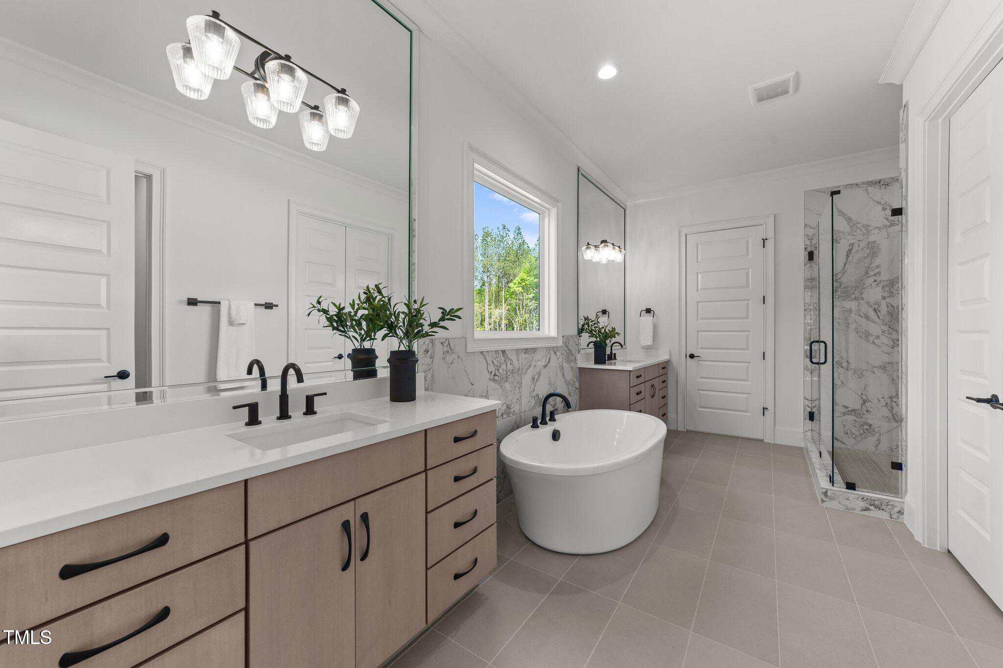 1st Flr Owner’s Suite: w/Trey Ceiling & HWDs! Owner’s Bath: 12×24 Tile Flooring, Freestanding Tub, Spa Style Tile Surround Shower w/Handheld Sprayer, Separate Vanities w/Quartz Tops, Huge WIC & Direct Access to Laundry!