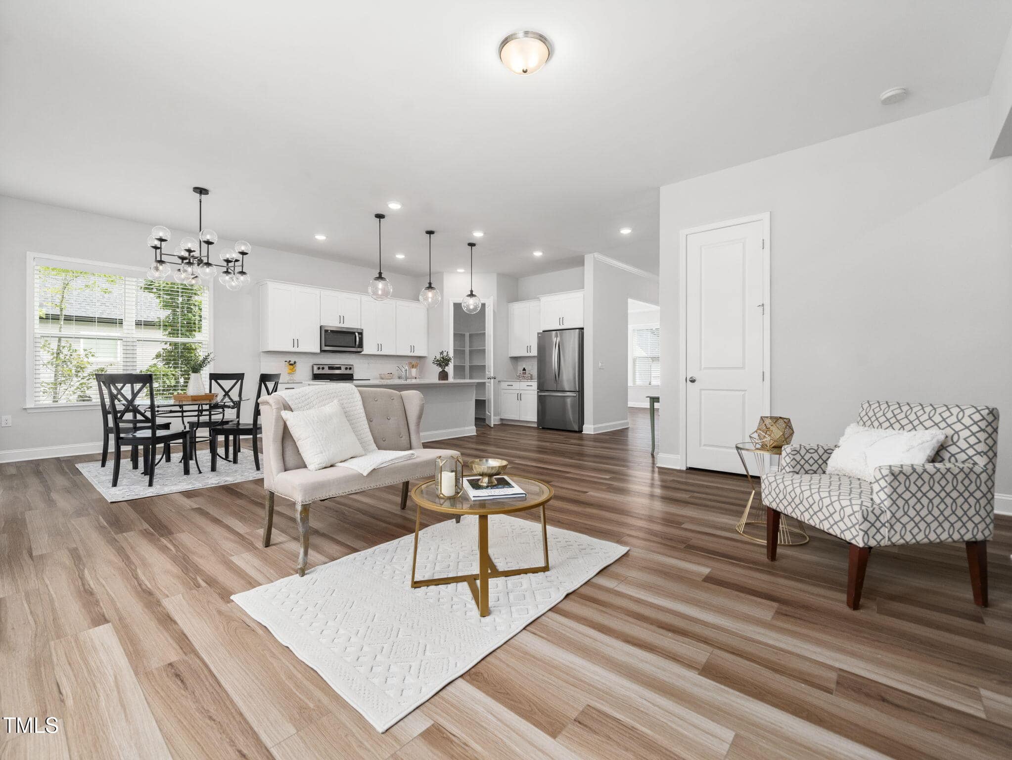 At the heart of the home, the modern kitchen is a dream for cooks and entertainers alike. Enjoy sleek quartz countertops, a walk-in pantry, smooth-surface cooktop, and stylish fixtures throughout. The kitchen flows effortlessly into the living and dining spaces, creating a welcoming area for friends and family to gather.