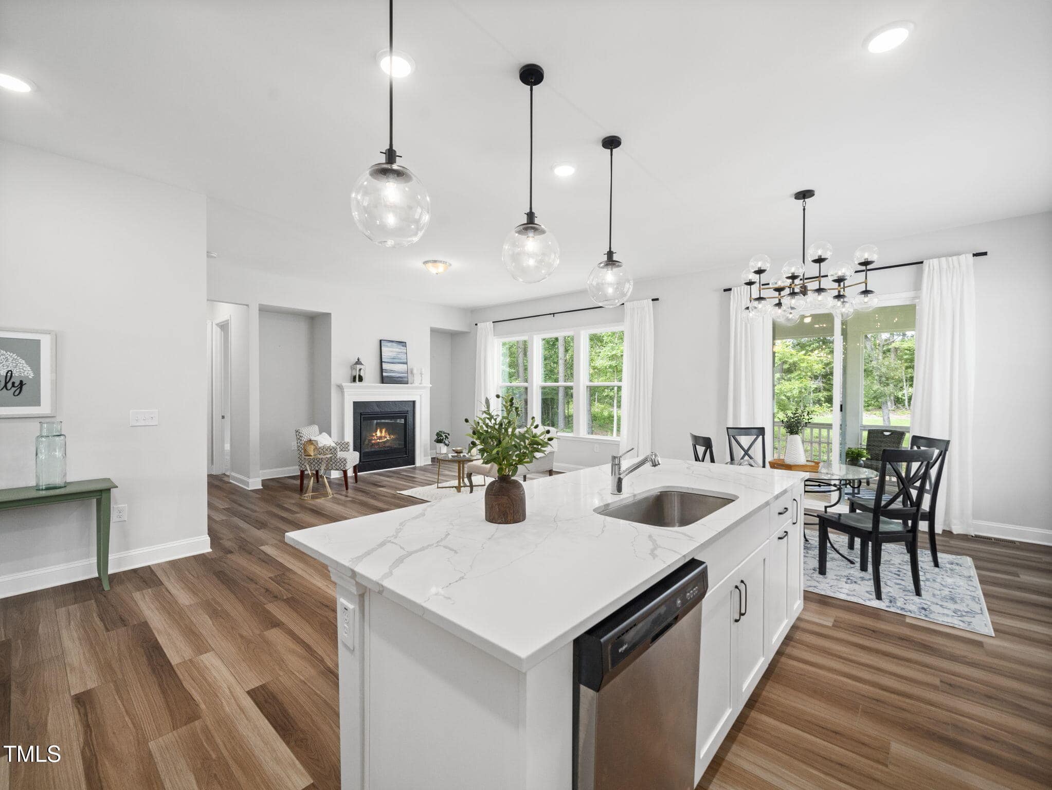 Step inside and be greeted by soaring 10-foot ceilings and an expansive open floor plan that seamlessly blends elegance and functionality. The large formal dining room is perfect for holiday gatherings and family dinners, while the spacious living room, anchored by a cozy gas log fireplace, invites you to relax and unwind.