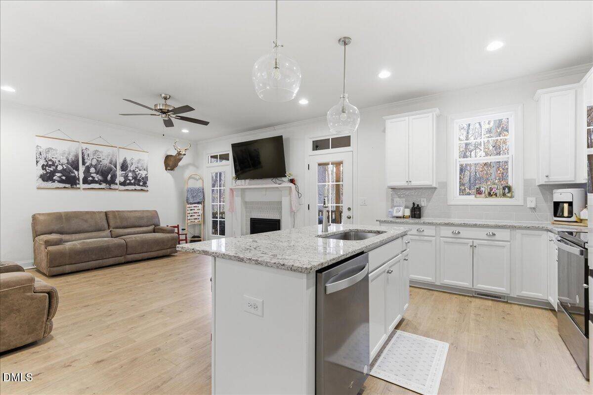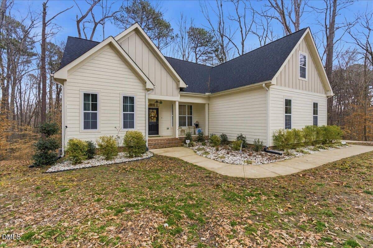 Private 1.5 Story Home on 7.4 Acres If you’ve been searching for a modern home with land, privacy, and easy maintenance in a peaceful setting, this is it. Situated on 7.4 acres, this inviting 1.5-story home offers the perfect blend of open-concept living and functional design. The layout is thoughtfully designed for everyday comfort, with the primary suite on the main level along with two additional bedrooms and a convenient laundry/mud room that connects directly to the two-car garage. The open kitchen flows seamlessly into the dining area and family room, creating a bright, welcoming space ideal for entertaining or quiet evenings at home. Granite countertops, durable LVP flooring in the main living areas, and a clean interior design give the home a modern, low-maintenance luxury feel. Upstairs provides additional flexible space, perfect for a bonus room, home office, or guest retreat. Enjoy a serene, private setting backing up to the Tar River buffer, offering natural beauty and added privacy. With lower property taxes and room to breathe, this home delivers the lifestyle buyers are actively searching for: land, space, and simplicity. Move-in ready. Easy to maintain. Designed for comfort. If you’re looking for a home with acreage near the Tar River, main-level living, and modern finishes, schedule your showing today.