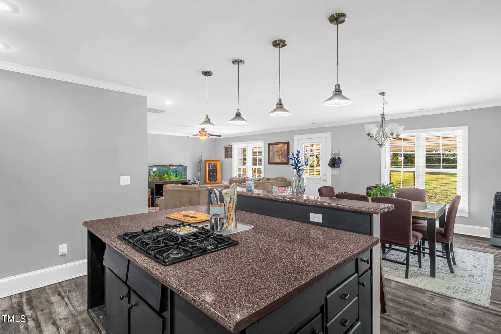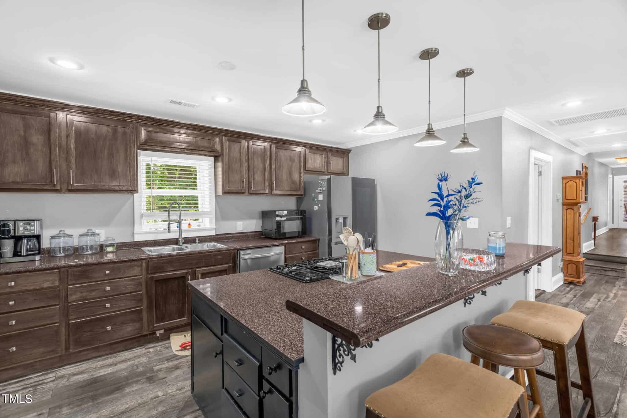 Once you pull in the driveway, you have the feeling a seclusion and privacy. Enjoy walking outside and admiring the beautifully landscaped yard. Once inside, you’ll notice the amount of open space you have to entertain guest and family. The kitchen has a huge island with a gas range, perfect for cooking those big family meals. Admire the luxury flooring, dark wood cabinetry, and plenty of storage.
