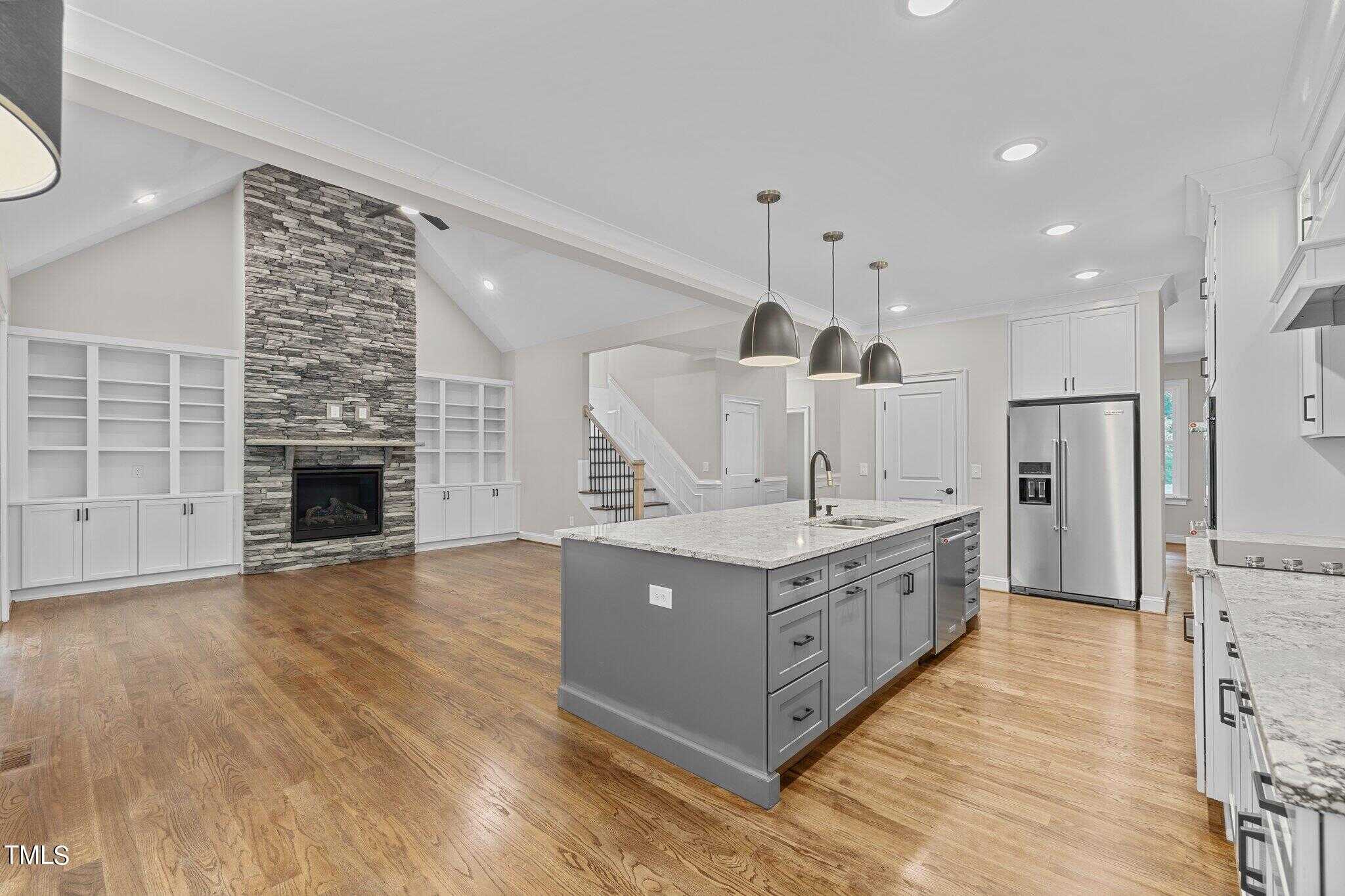 The floors are real hardwood, gorgeous kitchen, huge loft upstairs, a 1700 SF basement ready to be finished, landscape lighting, and much more! Hidden Lake offers walking trails, community club house, a community boat dock, outdoor areas for relaxing and enjoying the beautiful NC weather, kayaks, and a look out overlooking the water.