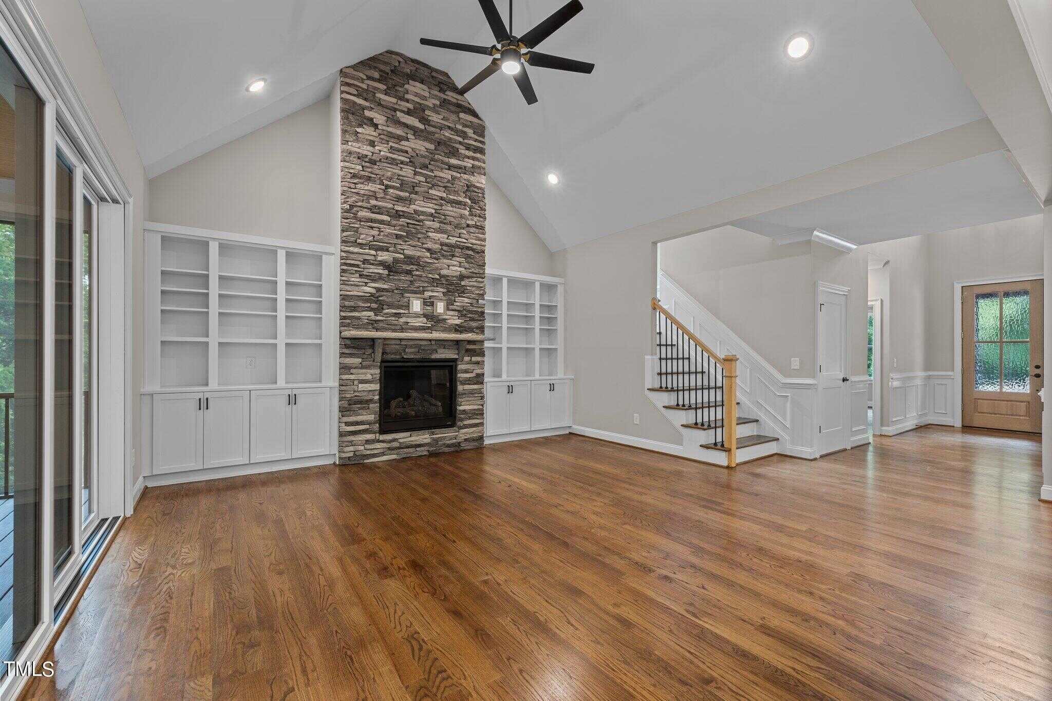 Beautiful custom-built home on 3 acres in desirable Hidden Lake. The builder put many special features into the home. Fujitsu 18 SEER ducted mini split system with high static ducted air handlers. This will greatly reduce the electric bill! The builder had the home professionally landscaped with timed irrigation system, Massive 54×12 Trex Deck, 18×12 screened in deck, and another upper deck all of them Trex! The floors are real hardwood, gorgeous kitchen, huge loft upstairs, a 1700 SF basement ready to be finished, landscape lighting, and much more! Hidden Lake offers walking trails, community club house, a community boat dock, outdoor areas for relaxing and enjoying the beautiful NC weather, kayaks, and a look out overlooking the water. ***Update the Basement is being finished! The basement adds 1700 Heated SF and will include a second laundry room***** The beautiful basement will open up to the back yard which is wooded and gorgeous. Estimated completion of the basement is End of October.