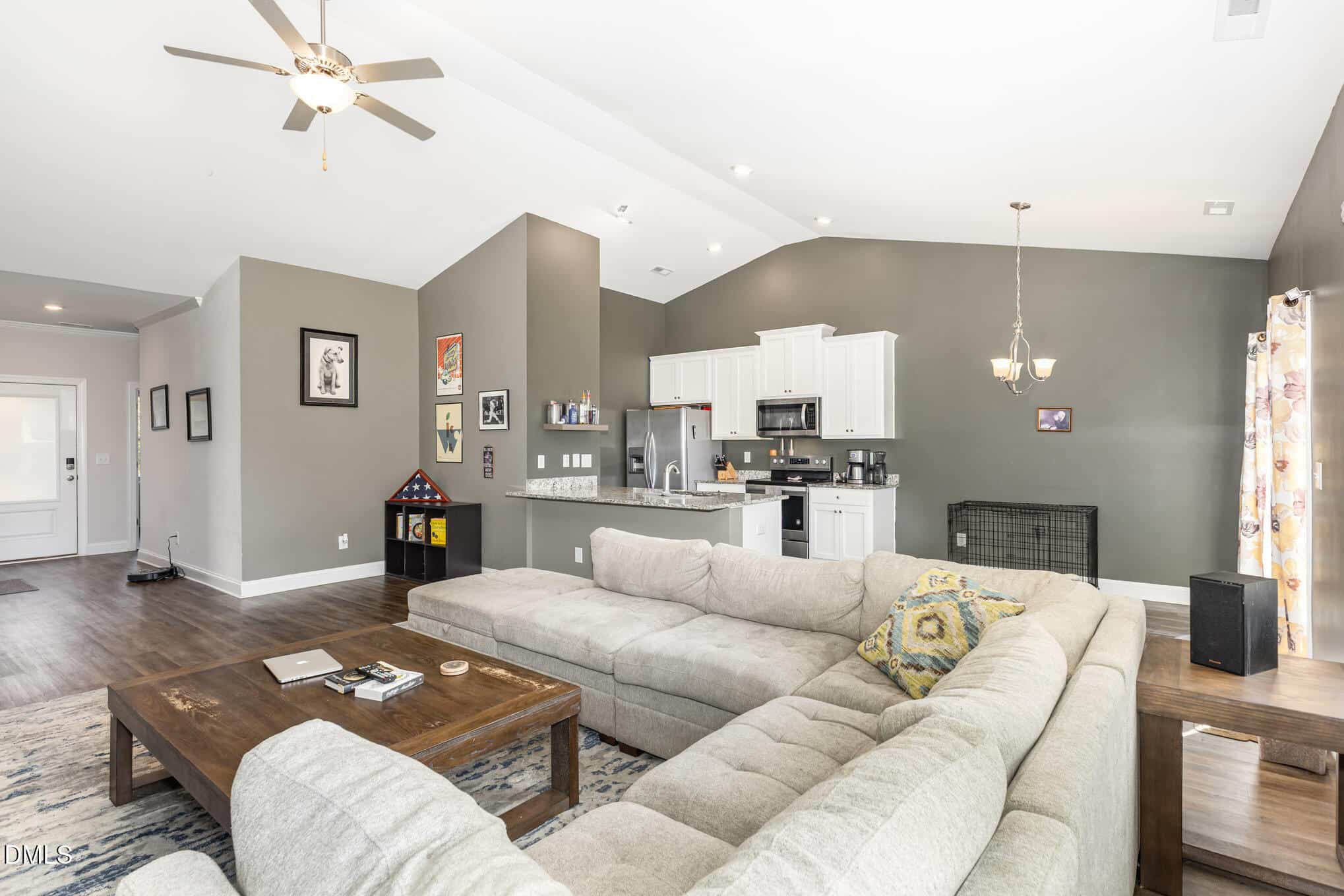 The spacious kitchen flows seamlessly into the dining and living areas, creating a warm and welcoming atmosphere. The primary suite features a private bath, while two additional bedrooms offer flexibility for family, guests, or a home office.