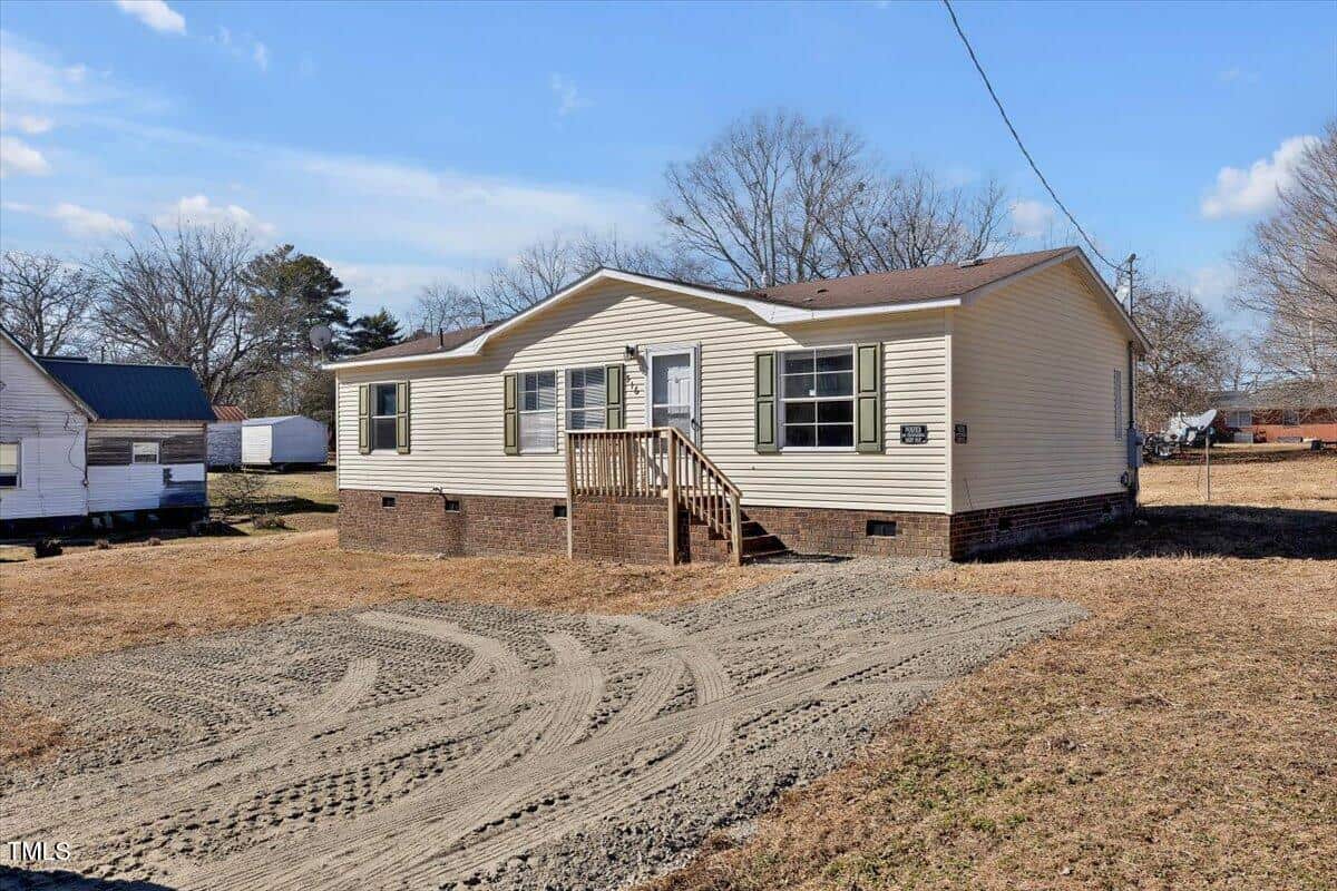 Great starter home or investor opportunity in a fantastic downtown Franklinton location. This one-level home is both spacious and charming, offering 3 bedrooms, 2 baths, a bright living room, and an inviting eat-in kitchen. The well-designed layout makes the most of every square foot, providing a comfortable and functional space for everyday living. The kitchen offers ample storage and all appliances convey, making it move-in ready. The primary bathroom features dual vanities, a tub, and a shower, adding convenience and style. Each bedroom is generously sized with plenty of closet space, giving you the storage you need without sacrificing room to move. The home also boasts a brand-new driveway with a parking pad, providing ample off-street parking. With great curb appeal and undeniable cuteness, this home is perfect for a first-time buyer, downsizer, or investor looking for a rental property with solid amenities. Conveniently located near shopping, schools, and US-1 for an easy commute. Downtown Franklinton offers small-town charm with local markets and convenient grocery stores. Just 30 miles to Downtown Durham (about 35 minutes), 32 miles to Downtown Raleigh (about 40 minutes), and approximately 36 miles to RDU Airport (about 40 minutes), making it an ideal spot for those needing quick access to major city centers while enjoying a quieter setting.