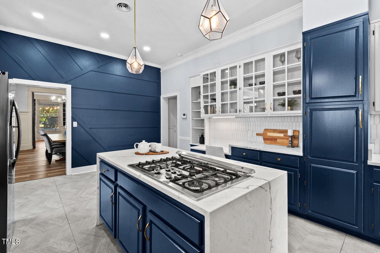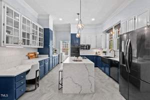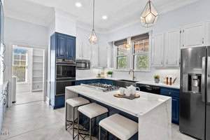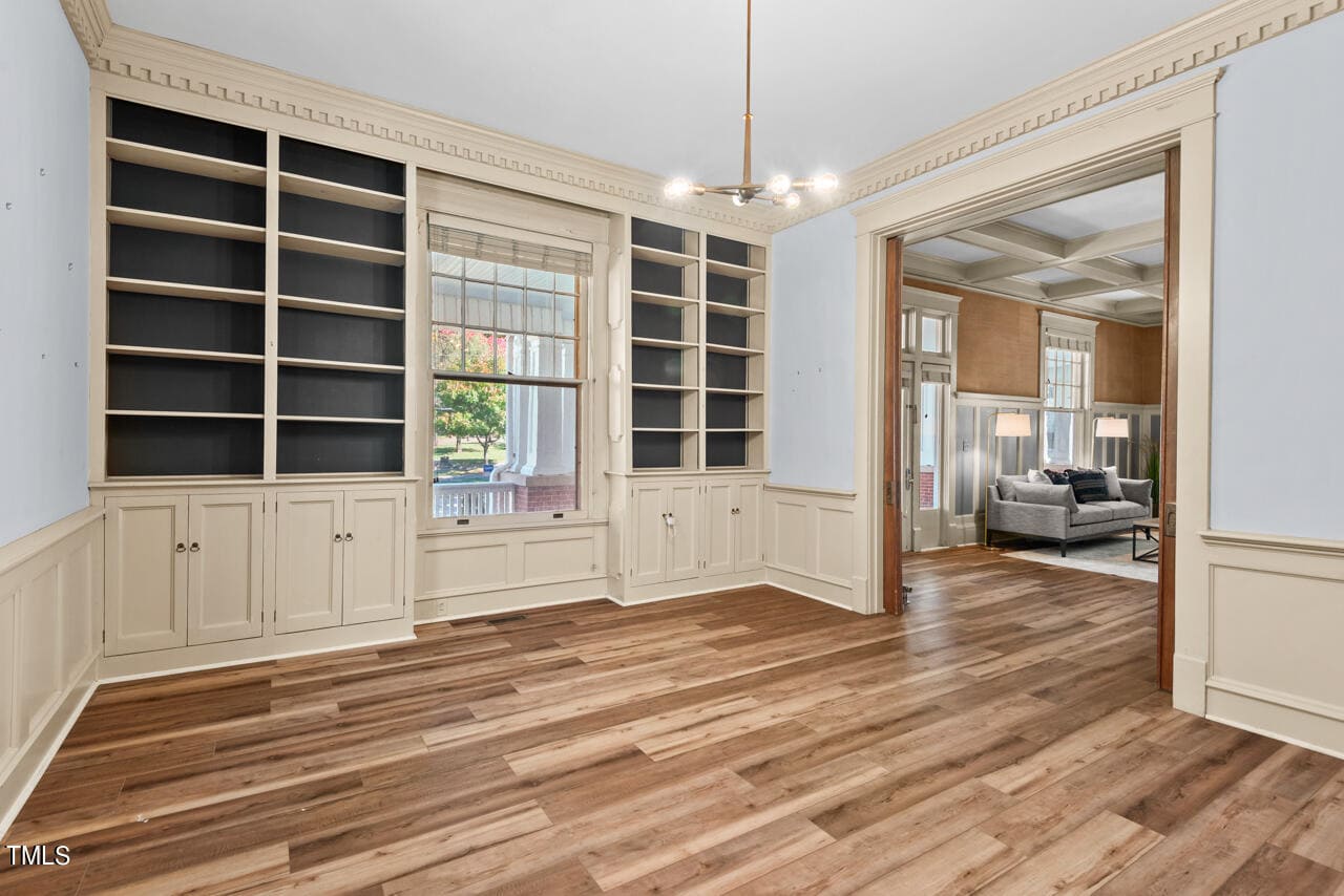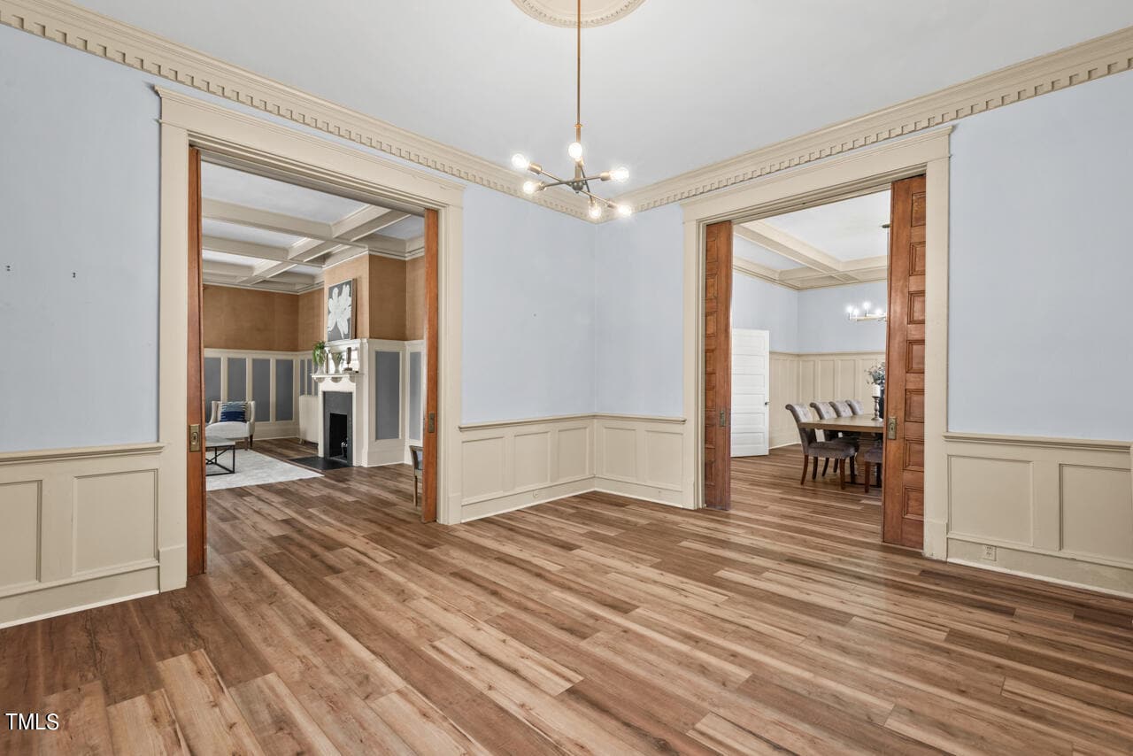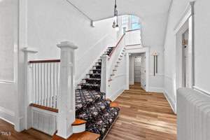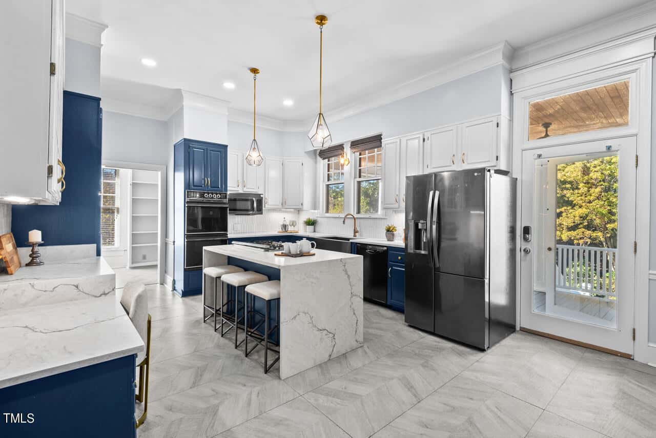 As you approach the home, you’ll be greeted by a huge wrap-around porch, an inviting space to relax and enjoy the charming neighborhood. Step inside to discover stunning 12-inch coffered ceilings in the dining room, adding a touch of elegance to your dining experiences.