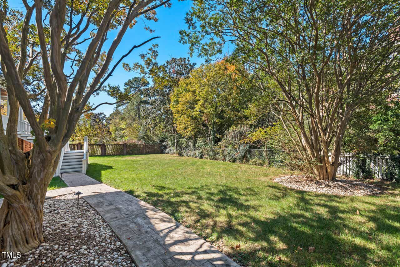 Step outside to enjoy the updated stamped concrete walkway that leads from the parking area to the backyard, making outdoor gatherings easy and accessible. The landscape lighting highlights the beautifully maintained sod and fenced backyard, ensuring privacy and a great space for outdoor activities.