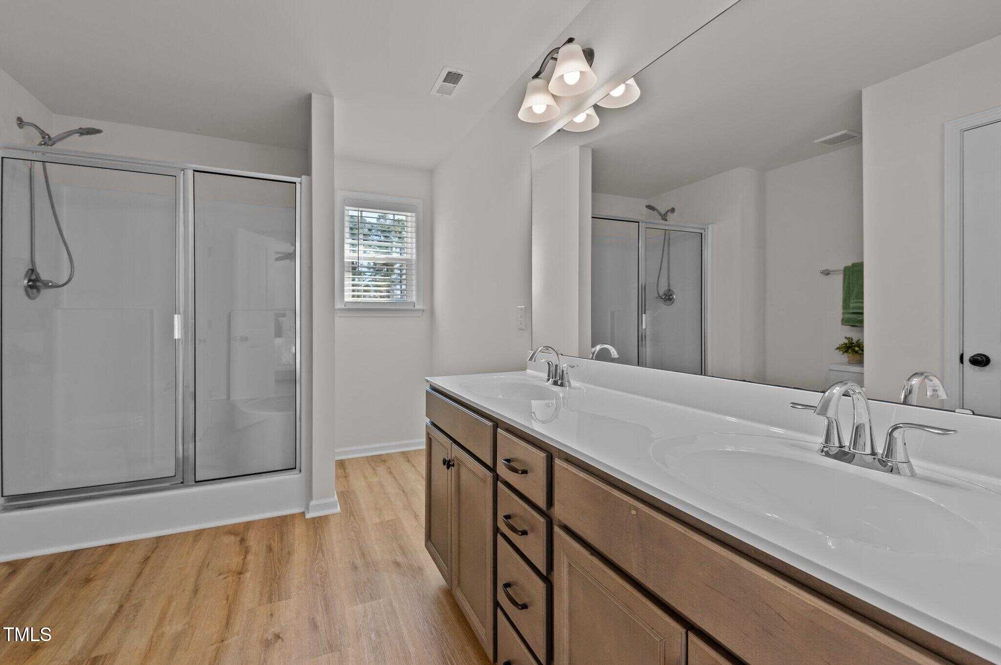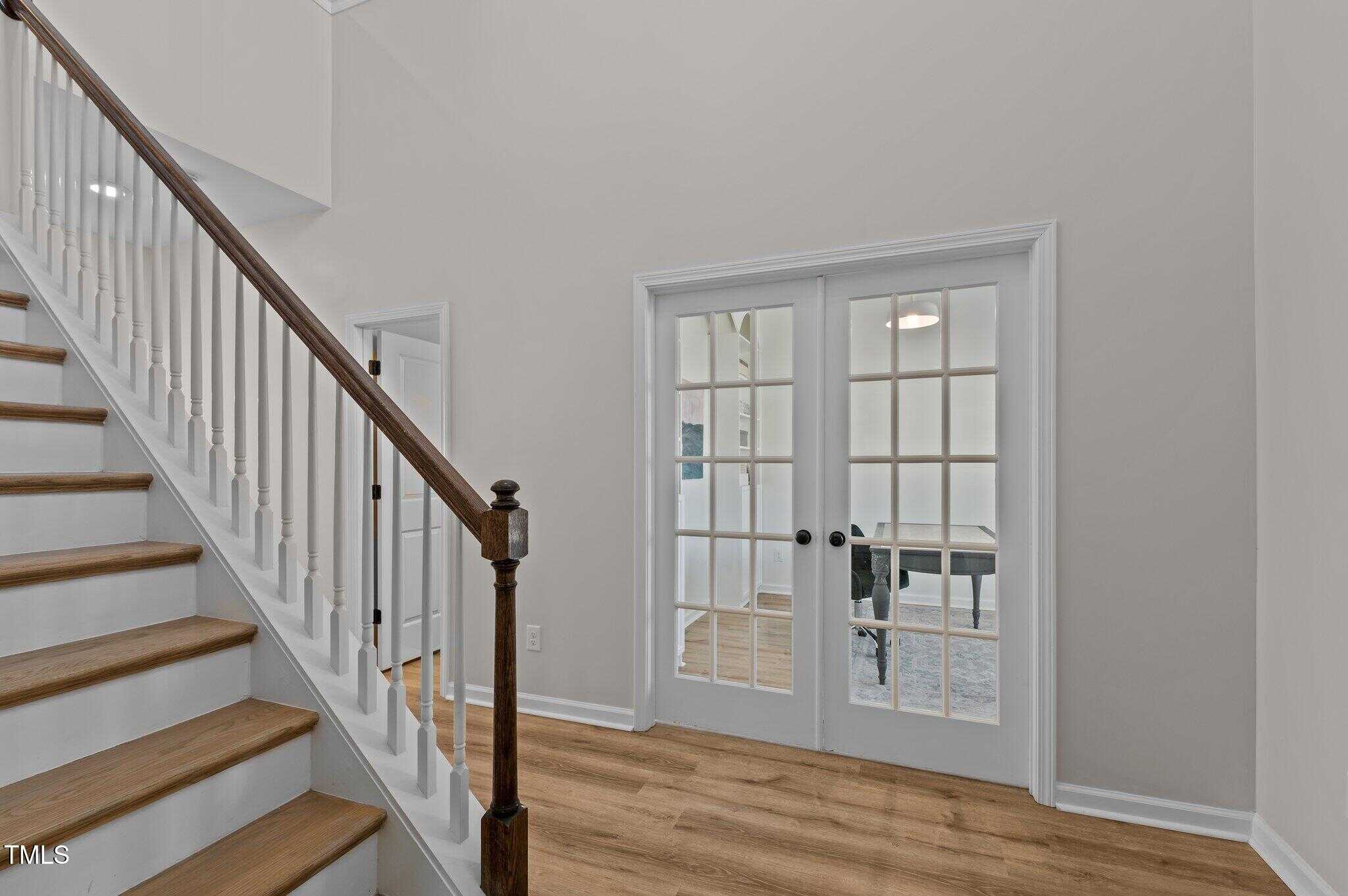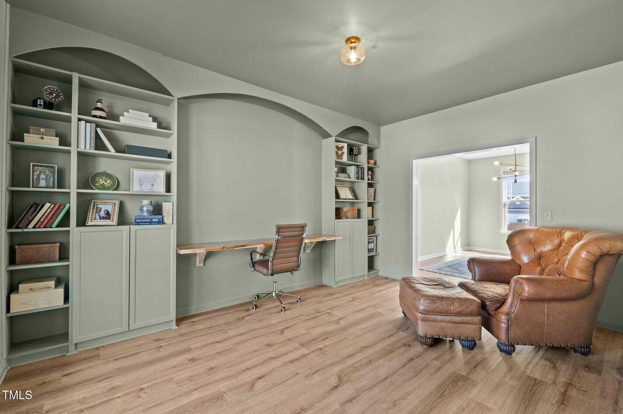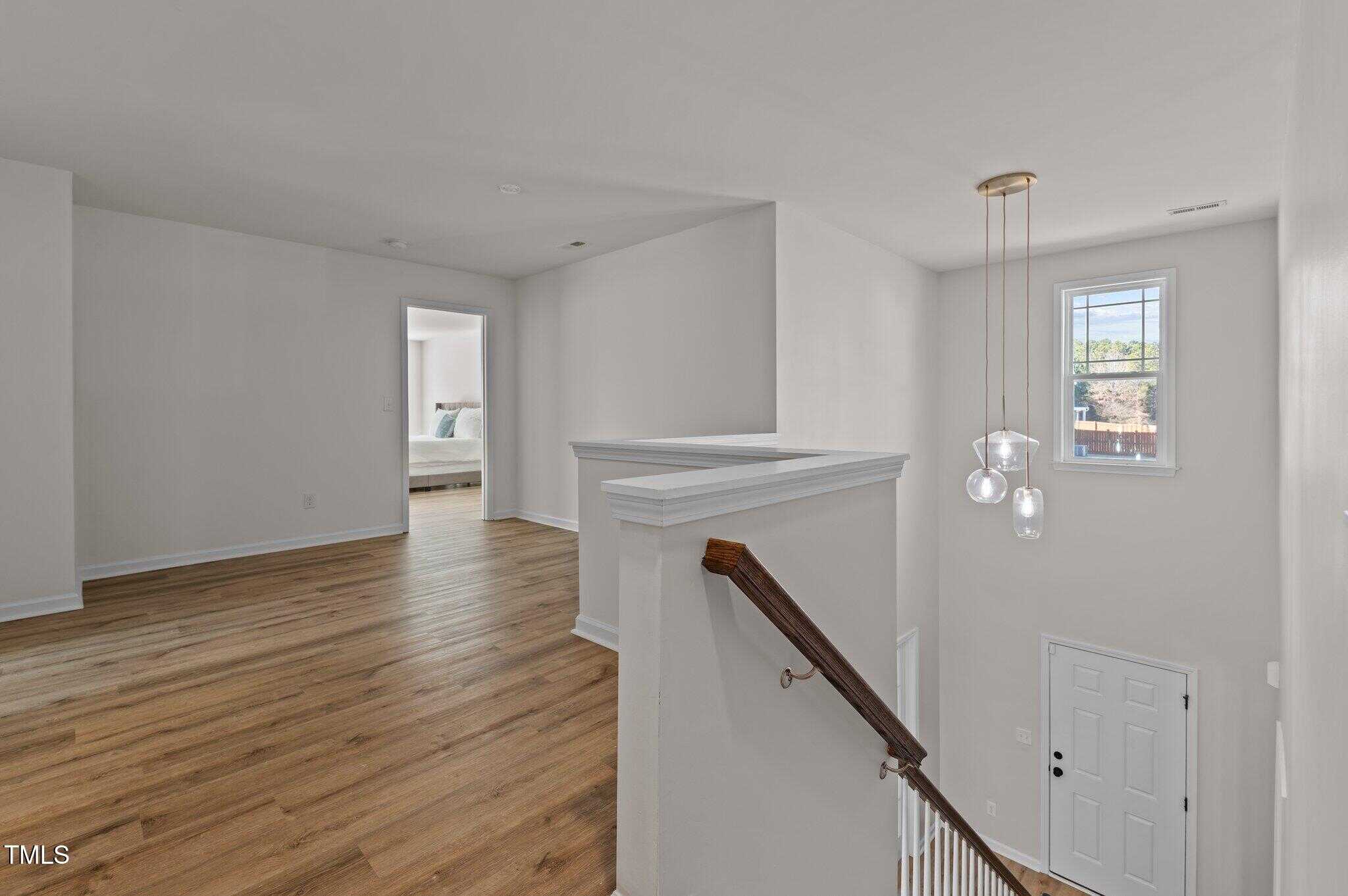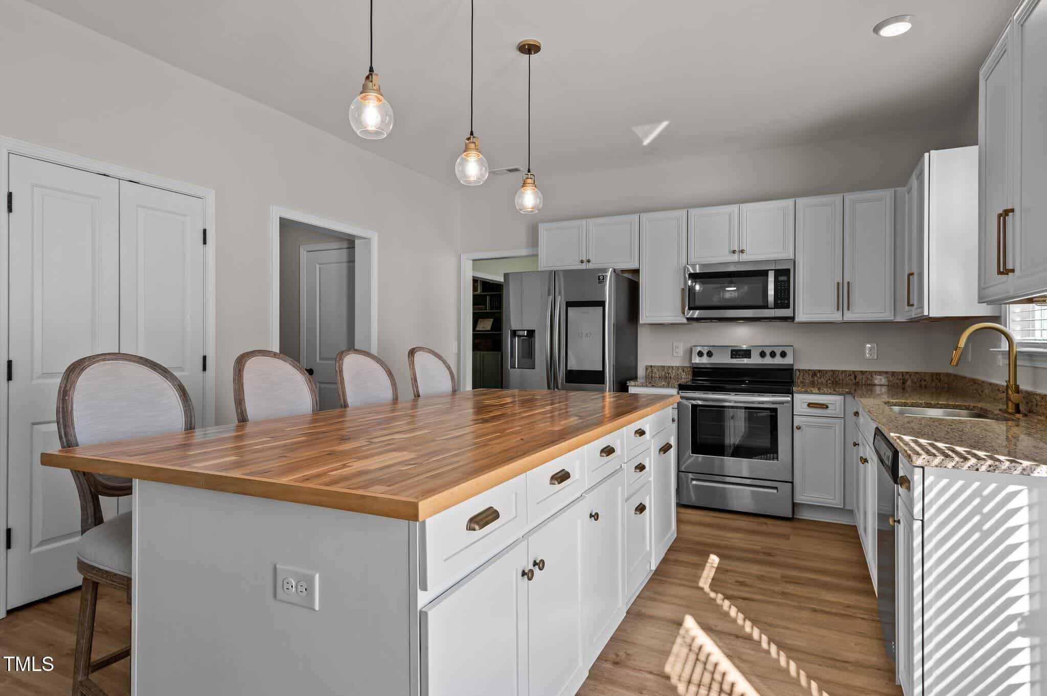 This is the One! Gorgeous, better-than-new two-story home located on a large flat corner lot with amazing curb appeal! The home is meticulously maintained and offers a huge fenced rear yard, perfect for outdoor activities or relaxation. Enjoy the extended driveway and oversized walk-out patio in the back. The charming front porch offers the perfect space to unwind and enjoy your peaceful surroundings. Situated next to a cul-de-sac, this home is also part of a walkable, family-friendly neighborhood. Step inside and be greeted by a spacious vaulted foyer entry, setting the tone for the rest of the home. The main level includes two home offices, each featuring brand-new custom-built cabinets and shelving—ideal for remote work or study. A flexible space, currently used as a dining area, provides additional versatility. The heart of the home is the beautifully remodeled kitchen, which includes granite countertops, an oversized butcher block eat-in island, custom cabinetry, and a smart fridge. Do not miss the awesome custom pantry complete with new custom cabinets, shelving and a coffee bar! The kitchen overlooks the large family room, making it perfect for entertaining and there is a walk-out patio as well where you have views of the backyard from your family room and the windows at the kitchen sink. You’ll love the new luxury vinyl plank (LVP) flooring throughout the main level, including the staircase and primary bedroom. Upstairs, the enormous primary bedroom offers a sitting area, a walk-in closet, and a spacious en-suite bathroom. Three additional generously sized guest bedrooms provide ample space for family or guests. A beautifully designed full bath completes the upper level. This home is just a short drive from downtown Youngsville, Wake Forest, North Raleigh, and Durham, giving you easy access to dining, shopping, and entertainment. Don’t miss out on the chance to make this stunning property yours—schedule a showing today!