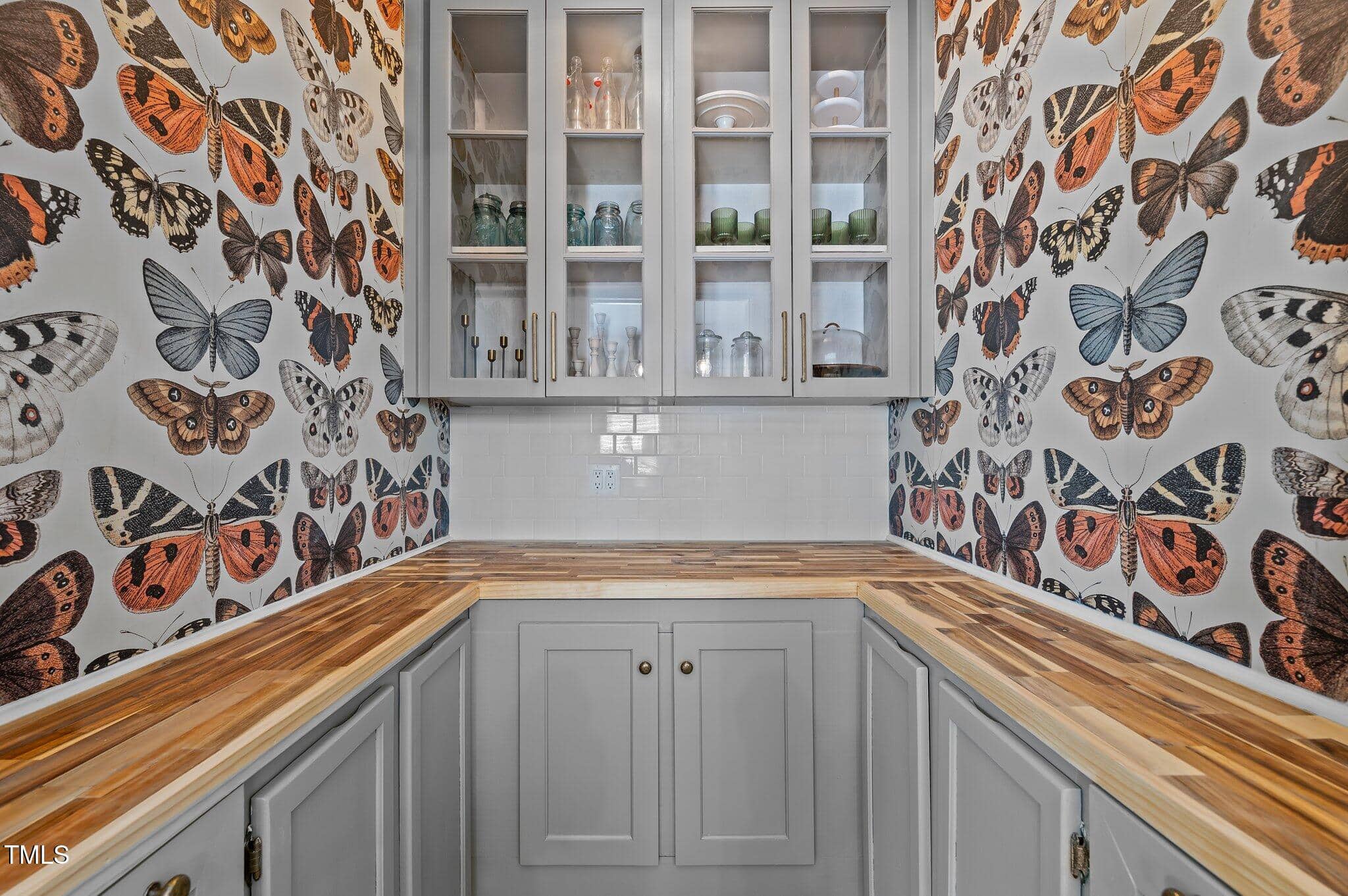 Step inside and be greeted by a spacious vaulted foyer entry, setting the tone for the rest of the home. The main level includes two home offices, each featuring brand-new custom-built cabinets and shelving—ideal for remote work or study. A flexible space, currently used as a dining area, provides additional versatility. The heart of the home is the beautifully remodeled kitchen, which includes granite countertops, an oversized butcher block eat-in island, custom cabinetry, and a smart fridge. Do not miss the awesome custom pantry complete with new custom cabinets, shelving and a coffee bar! The kitchen overlooks the large family room, making it perfect for entertaining and there is a walk-out patio as well where you have views of the backyard from your family room and the windows at the kitchen sink.