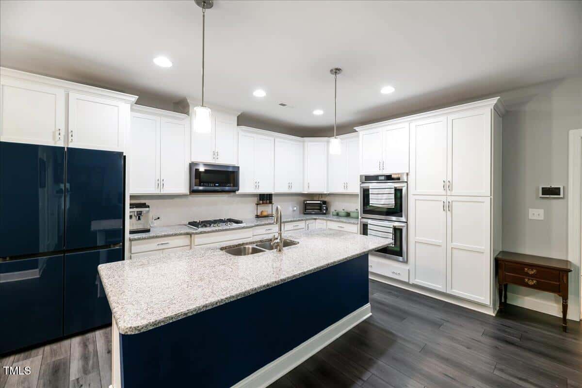 From the moment you arrive, the two-story entryway welcomes you into an open and inviting family room highlighted by a cozy fireplace. The main living area flows seamlessly into the chef’s kitchen, which features double wall ovens, abundant counter space, and a spacious dining area perfect for everyday meals or gatherings with friends and family.