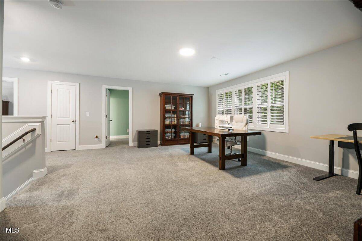 Upstairs, the expansive loft area serves as a flexible space with endless possibilitiesโwhether you envision a cozy reading nook, a home theater, or a fun hangout area for teens. Flanking the loft are two pairs of bedrooms, each connected by Jack-and-Jill baths, offering both privacy and convenience for family members or guests.