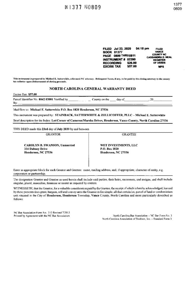 Not in a Subdivision – Henderson Township – Vance County
