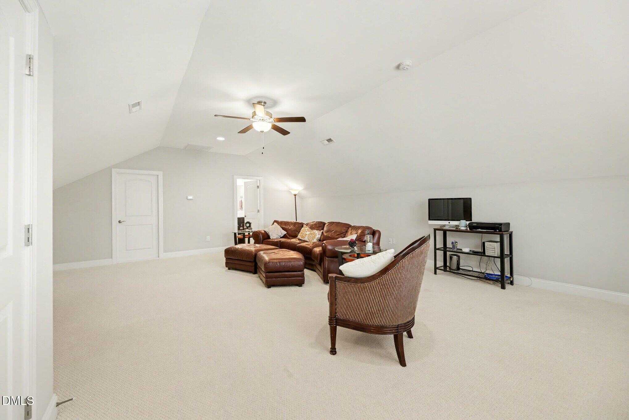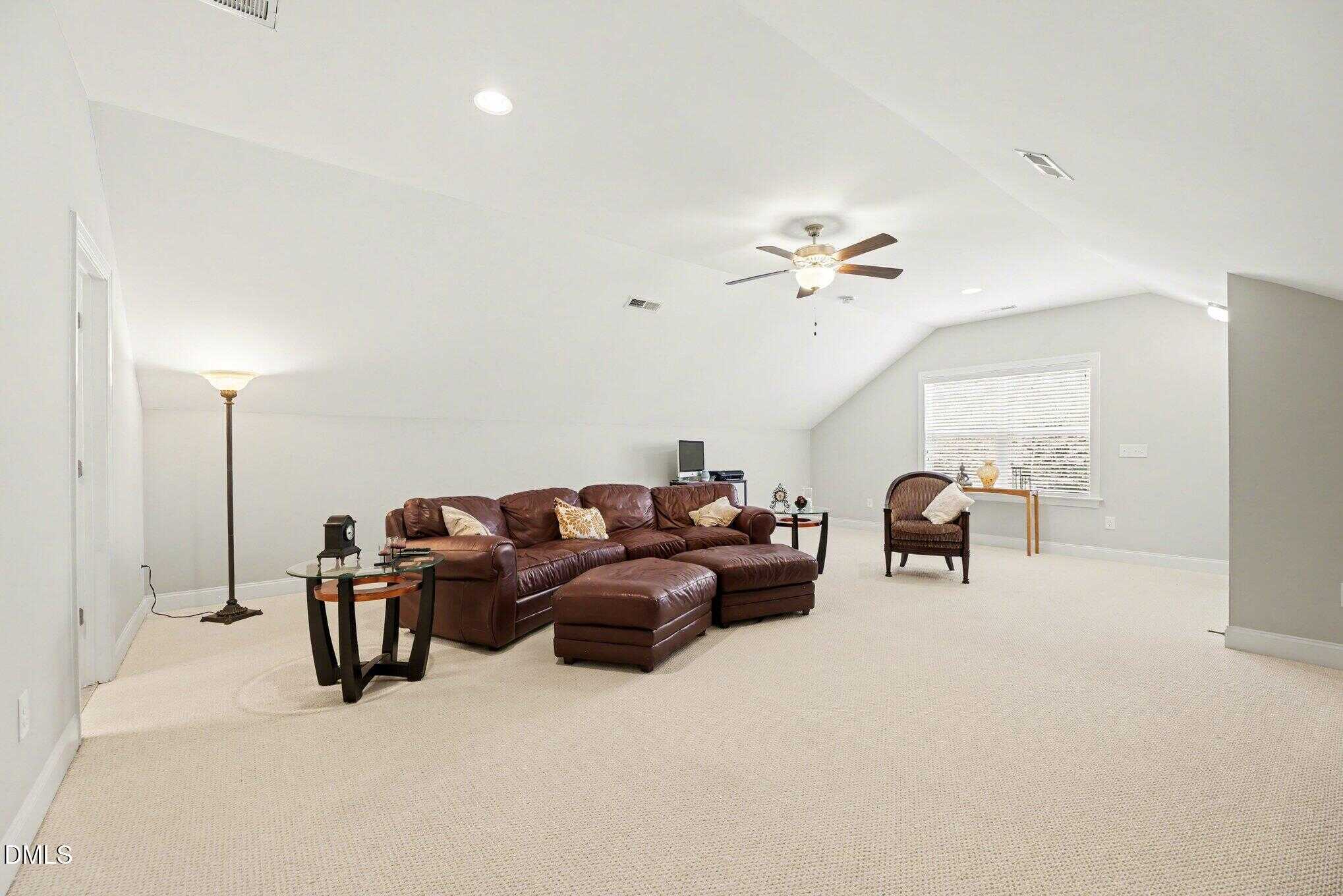 Two more bedrooms on the main level include access to a bathroom featuring a relaxing Garden tub. Perfect for guests or multigenerational living. Distressed engineered hardwood flooring runs throughout the main level living areas, Upstairs, a bonus room with private door access offers flexible living space and could function as a secondary primary suite. You’ll also find a full bathroom, upgraded Berber carpet, and a huge unfinished walk-in attic for storage or future expansion.