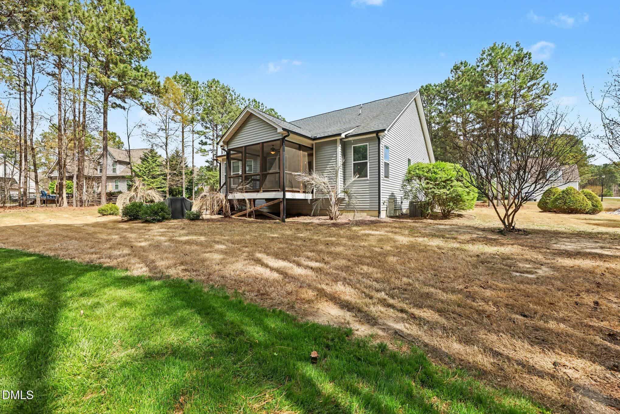Beautifully upgraded home freshly painted featuring a 3-car garage, 1.74 acres, and thoughtful upgrades throughout! The kitchen is designed to impress with 42” raised-panel bisque cabinets, soft-close drawers, granite countertops, decorative tile backsplash, stainless steel appliances, recessed lighting, designer glass pendant lighting, and a raised breakfast bar perfect for gathering. The spacious family room offers a custom gas log fireplace with mantle, crown molding, custom head casting on windows, ceiling fan, and direct access to the screened porch ideal for relaxing or entertaining. The main-level primary suite is a true retreat with tray ceiling, ceiling fan, bay window with blackout blinds, Primary bath featuring a 7-ft dual walk-in tile shower, dual vanity with granite tops, linen closet, private water closet, and large walk-in closet. Two more bedrooms on the main level include access to a bathroom featuring a relaxing Garden tub. Perfect for guests or multigenerational living. Distressed engineered hardwood flooring runs throughout the main level living areas, Upstairs, a bonus room with private door access offers flexible living space and could function as a secondary primary suite. You’ll also find a full bathroom, upgraded Berber carpet, and a huge unfinished walk-in attic for storage or future expansion.