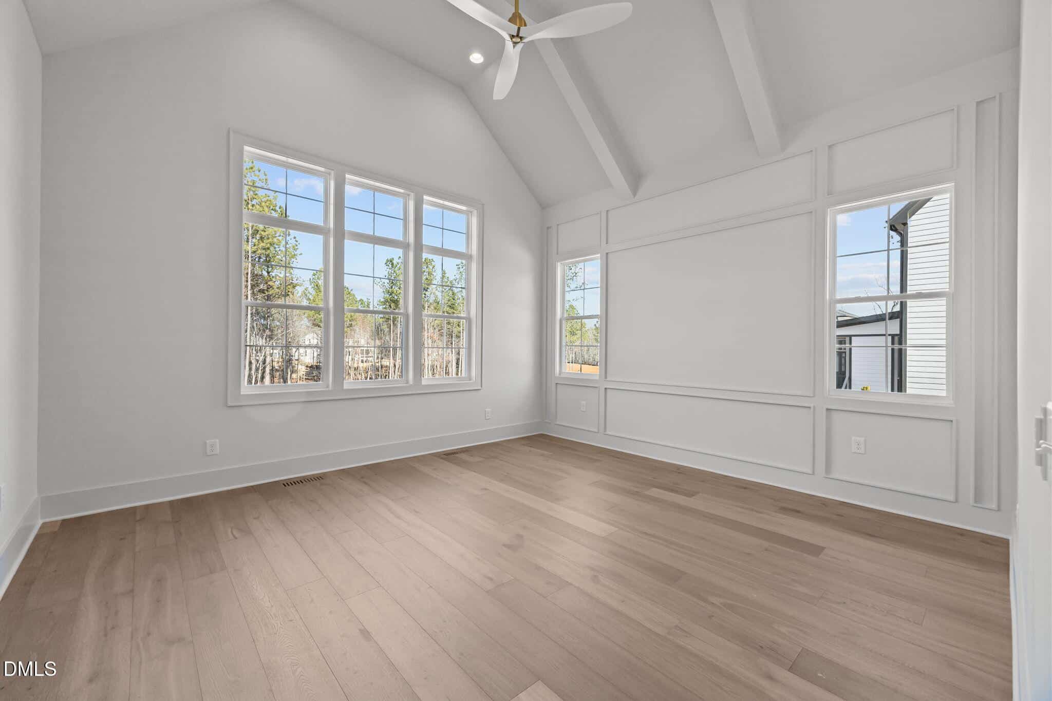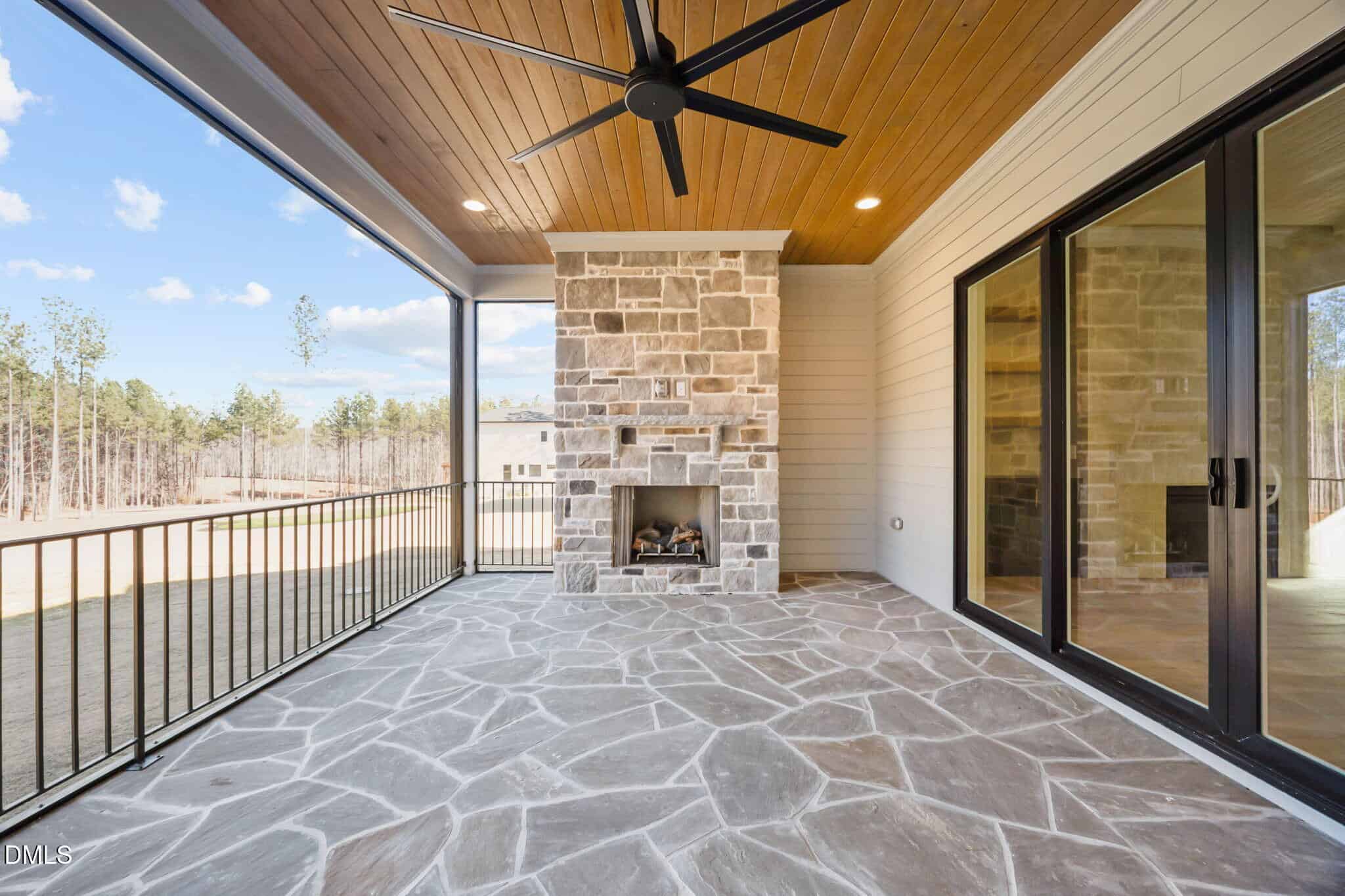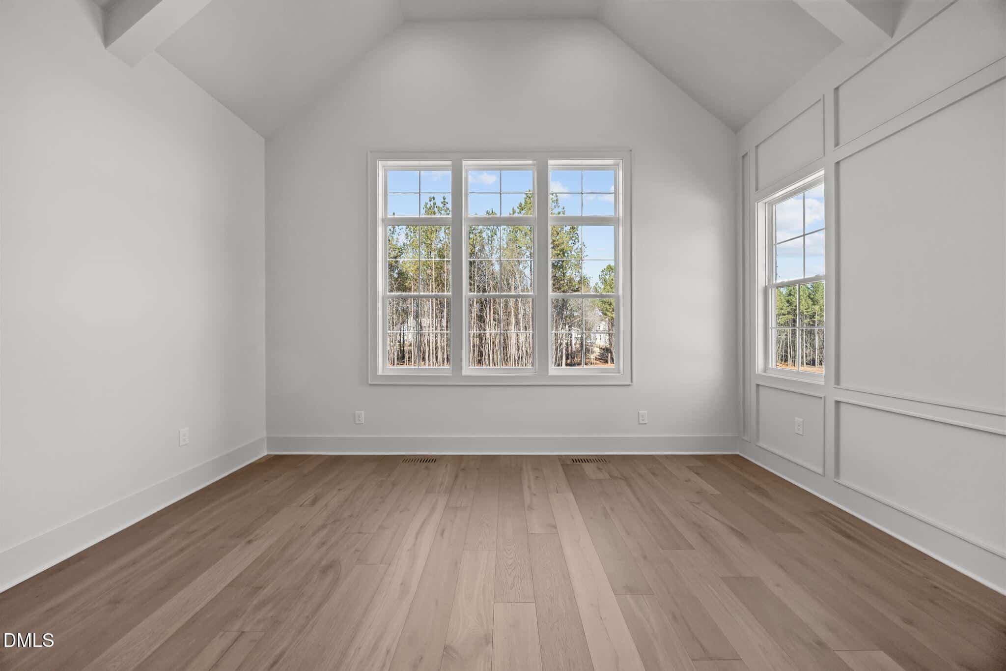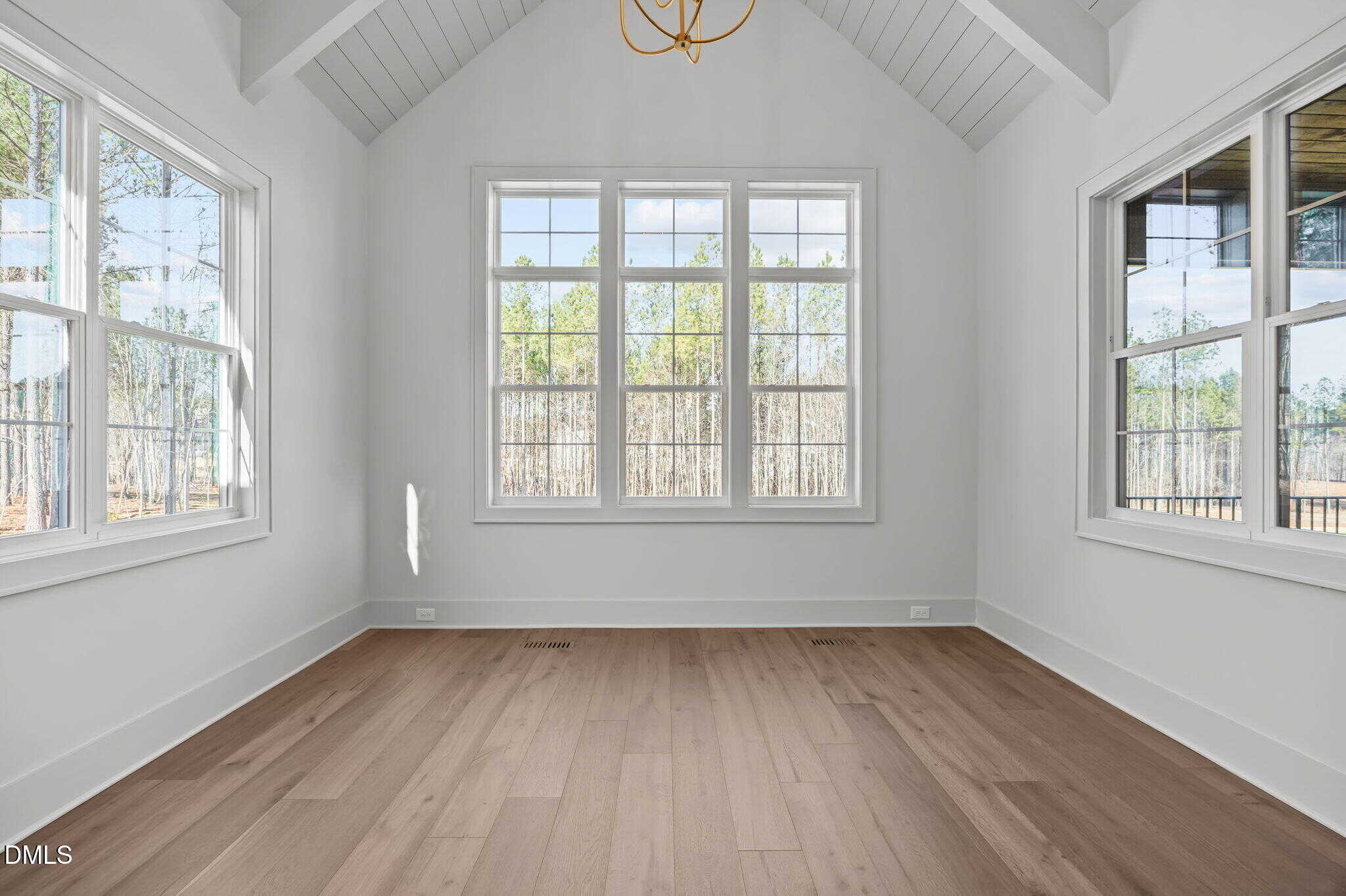 Custom built by Wilks Builders in the exclusive Sorrell Oaks community of Youngsville. Offering 3800 square feet with a soaring two-strory foyer entry and wide plank hardwoods throughout the main living areas. Designer lighting, upgraded trimwork and elegant finishes span throughout! The gourmet kitchen features a quartz island with waterfall edge and designer pendant lights, custom ceiling-height white painted cabinetry, stainless steel appliances includign a gas range and huge walk-in pantry, all opening to the vaulted dining area with exposed beams and shiplap accents. The main level primary suite with vaulted ceiling, hardwood flooring and luxurious en-suite bath with a zero-entry spa style shower wrapped with tile to ceiling, transoms and a freestanding tub, a painted dual vanity with quartz top and designer sconces and walk-in closet with custom built-ins. The family room features painted ceiling beams, gas fireplace with tile to ceiling surround and flanking built-in cabinets topped with floating shelves and a multi-slider to the rear screened porch with flagstone flooring and stone surround fireplace overlooking a huge, flat backyard! Upstairs offers a recreational room with buit-in wet bar, dedicated study, walk-in storage area and two spacious en-suite bedrooms!