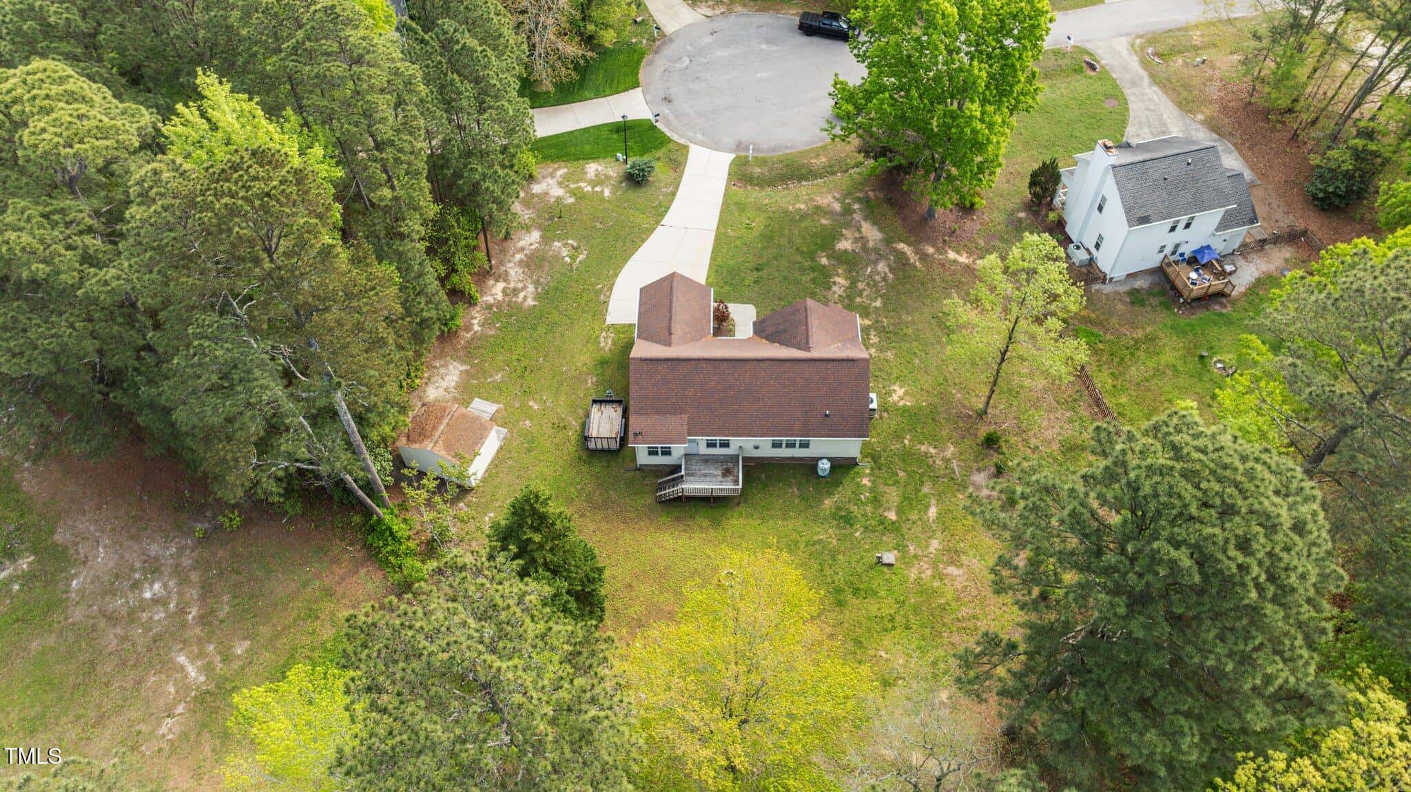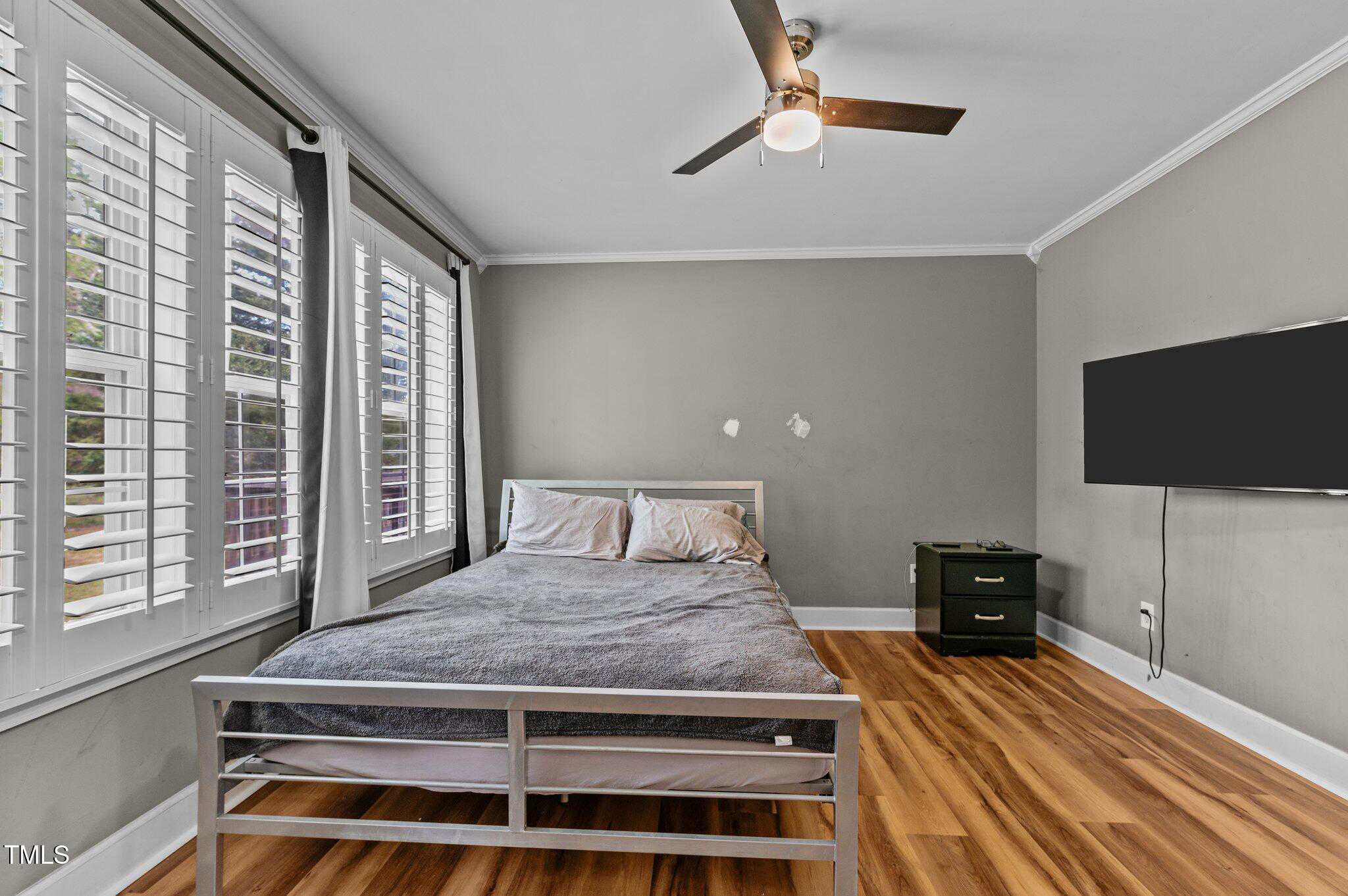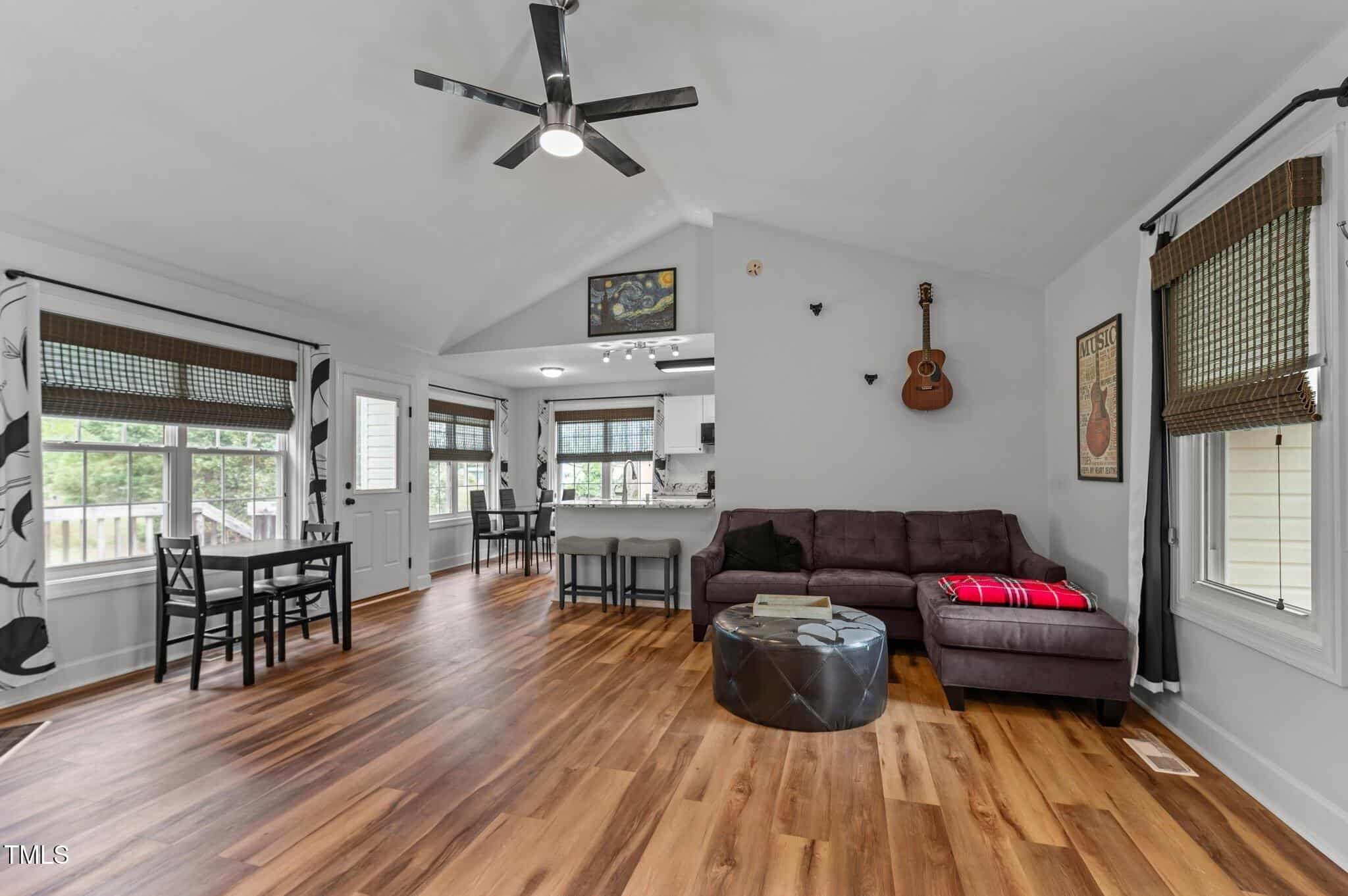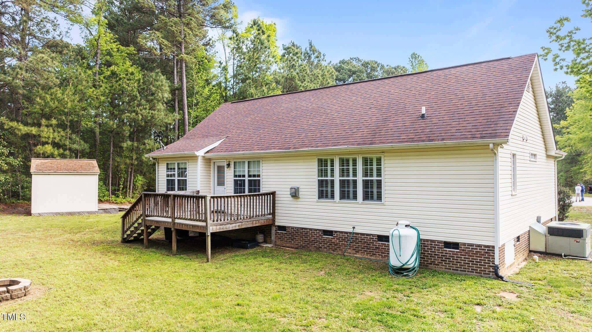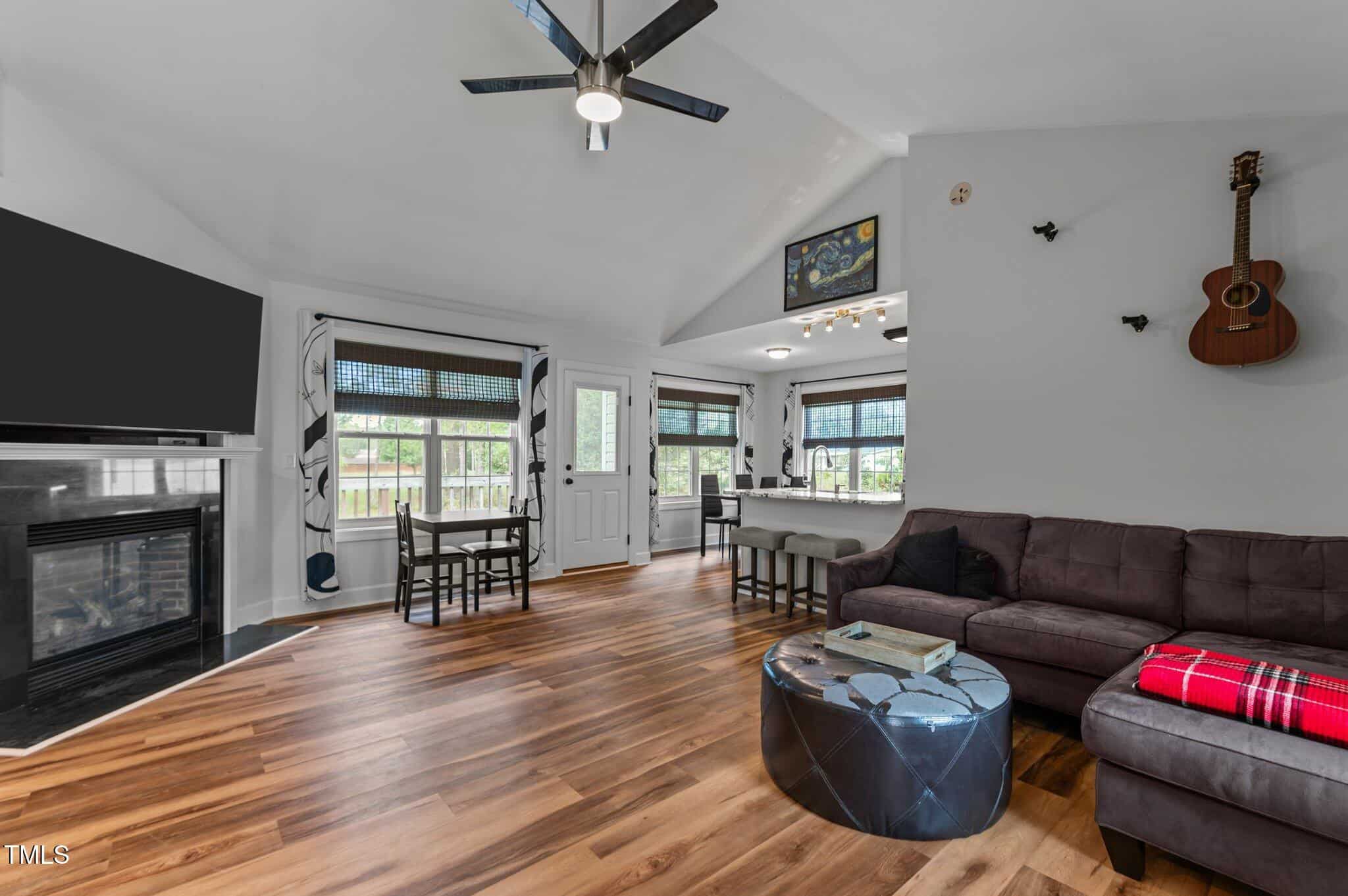 Tucked away in a quiet cul-de-sac, this 3-bedroom, 2-bath ranch-style home offers comfortable living on a .59-acre lot with thoughtful updates throughout. Vaulted ceilings and natural light create an open feel, complemented by brand-new LVP flooring and upgraded LED lighting. The hall bathroom has been fully renovated, and both bathrooms feature solid wood vanities. Additional updates include custom closets, new outlets, whisper-quiet exhaust fans, and a thermostatically controlled gas fireplace. Plantation shutters in the bedrooms and primary bath add charm, while woven wood window treatments with privacy screens in the living room and kitchen enhance both style and function. The kitchen features granite countertops and counter-depth appliances. Outside, enjoy a spacious deck, landscaped yard, and a 16×12 storage shed. Major systems are in great shape with a Trane HVAC (approx. 5 years old) and a roof replaced around 2017. Located in a community with no city taxes and convenient access to Wake Forest, Rolesville, and Raleigh—plus neighborhood amenities including a pool, ball fields, and more.