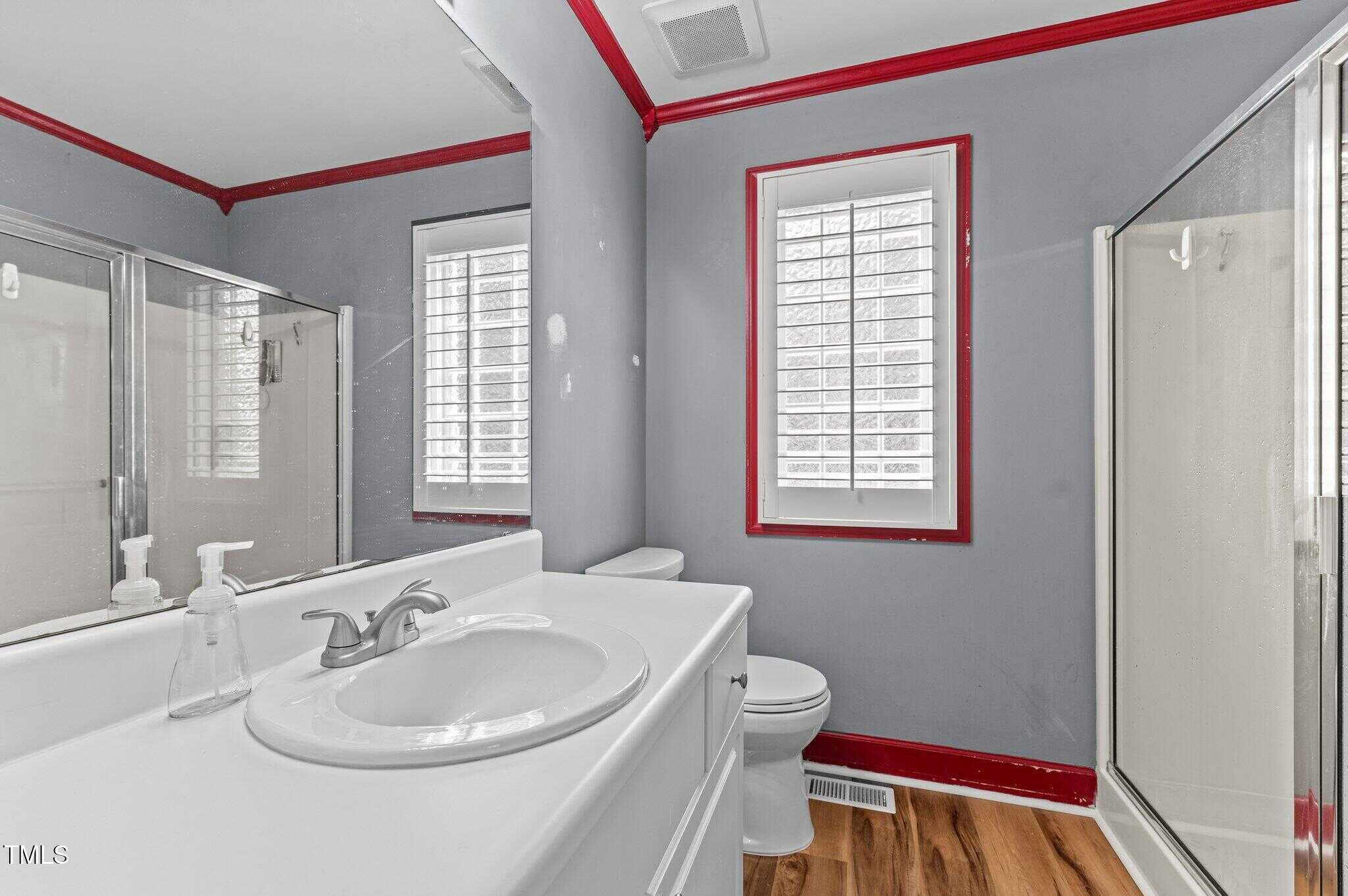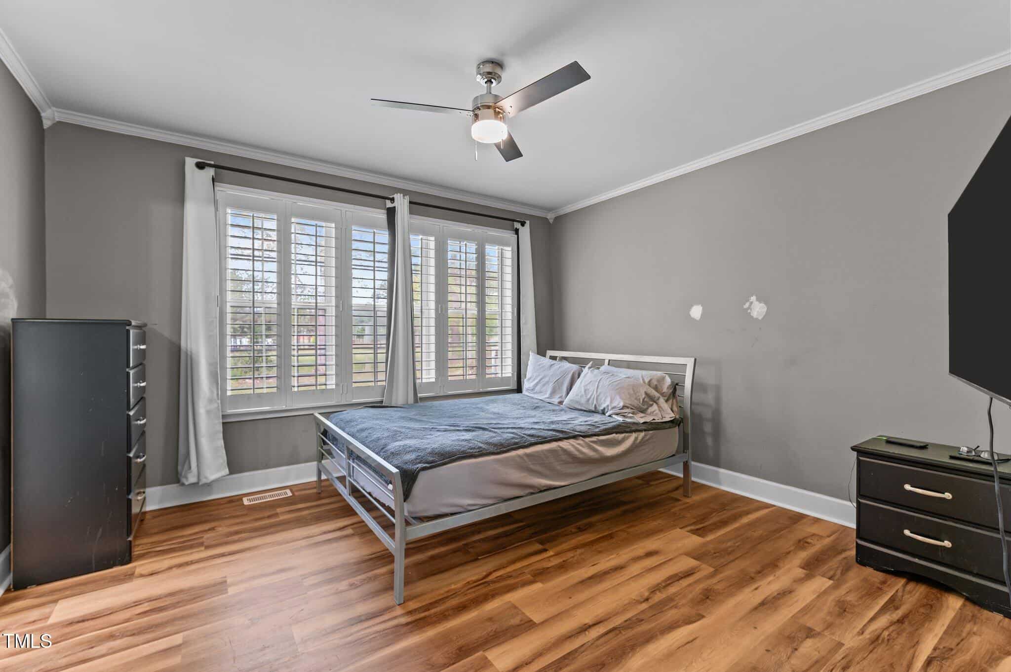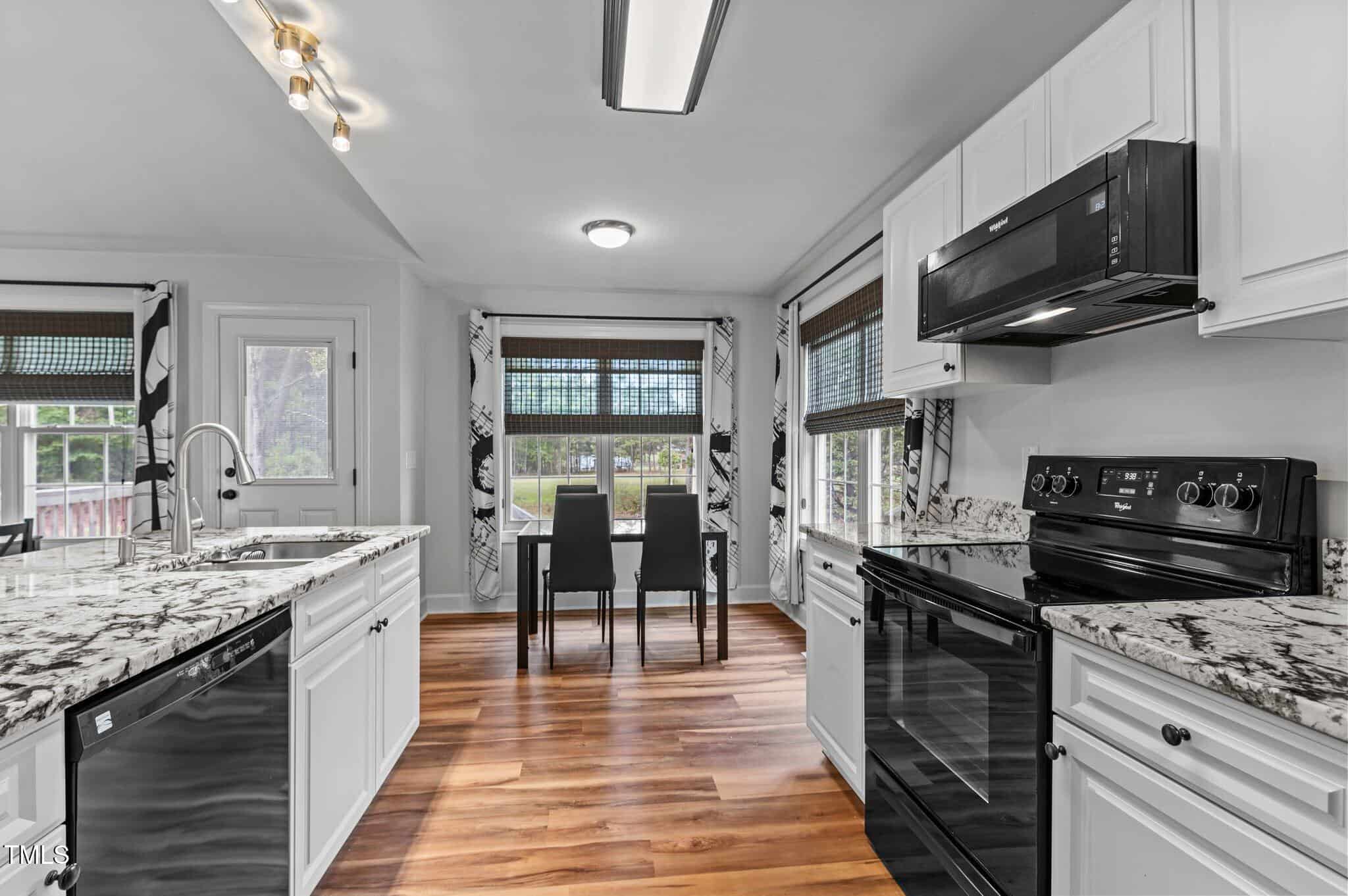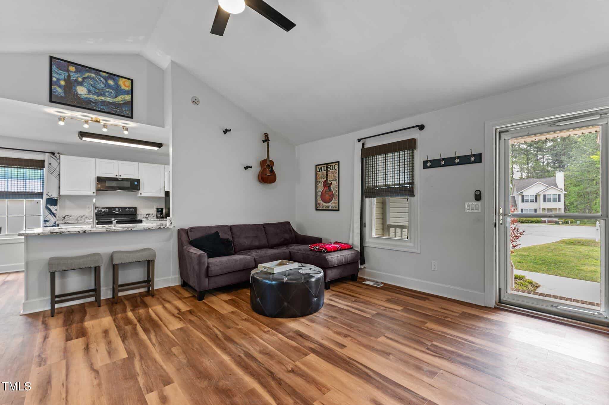 Tucked away in a quiet cul-de-sac, this 3-bedroom, 2-bath ranch-style home offers comfortable living on a .59-acre lot with thoughtful updates throughout. Vaulted ceilings and natural light create an open feel, complemented by brand-new LVP flooring and upgraded LED lighting. The hall bathroom has been fully renovated, and both bathrooms feature solid wood vanities. Additional updates include custom closets, new outlets, whisper-quiet exhaust fans, and a thermostatically controlled gas fireplace. Plantation shutters in the bedrooms and primary bath add charm, while woven wood window treatments with privacy screens in the living room and kitchen enhance both style and function. The kitchen features granite countertops and counter-depth appliances. Outside, enjoy a spacious deck, landscaped yard, and a 16×12 storage shed. Major systems are in great shape with a Trane HVAC (approx. 5 years old) and a roof replaced around 2017. Located in a community with no city taxes and convenient access to Wake Forest, Rolesville, and Raleigh—plus neighborhood amenities including a pool, ball fields, and more.