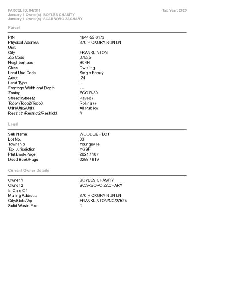 Woodlief – Youngsville Township – Franklin County