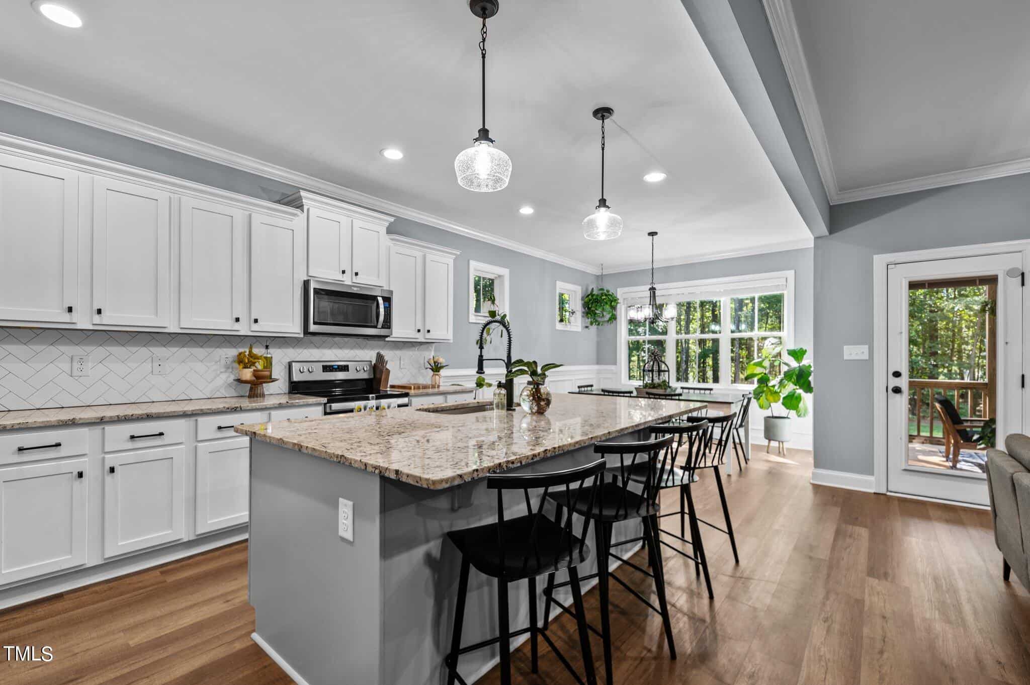 Picturesque home on private 1.37 Acres in one of Franklinton’s favorite neighborhoods, Starmount Forest! Perfect floorplan with Primary plus 2nd Bedroom/Full Bath on main level. You’ll love the Open Kitchen and Living areas with cozy Fireplace, large Island, Granite Counters, and a Pantry that will make your friends jealous! Check out the tasteful Herringbone Style Tile shower in primary Bathroom, as well as large Closet with Built-ins! Large Mudroom and seperate Laundry on main. Upstairs you’ll find 3 additional rooms perfect to use as bedrooms, home office, gym or playroom!