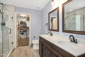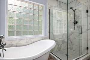 All bedrooms are located on the second floor including the master bedroom with laminate hardwood floors, large walk-in closet, dual marble vanities and garden tub.
